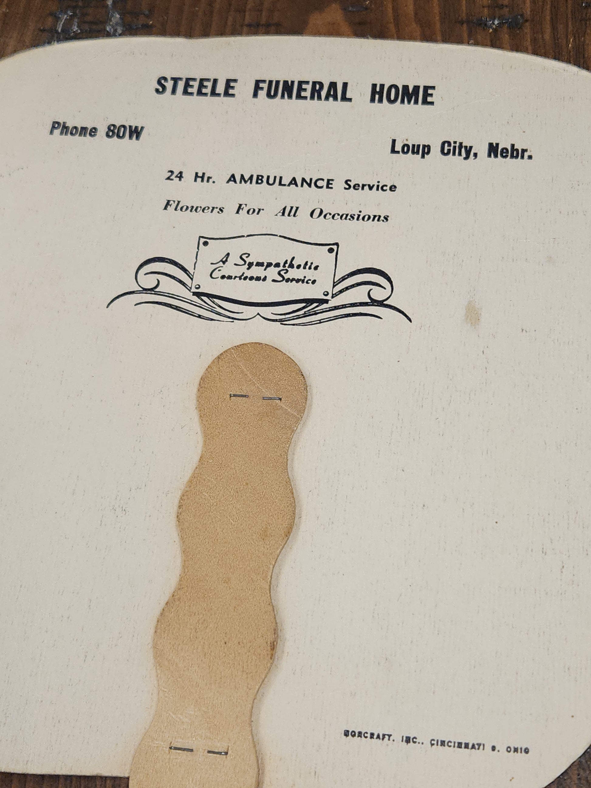 Vintage Advertising Fans Set of 3 Steele Funeral Home Nebraska Norcraft Inc. Cincinnati Ohio fan5
