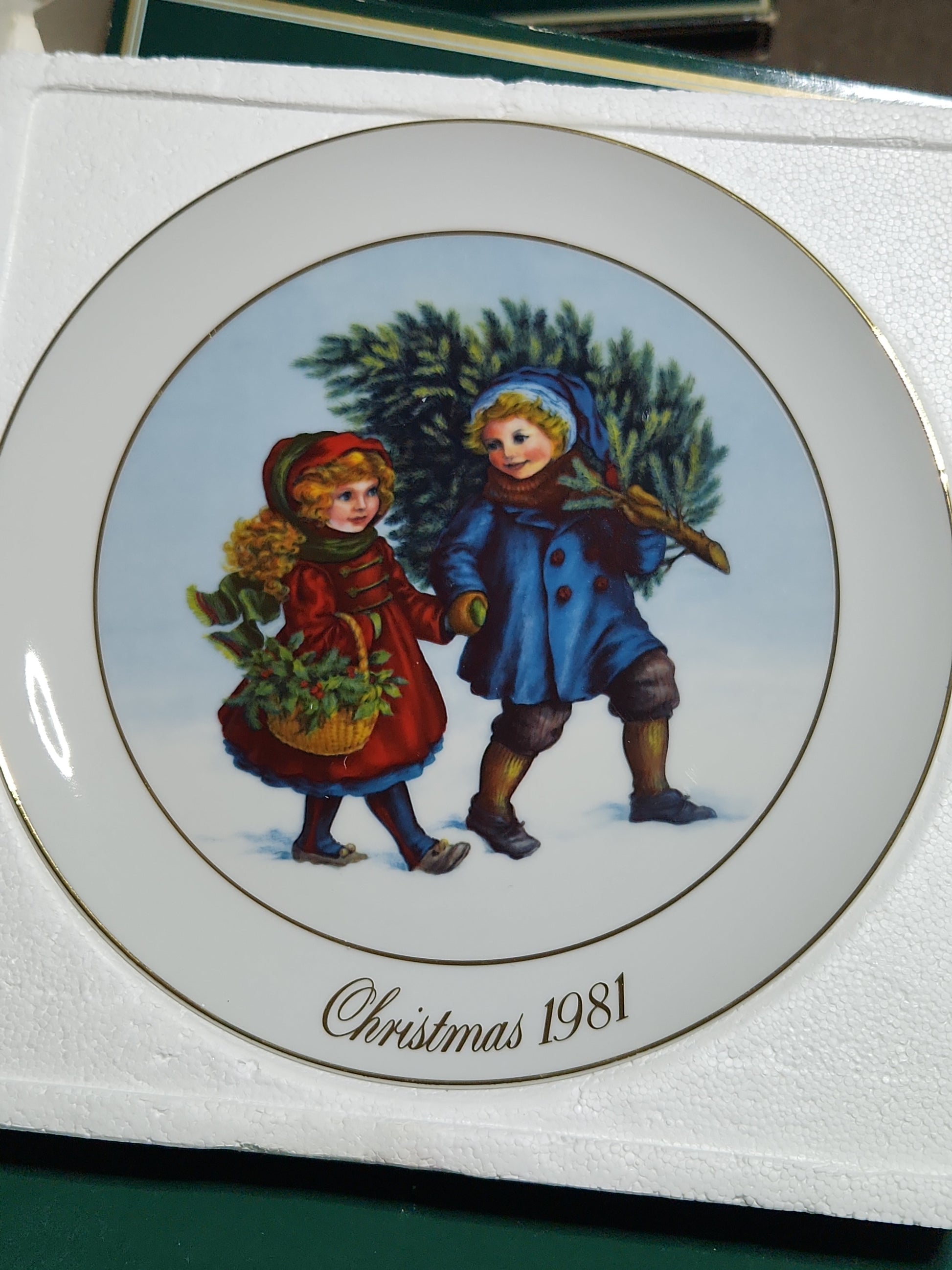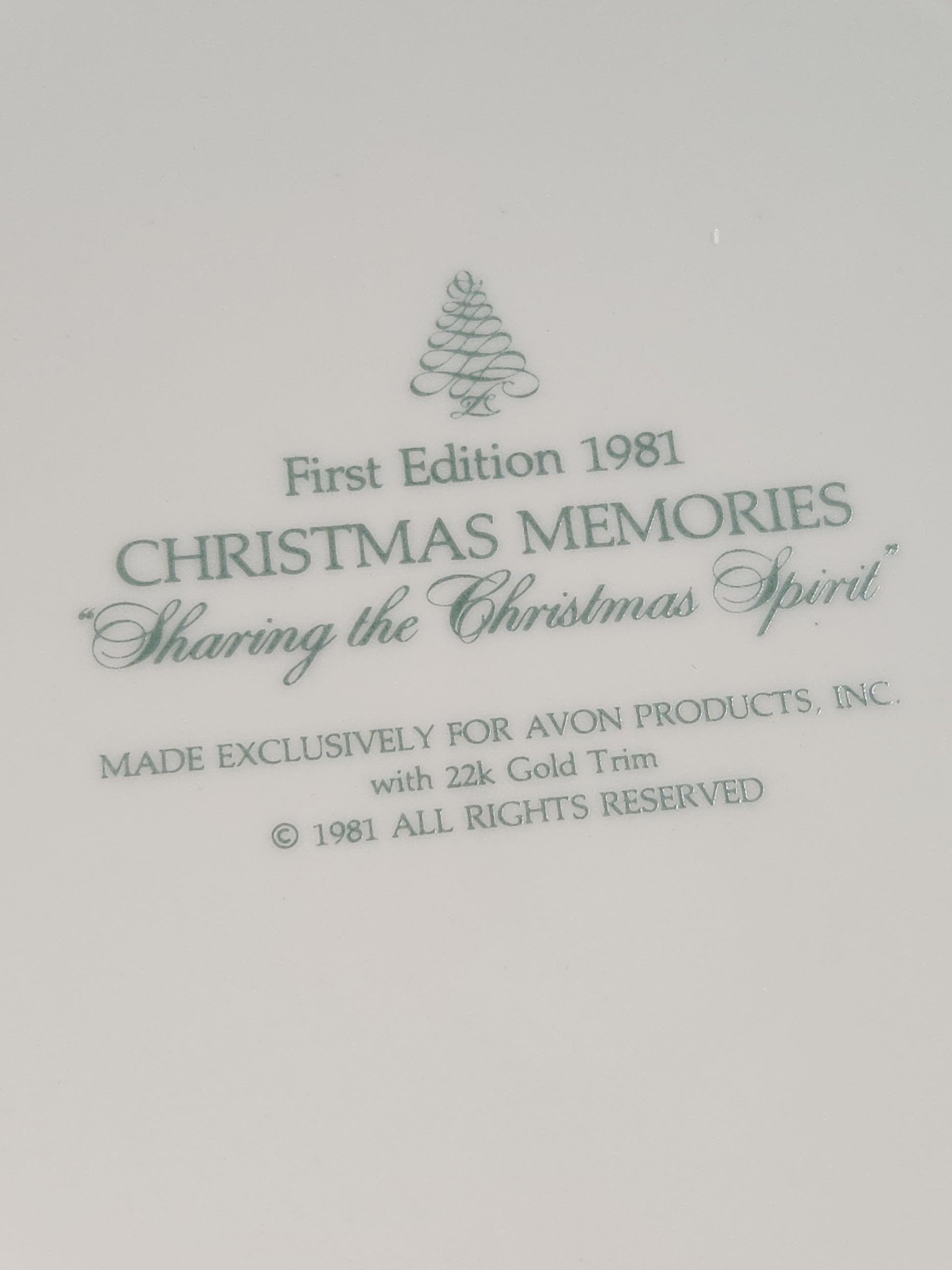 Vintage Avon Christmas 1981 First Edition Christmas Memories Plate 22k gold trim Original Box.