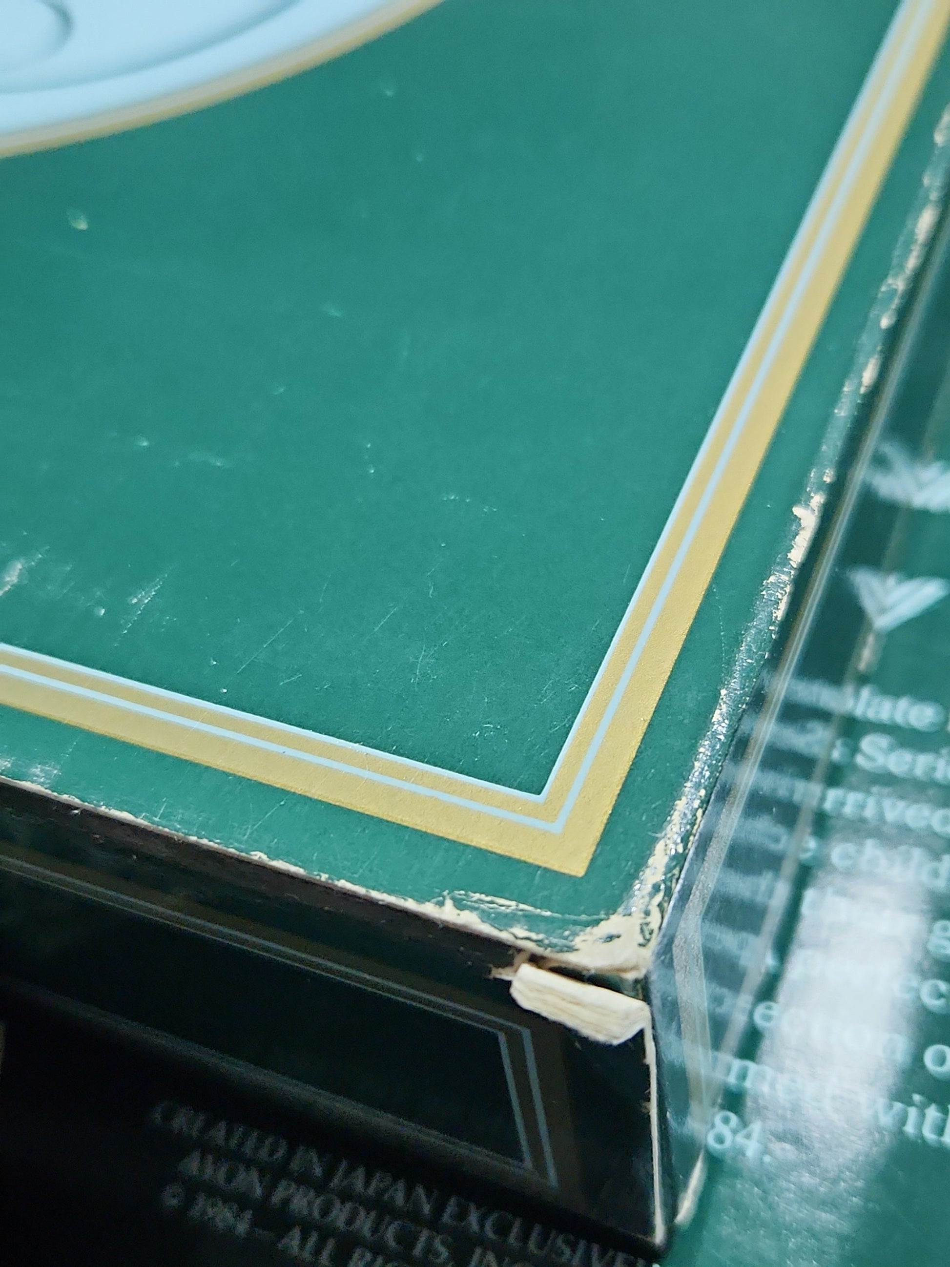 Avon plate in good condition with original box and styrofoam holding the plate. The box has much shelf wear on sides, corners and front. Please see photos as they are part of the description and show you what you will recieve. We have multiple plates and items and if you buy more than one item, we do refund shipping, if Etsy does not decrease the shipping when you order. We also offer a discount if you purchase 6 items.