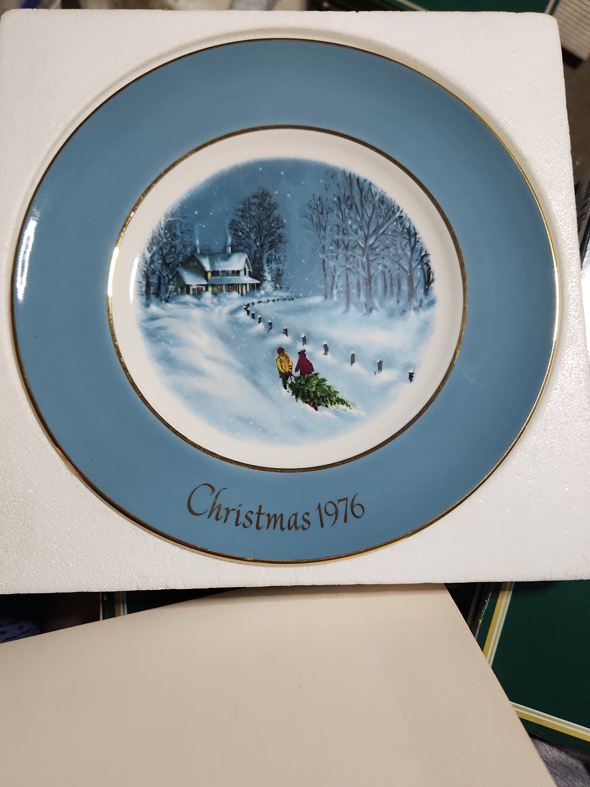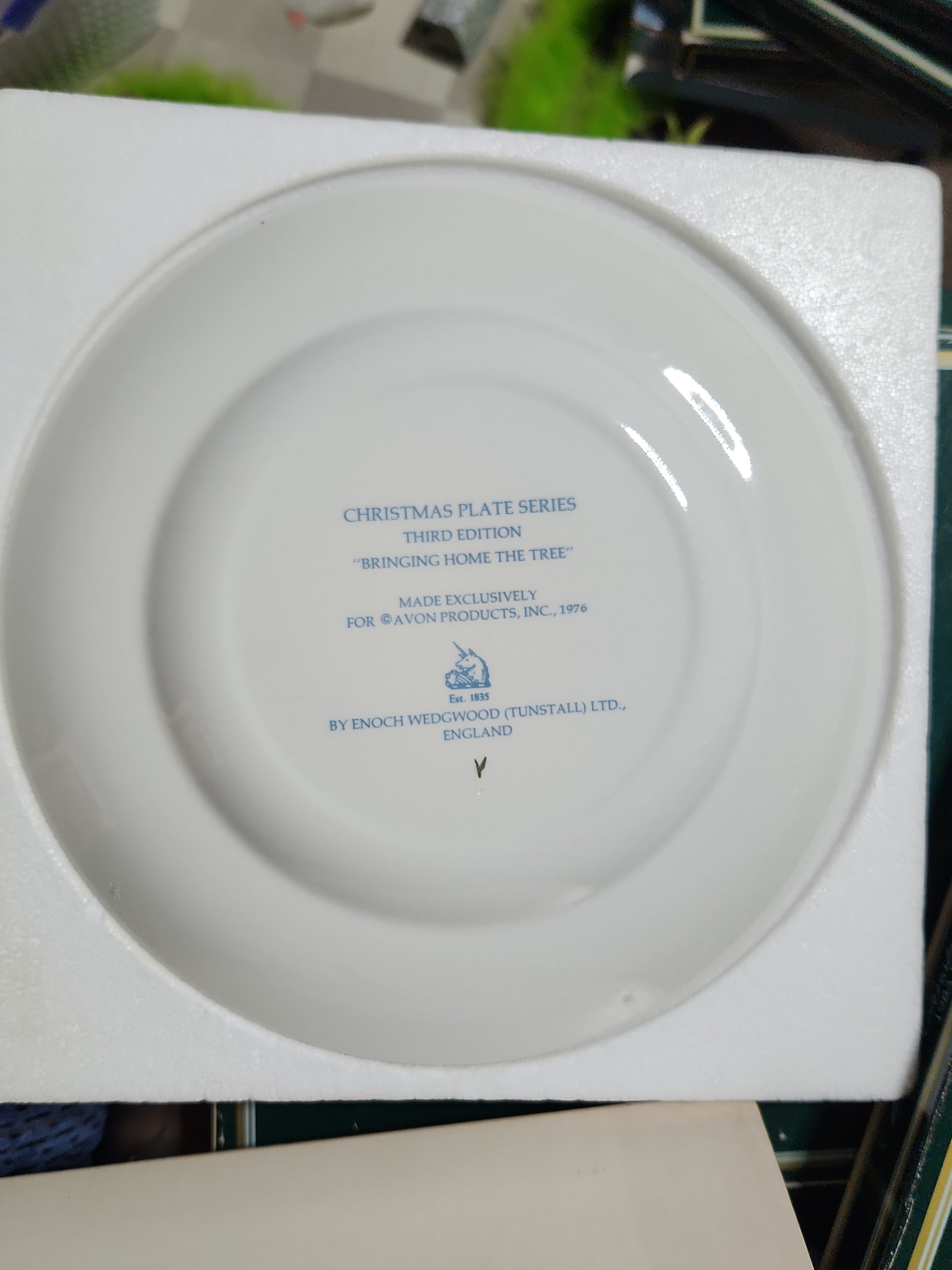 Vintage Avon Christmas 1976 Bringing Home the Tree Plate Original Box. Enoch Wedgewood England