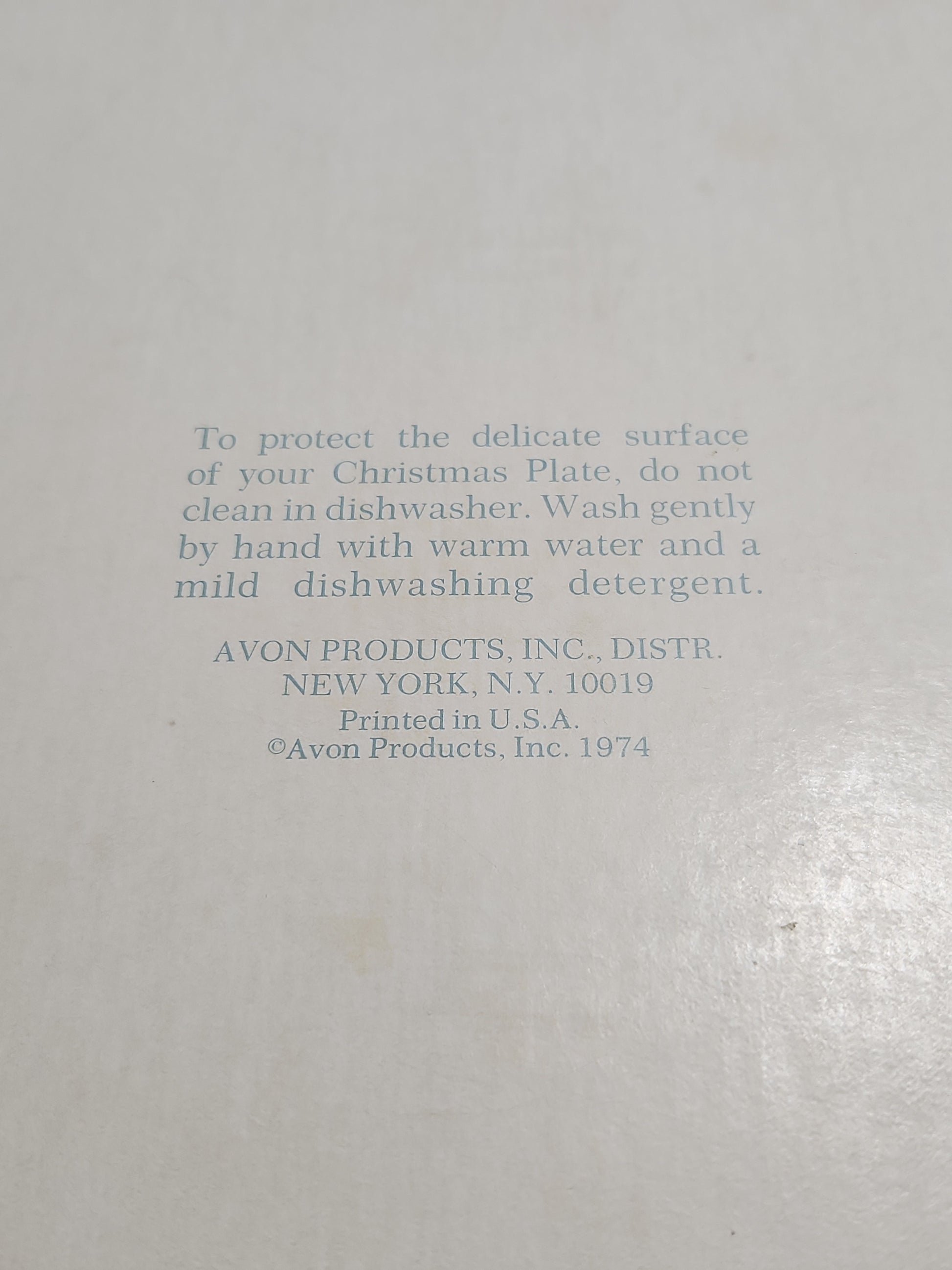 Avon plate in good condition with original box and styrofoam holding the plate. The outer box has shelf wear and yellowing on sides, corners and front. The inside box is in good condition. There is a discolored spot that was likely a sticker there for years. The Please see photos as they are part of the description and show you what you will recieve. We have multiple plates and items and if you buy more than one item, we do refund shipping, if Etsy does not decrease the shipping when you order. We also offer a discount if you purchase 6 items.
