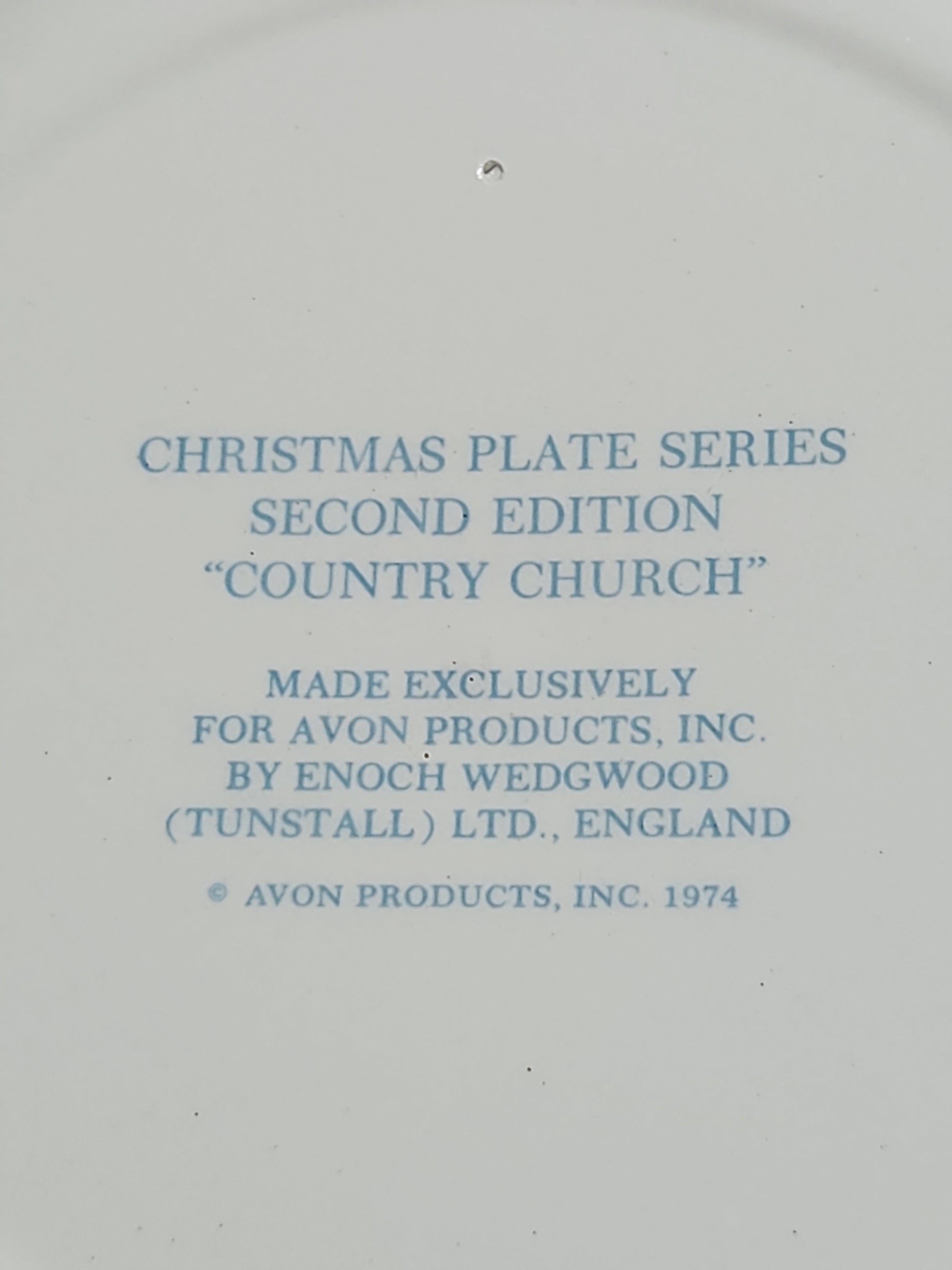 Vintage Avon Christmas 1974 Country Church Plate Original Box. Enoch Wedgewood England