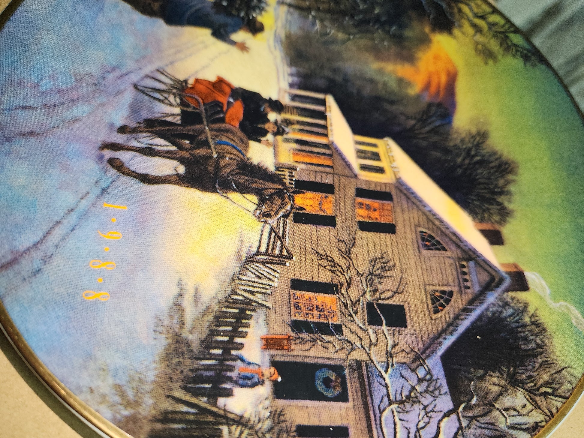 Vintage Avon Christmas 1988 Home For The Holidays Plate 22k gold trim NO BOX.