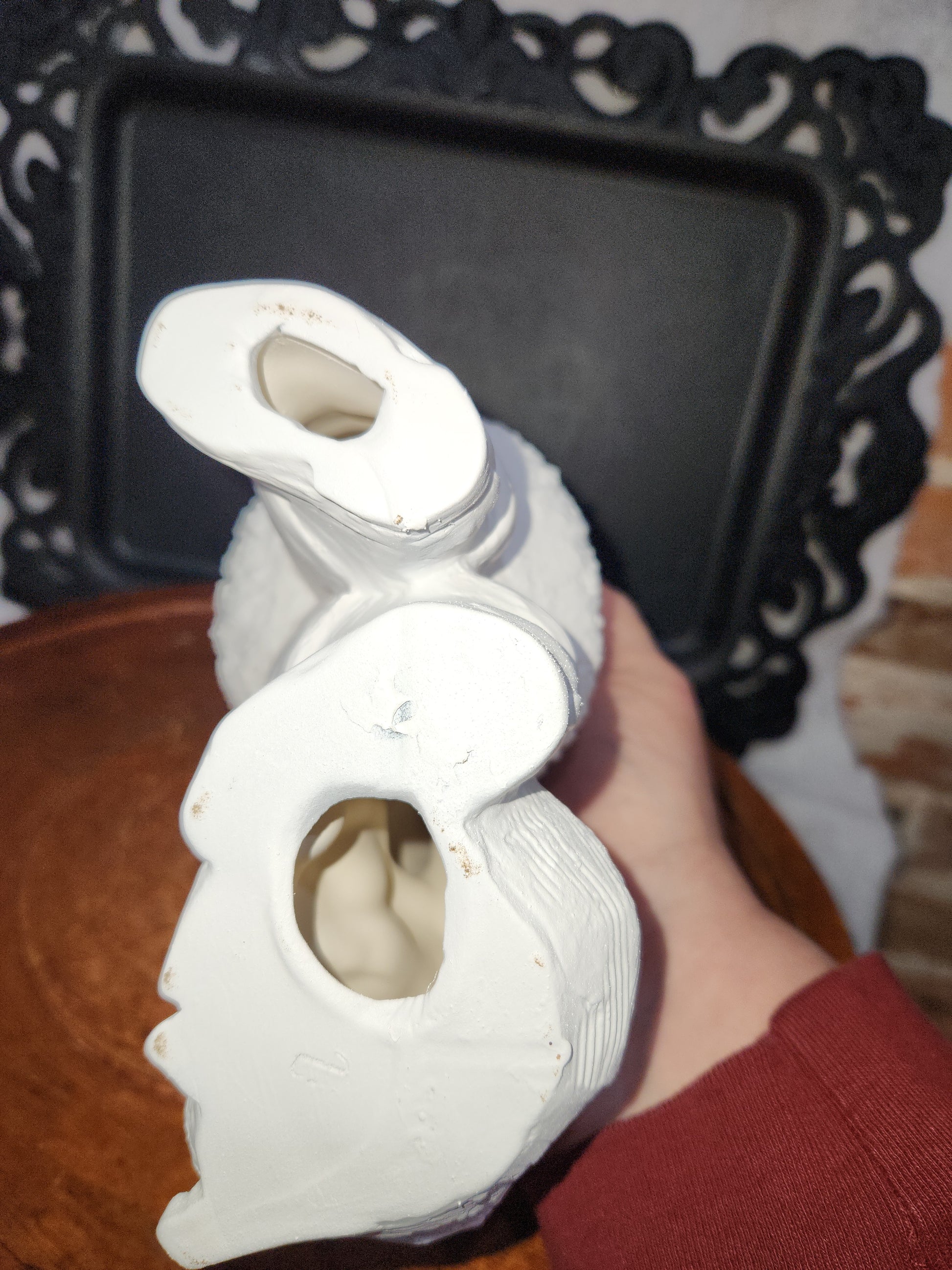 This santa was purchased from a couple that ran a ceramic shop mamy years ago, so it was likely prepared for painting and firing, but it has been painted with paint not to be used for firing, it was painted poorly and obviously not fired. I cleaned it up and painted with Rustoleum bonding primer so it is ready for your paint, it still has a pink tint, but the surface feels a bit rough like it was sanded, paint should cover it just fine. 8 1/2" tallPlease look at photos very closely so you can see exactly what you will be getting. The photos are part of my description.