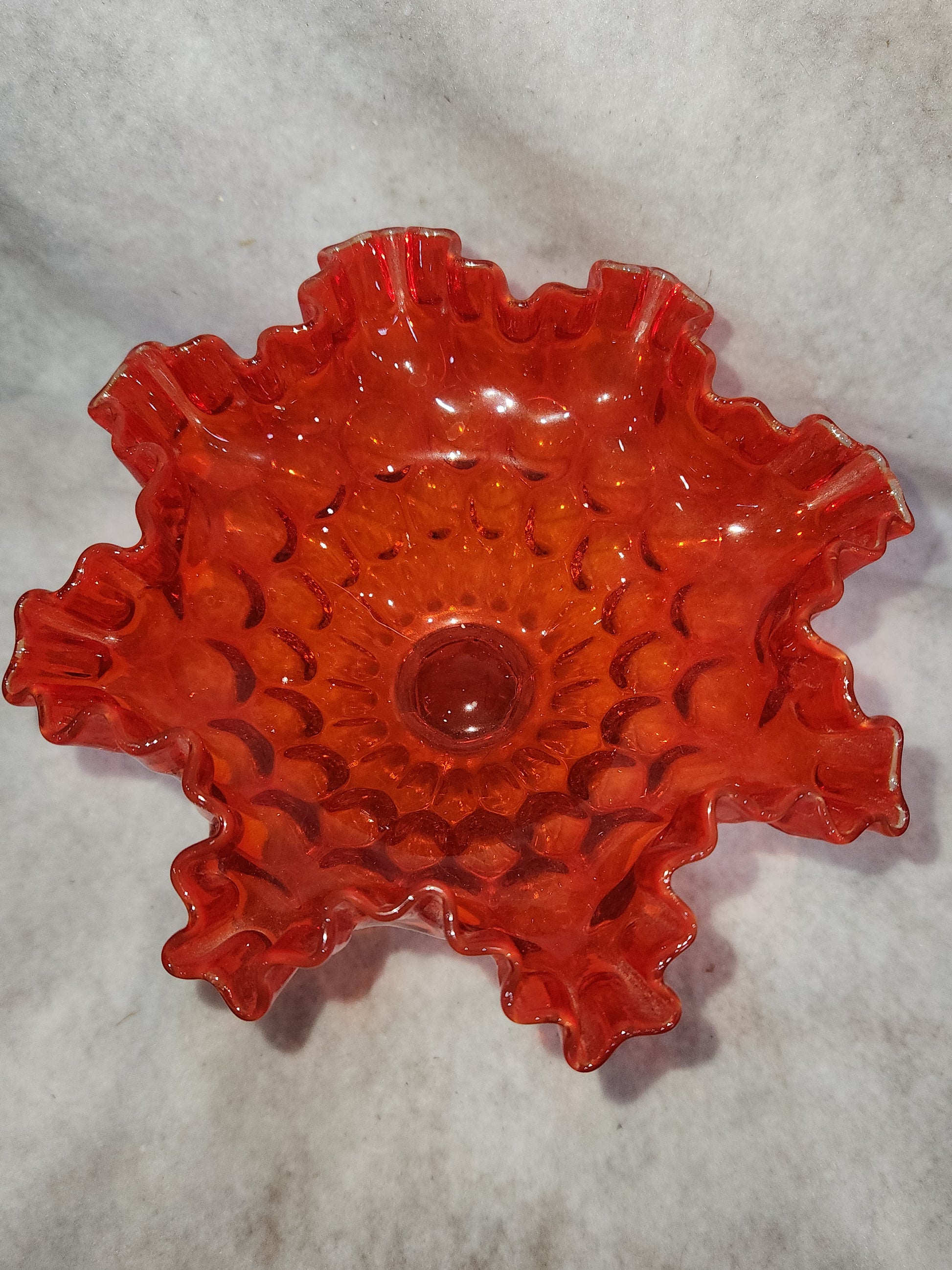 Vintage Fenton Amberina Ruffled Top Large Compote Red Orange to Yellow gla88