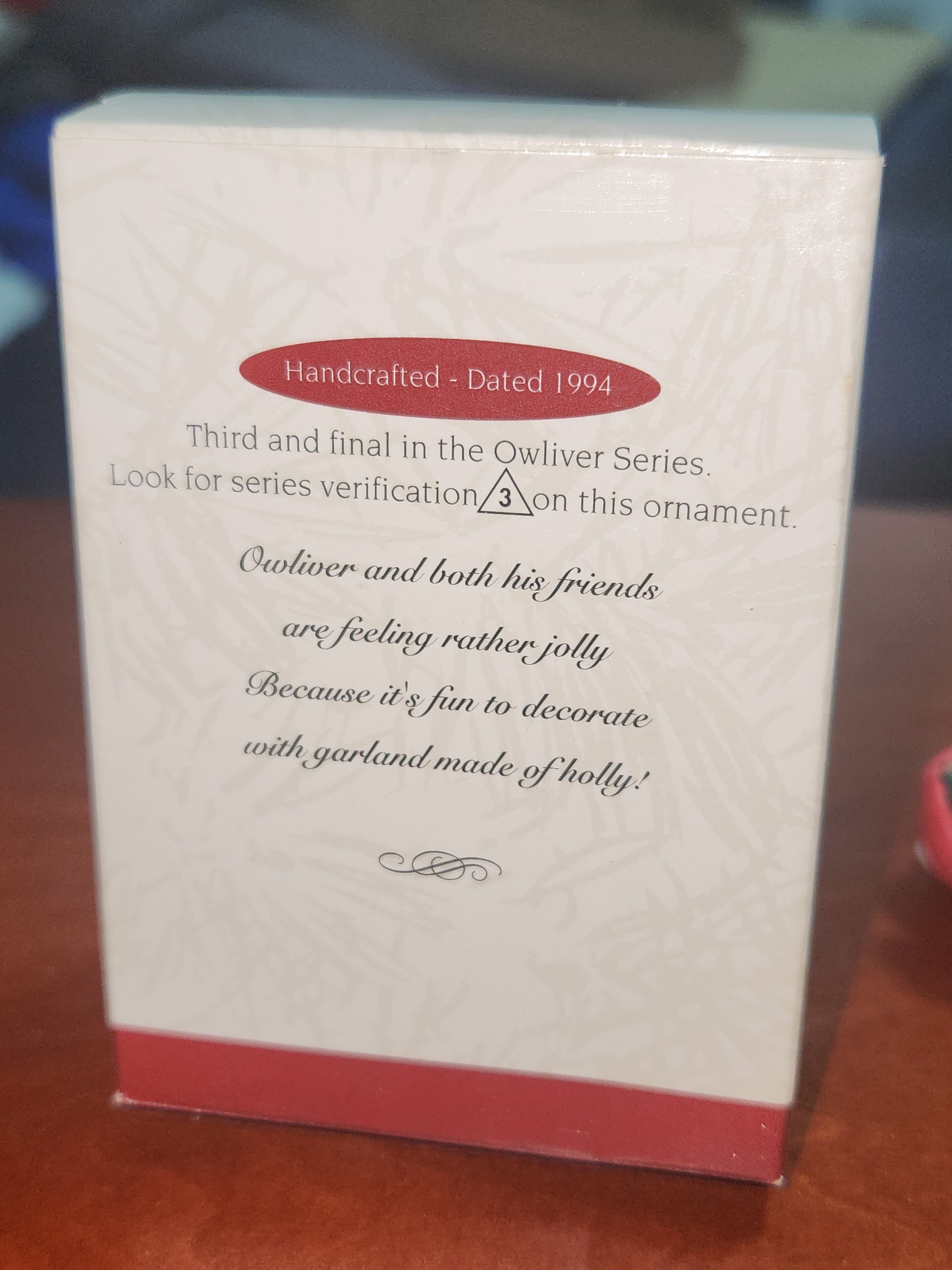 Vintage Hallmark Keepsake Ornament Owliver Owl 3rd in Series 1994 miniature