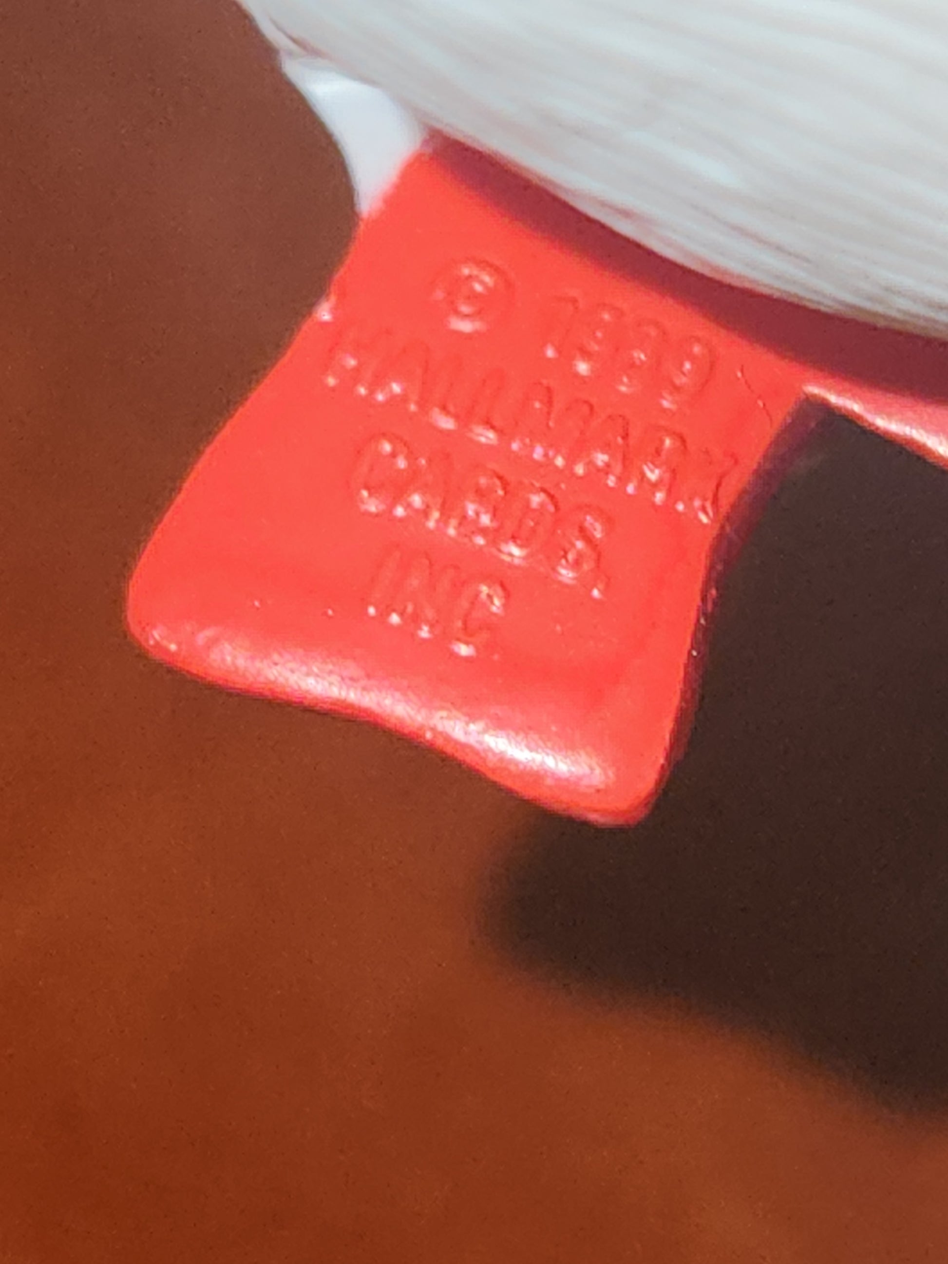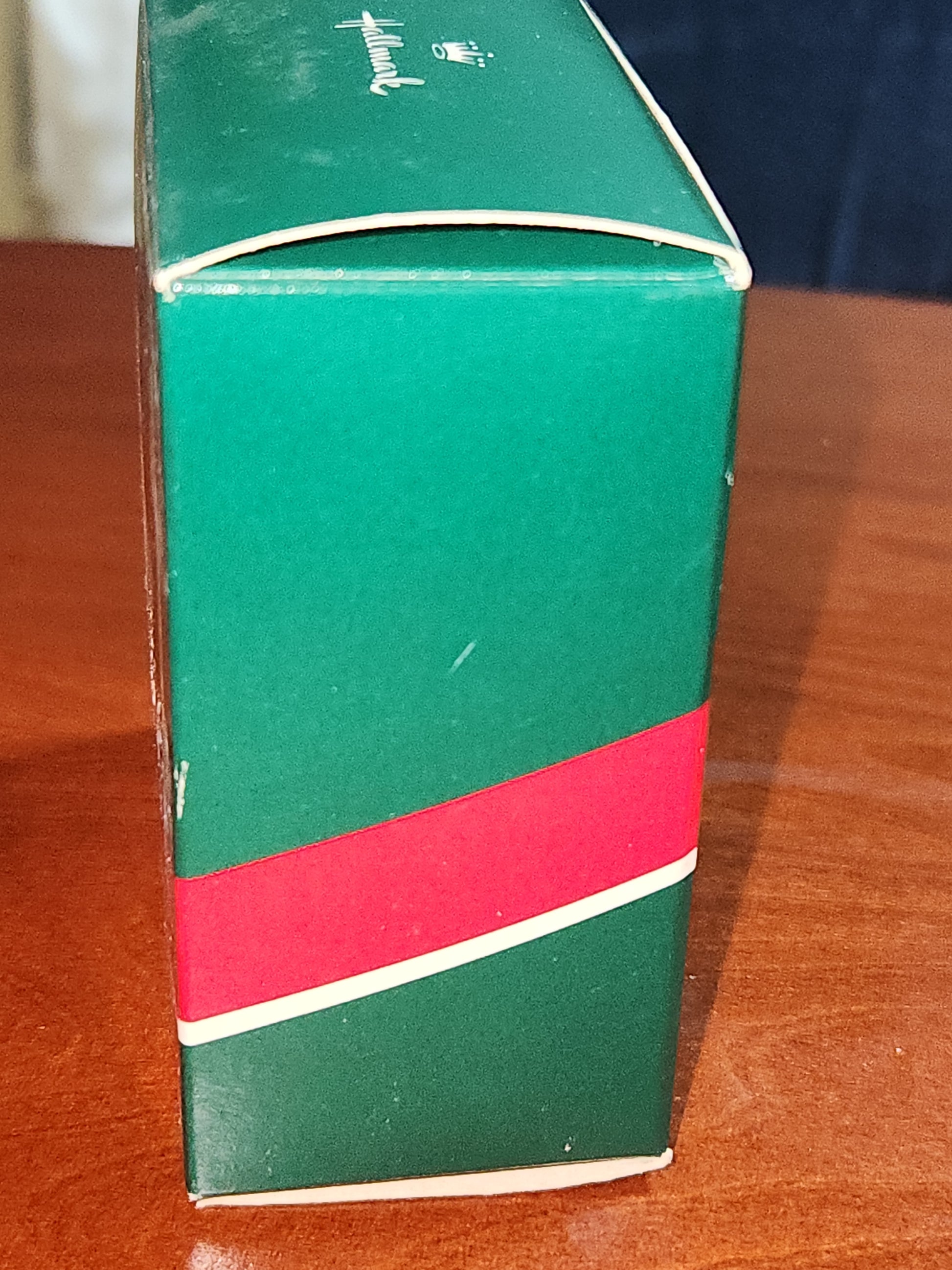 Ornament in original box, Ornament in good condition. He is small about 1 1/2". There is a slight smell of old basement in the box, I will store in a box with baking soda to help pull the smell. Please look at all photos carefully as they are part of the description and show you what you will receive.