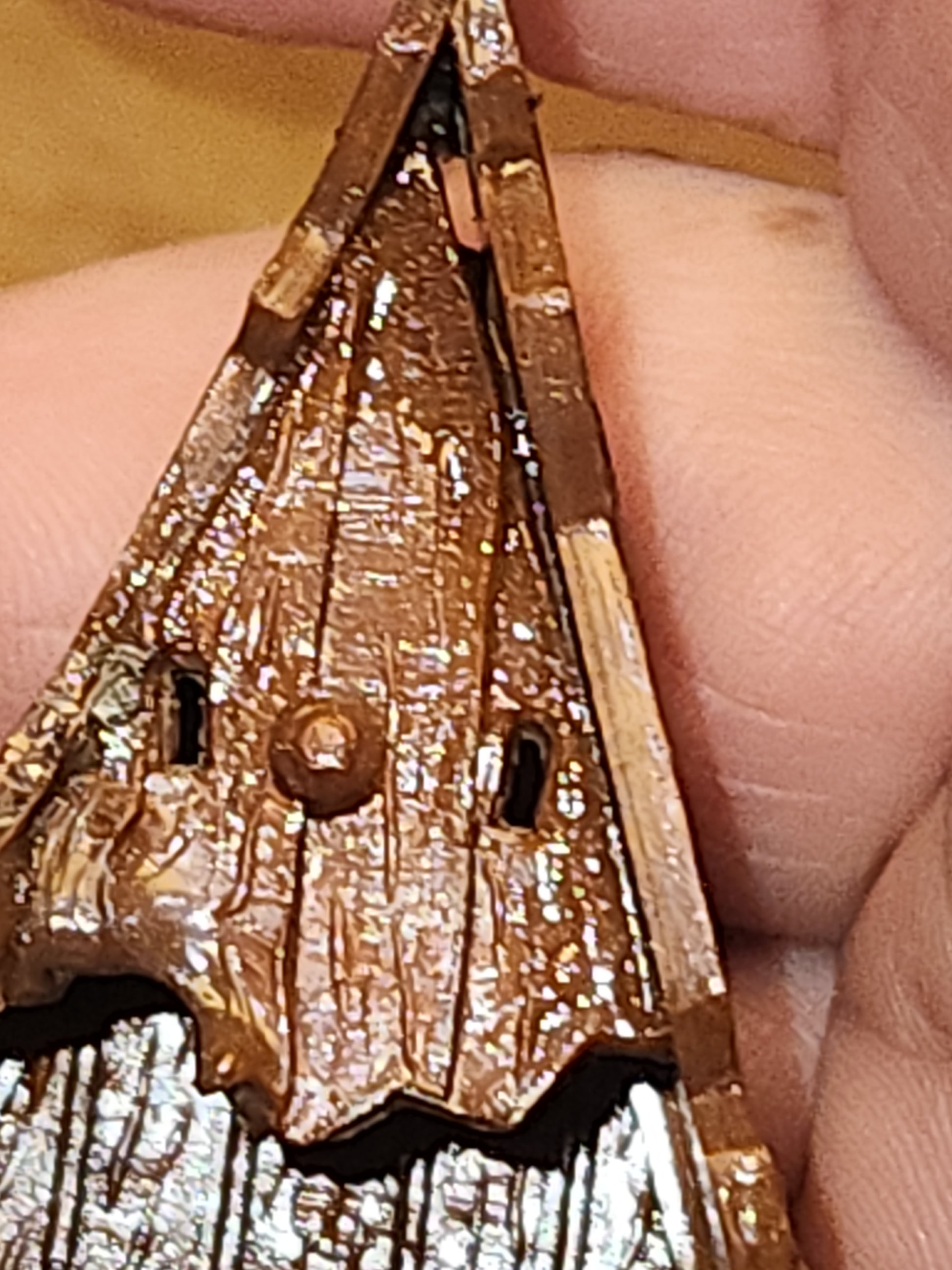 Vintage Plastic Celluloid Triangle Nativity Made in Hong Kong Mica n19