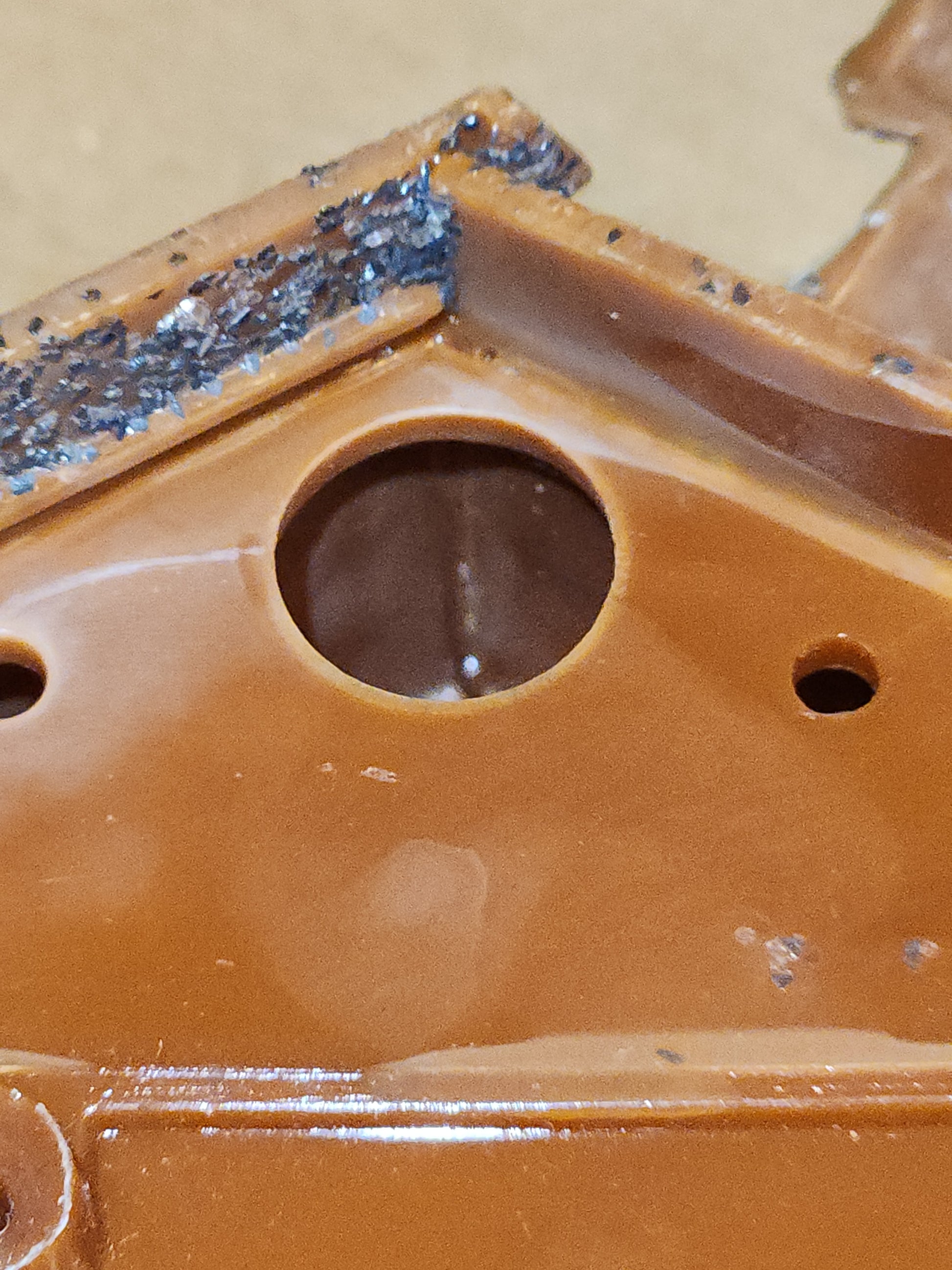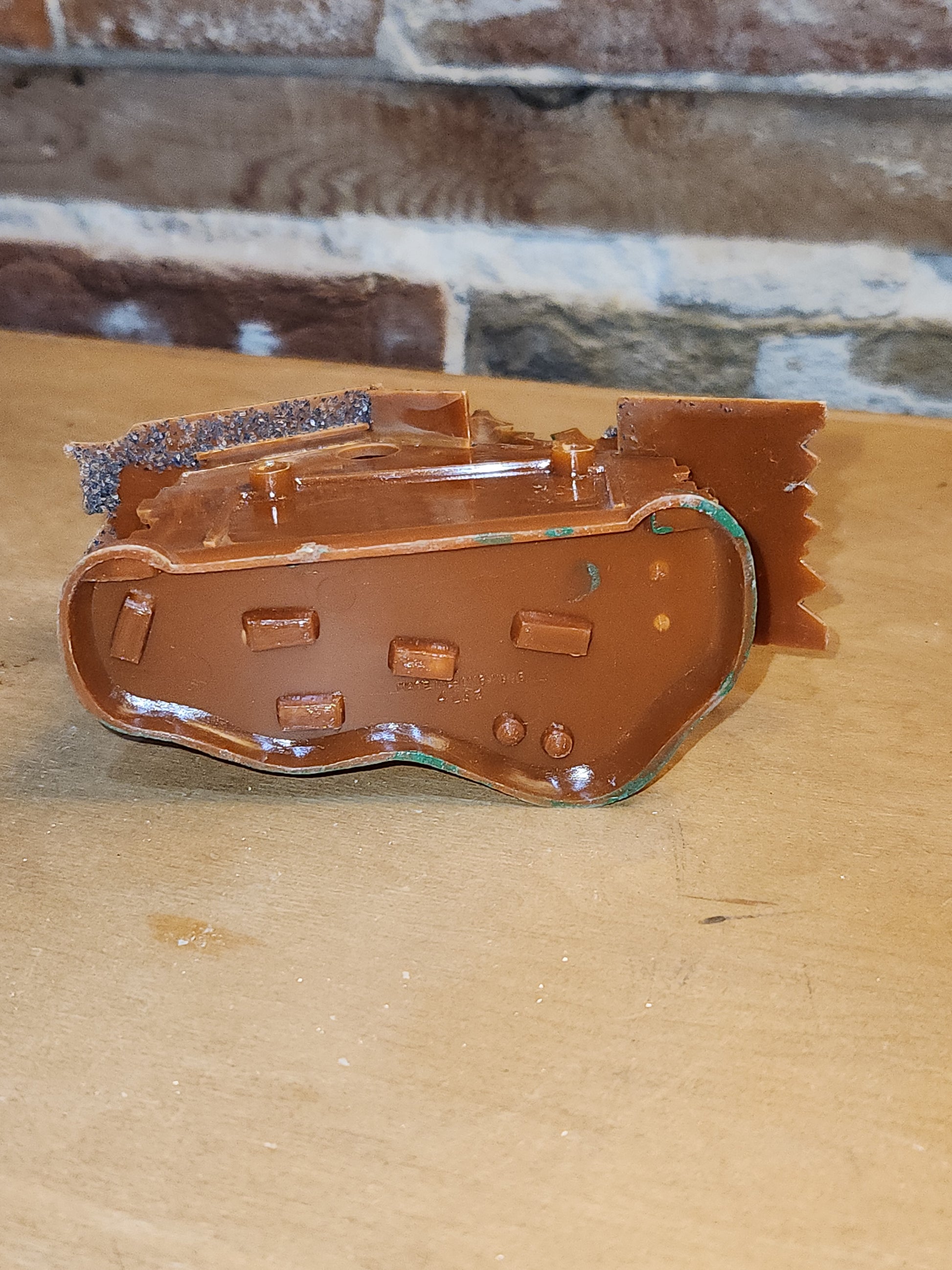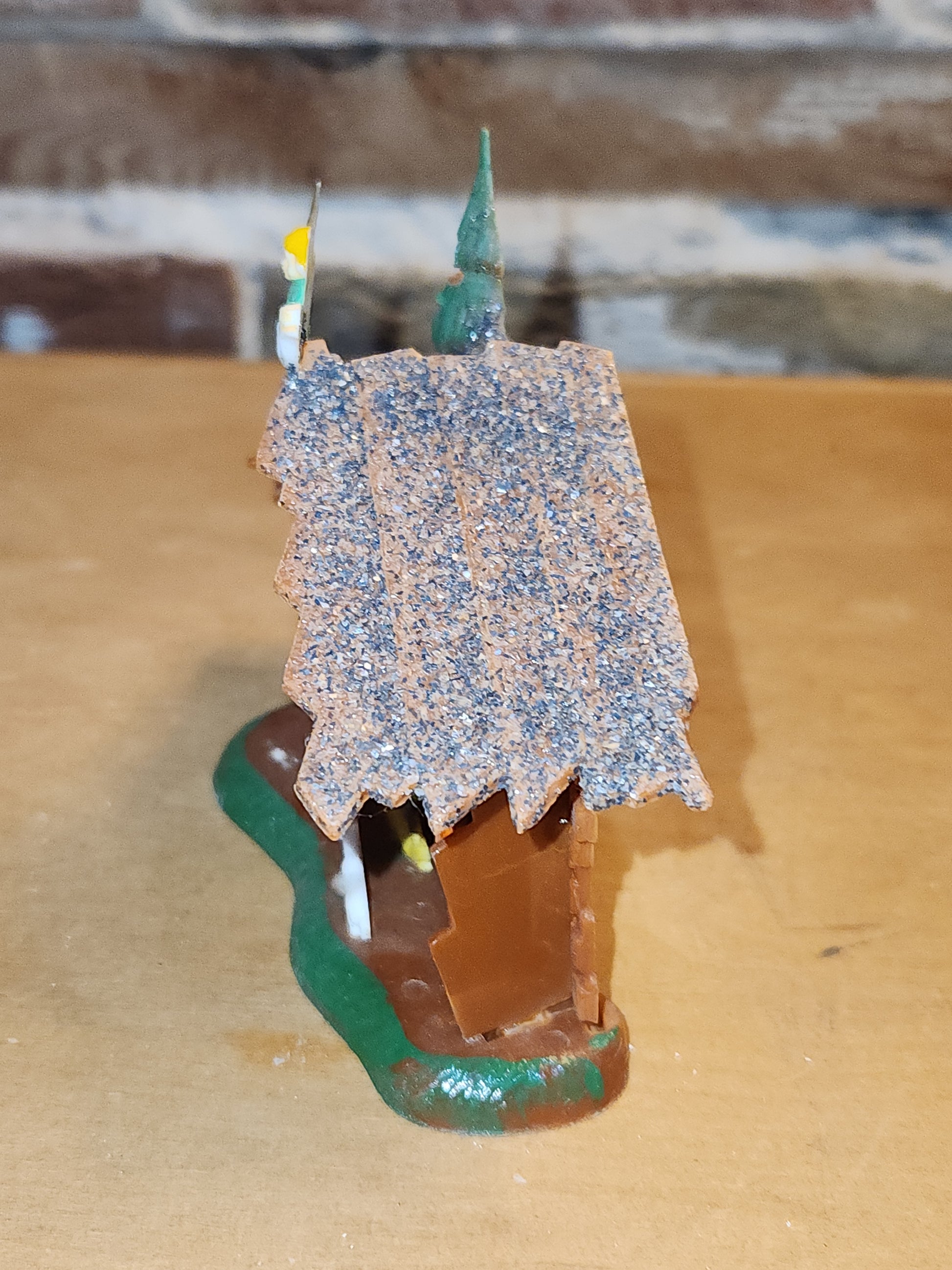 This piece is in good vintage condition. All of the pieces are present except for a lamb. The top of the left tree is missing. It is 5" long 1 1/2" wide and 3 1/2" tall. It has a hole in back to add a christmas light for a spot light on the holy family. Please look at all the photos as they are considered part of the description.