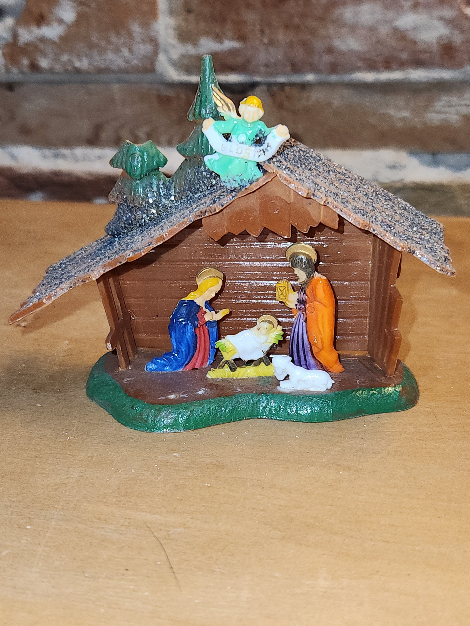 Vintage Plastic Celluloid Nativity Made in Hong Kong Mica n10