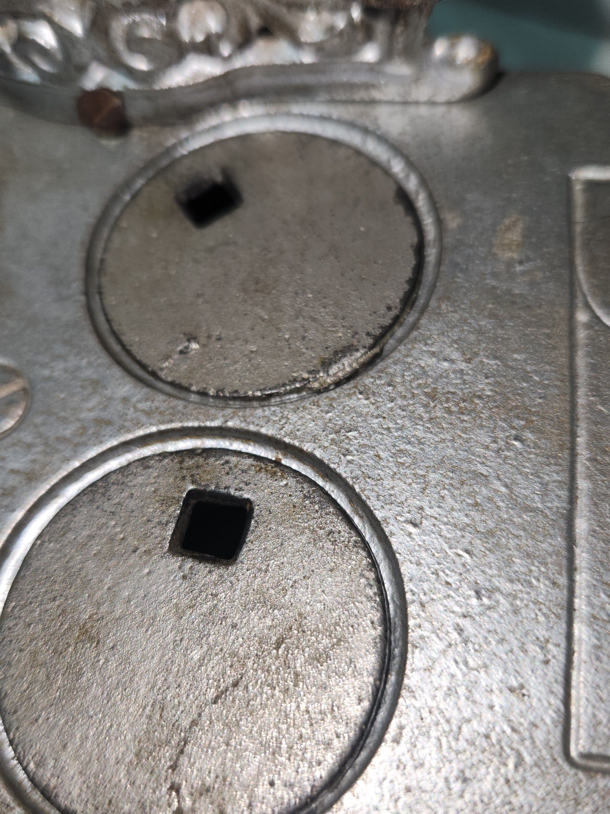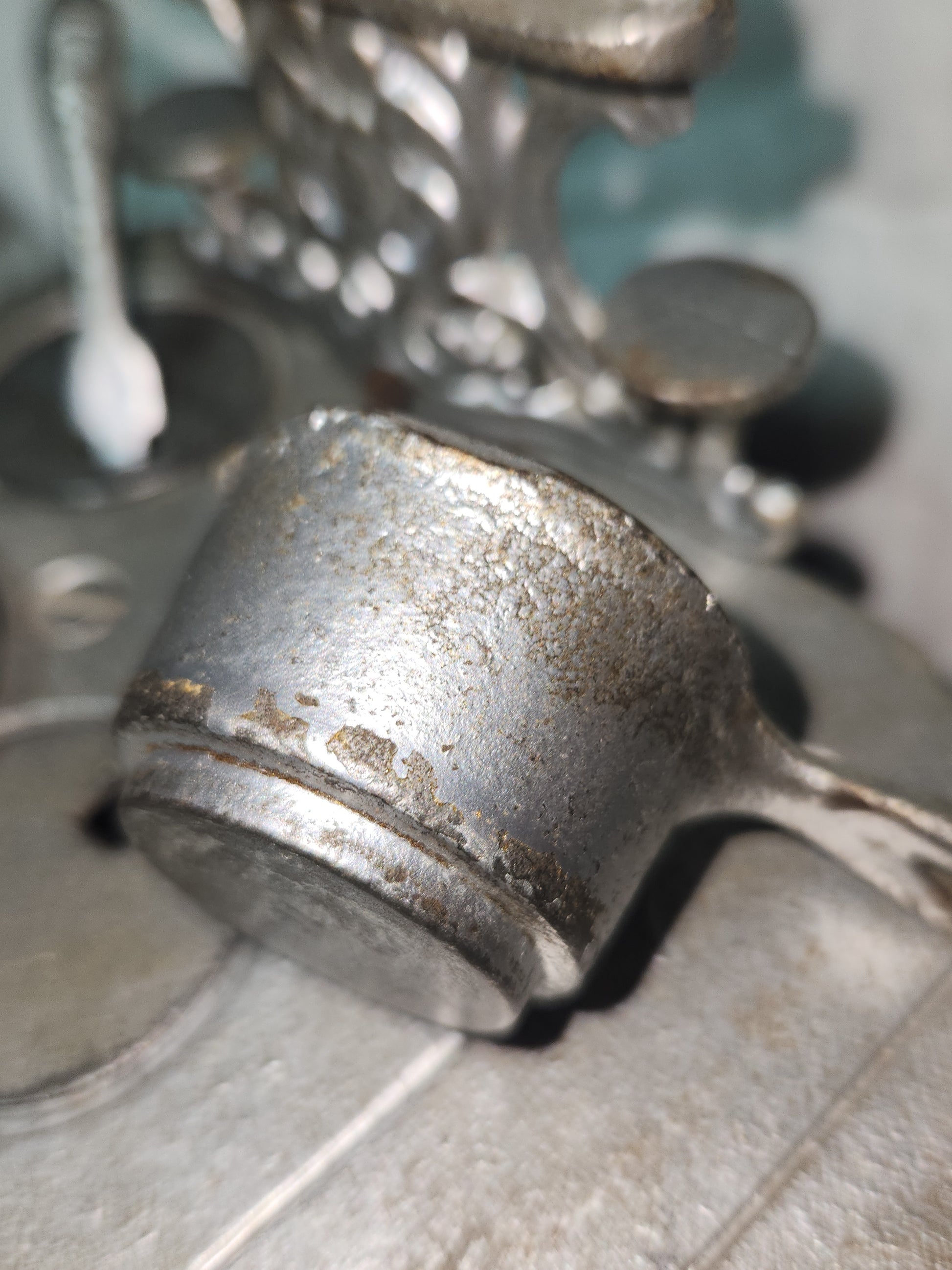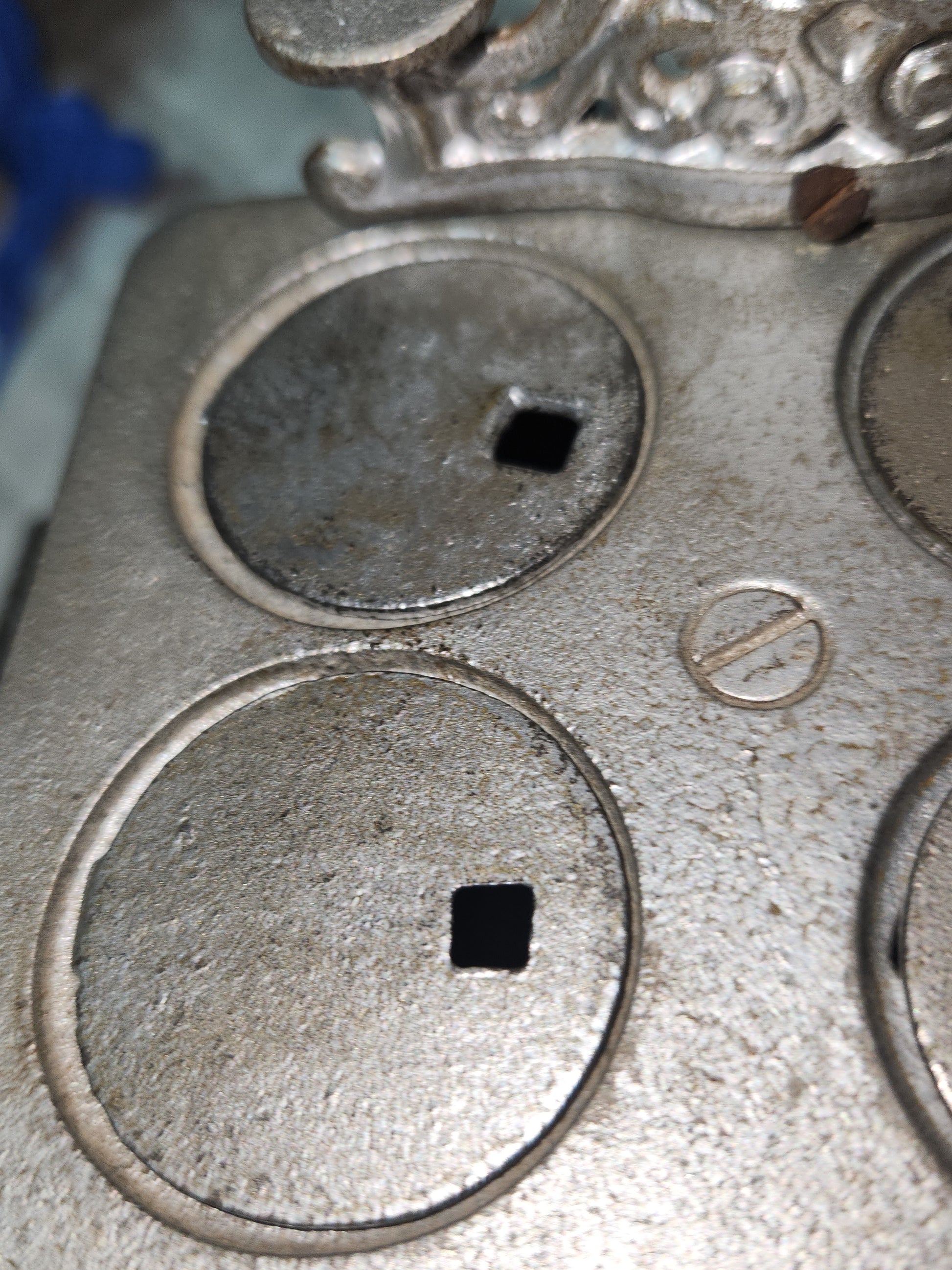 This is a Cast Iron Wood Burning Stove that was a salesman sample. The stove seems to be complete with four hot plates and the handle to lift them. The frying pan and sauce pan, the left side shelf. It has a back that seems to match but it has a screw not original but not old that holds it into its slot. This Stove is in good condition for its age, a few spots of paint loss and rust. It is heavy, nearly 3 pounds. It is 6 1/2" tall with the back piece 7 1/2" wide and 4 1/2" deep. Please see photos as they are part of the description.