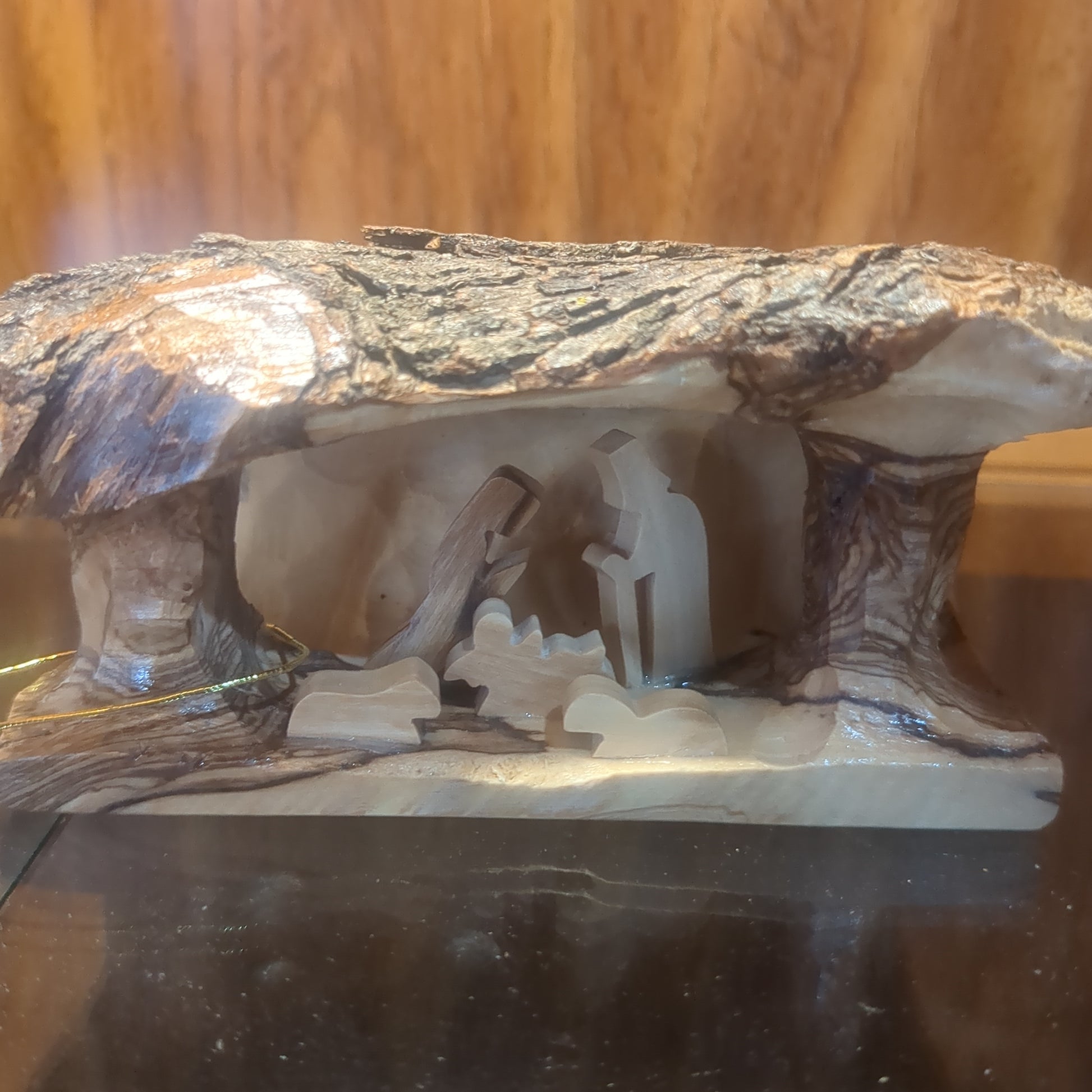 Small Nativty for sitting on a shelf. Made from Olive branch in Bethlehem