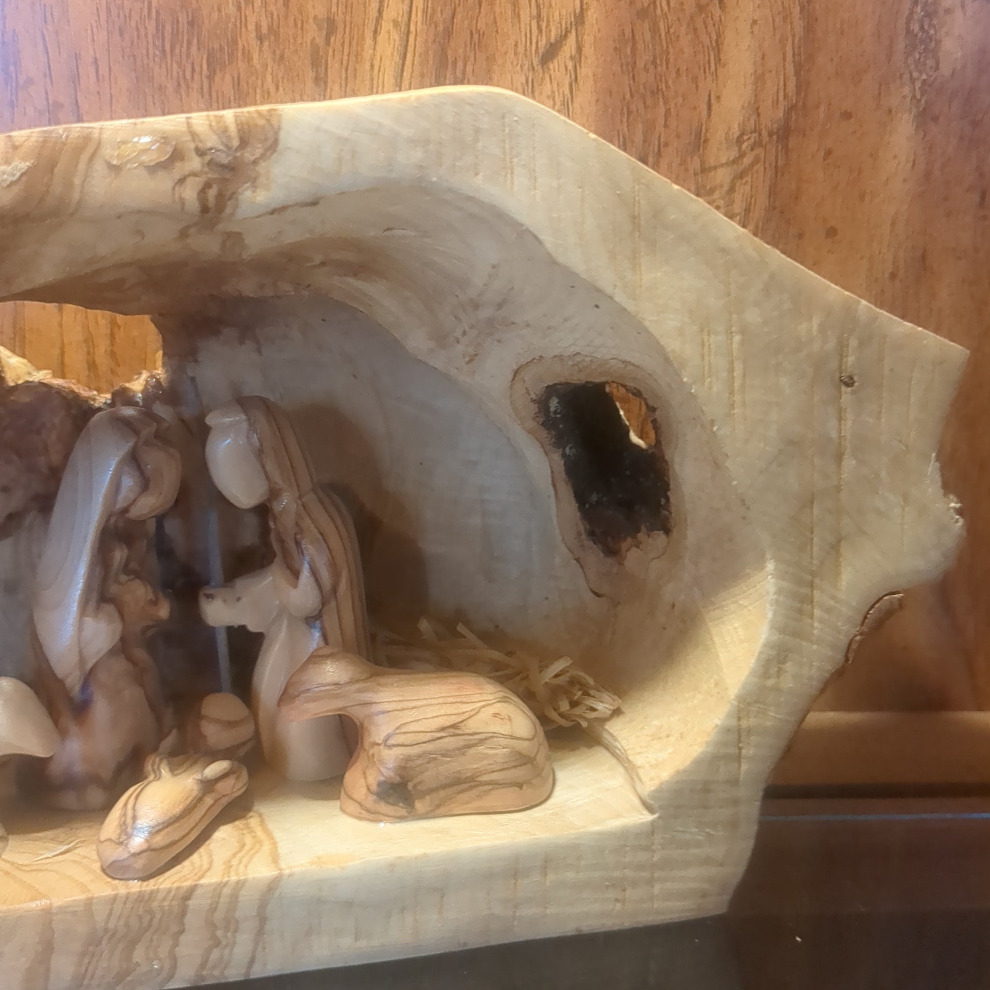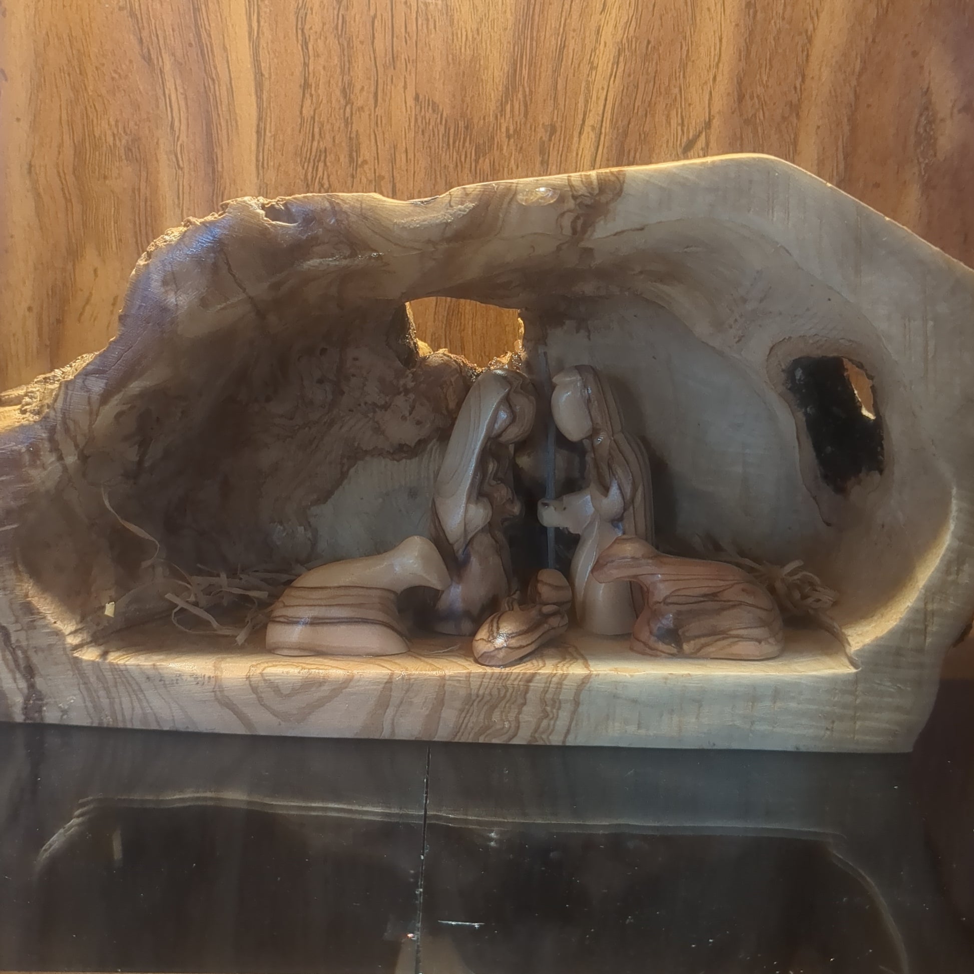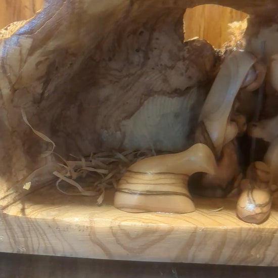 Large Grotto nativity made from Roots of the olive wood tree. Made in Bethlehem. N1