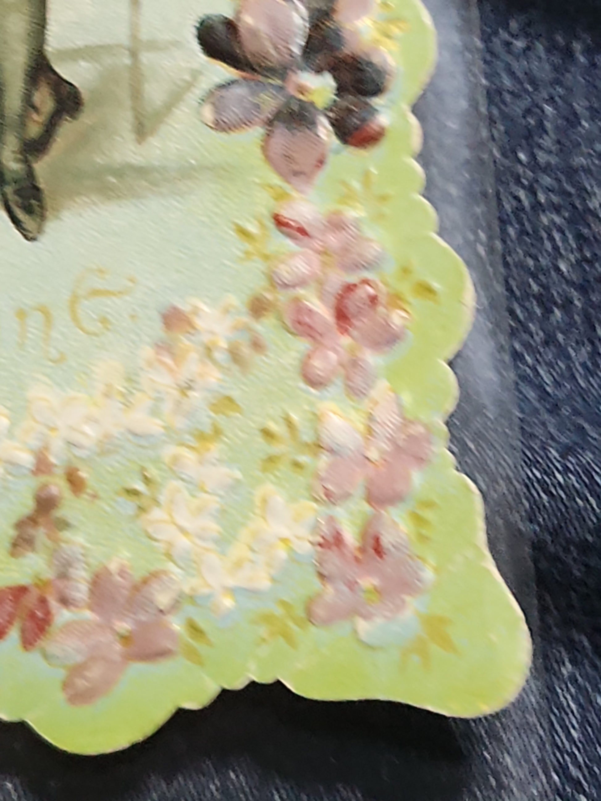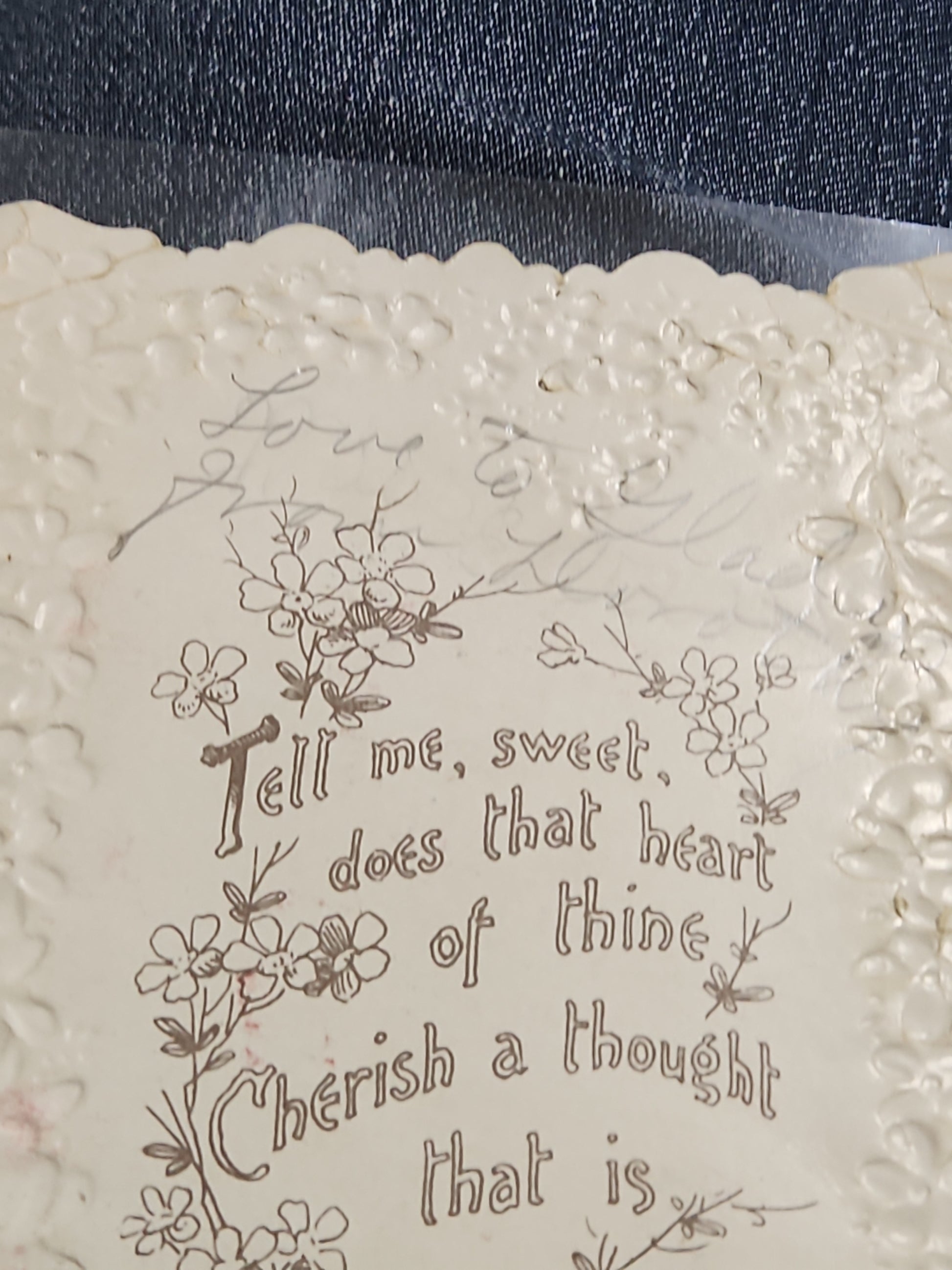 Antique Valentines Postcard Embossed Beloved Victorian couple Embossed flowers poem