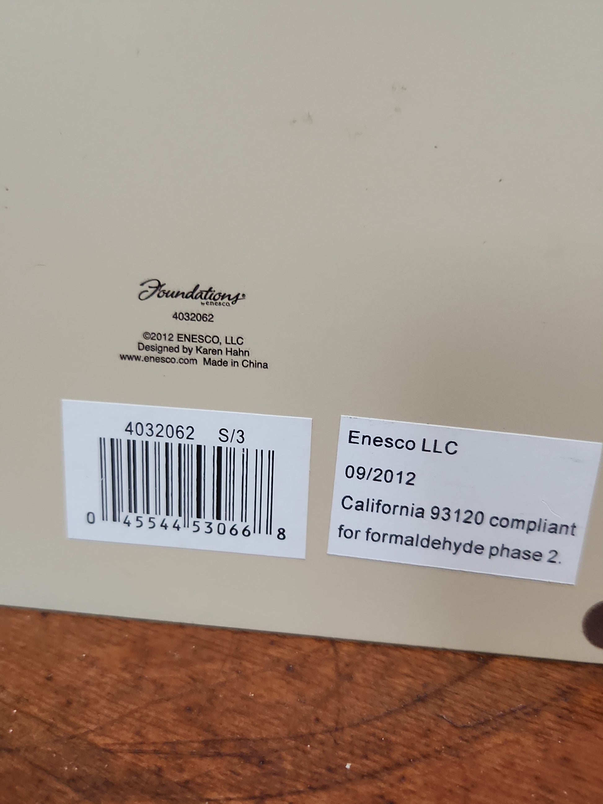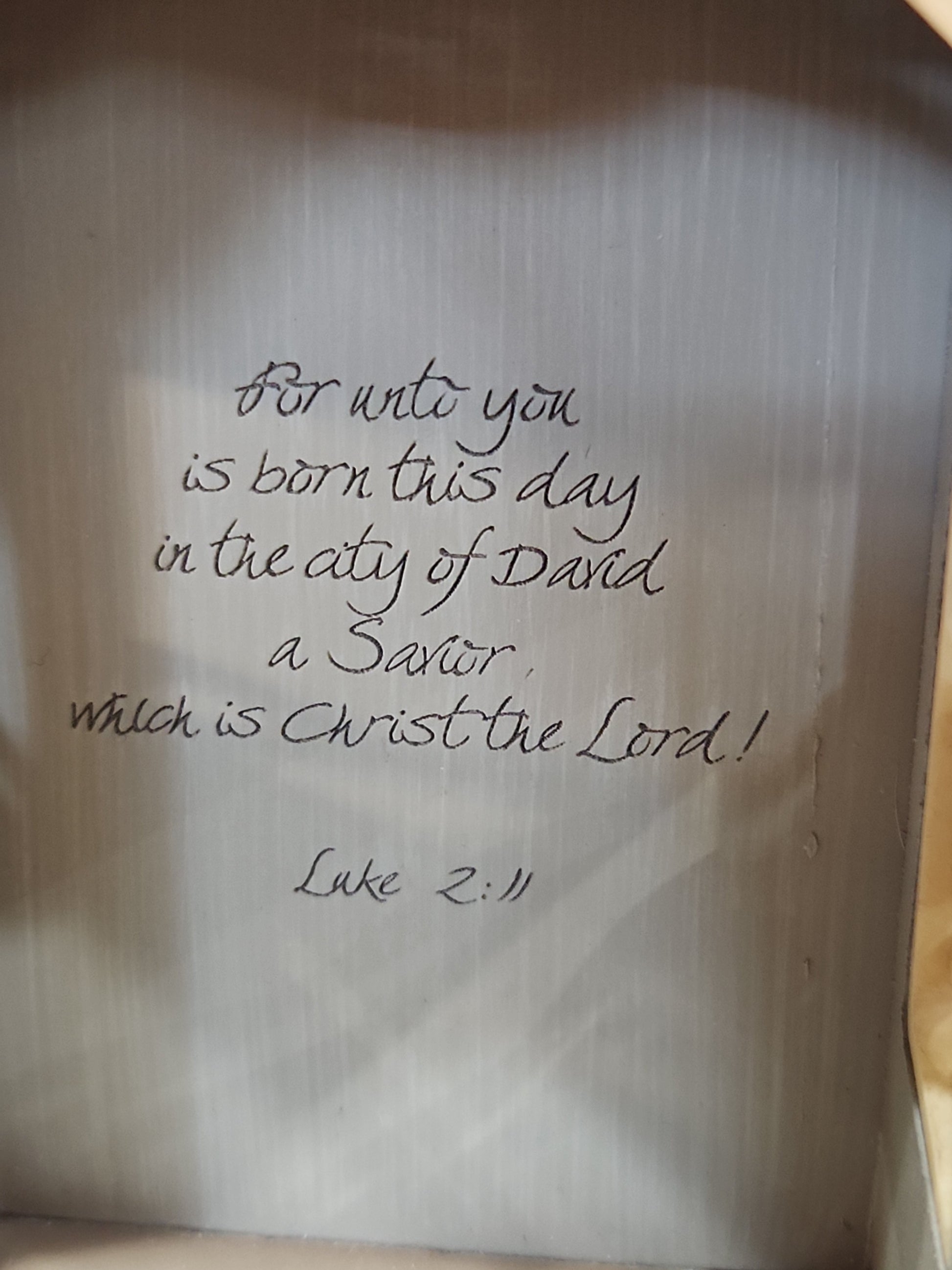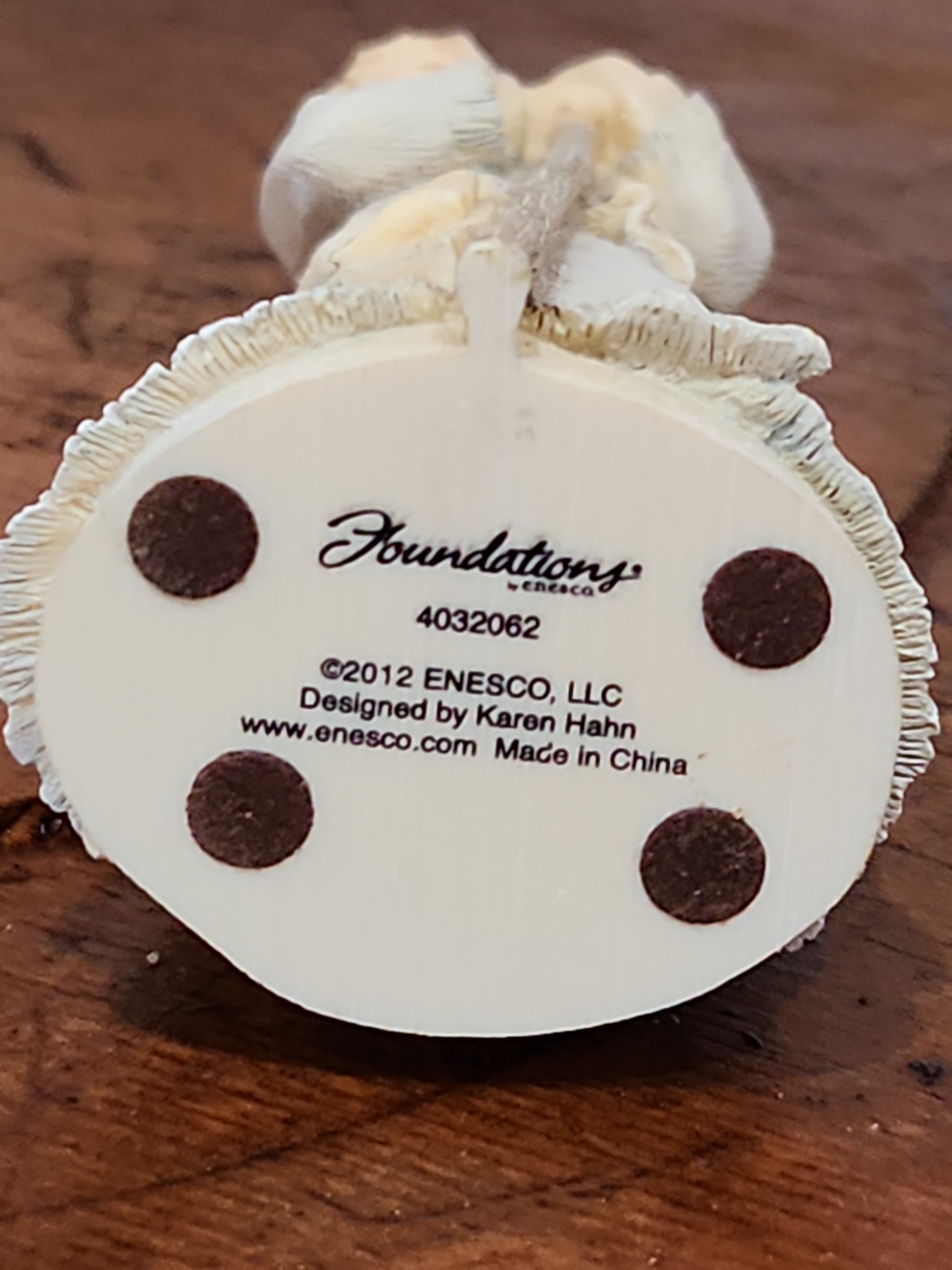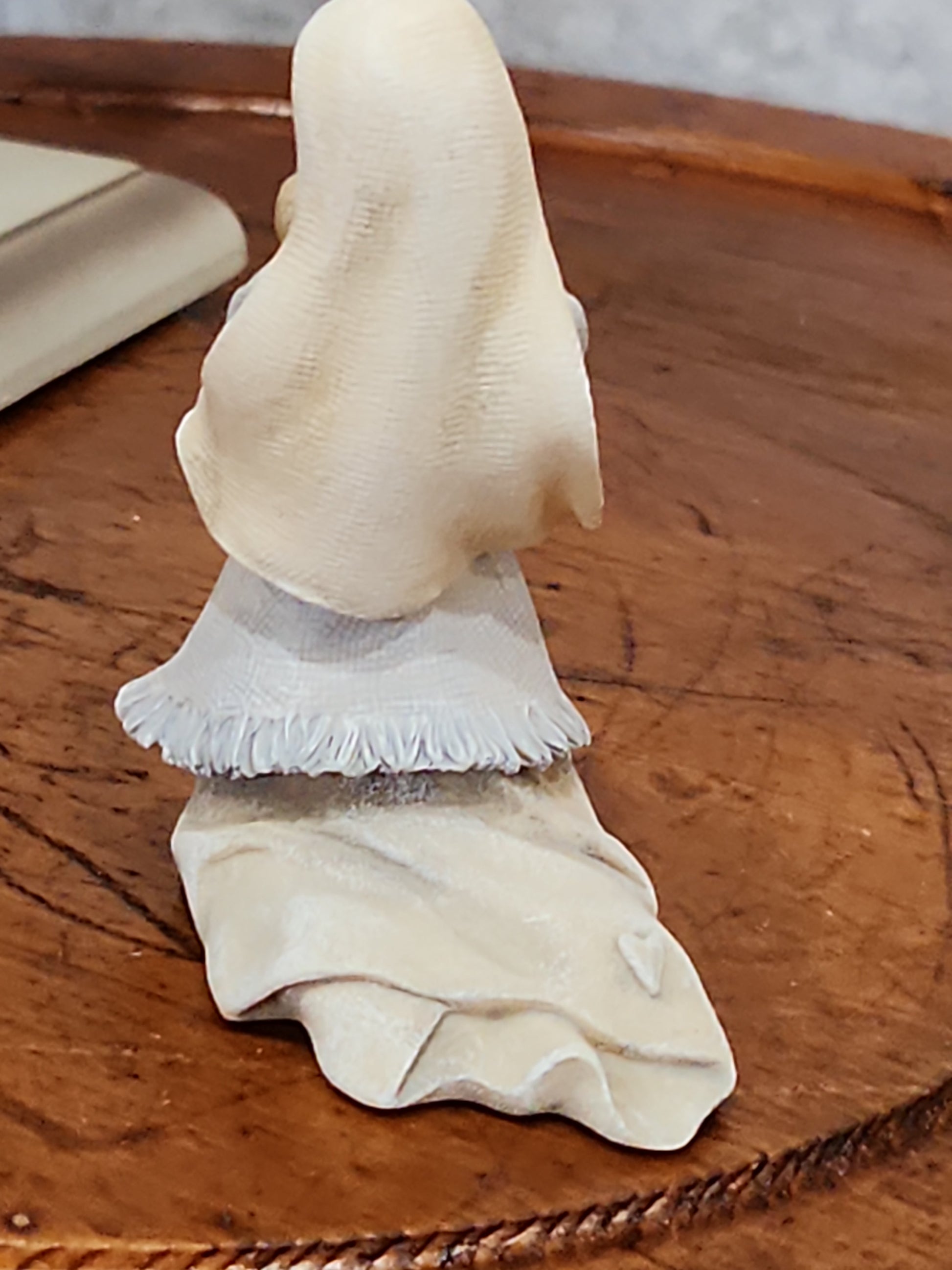 Retired in 2014, this is a beautiful miniature 3 pc Nativity set includes Mary holding Baby Jesus; Joseph made of resin and tallest is a bit over 4 1/2" tall. It has a wooden stable 7" tall with a Christmas passage printed on the inside panel and a star hangs above it. Please see the photo as they are part of the description.