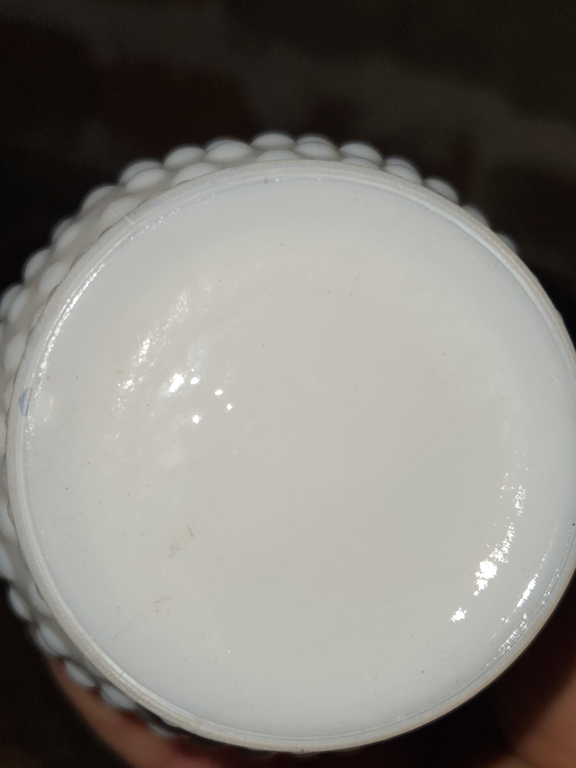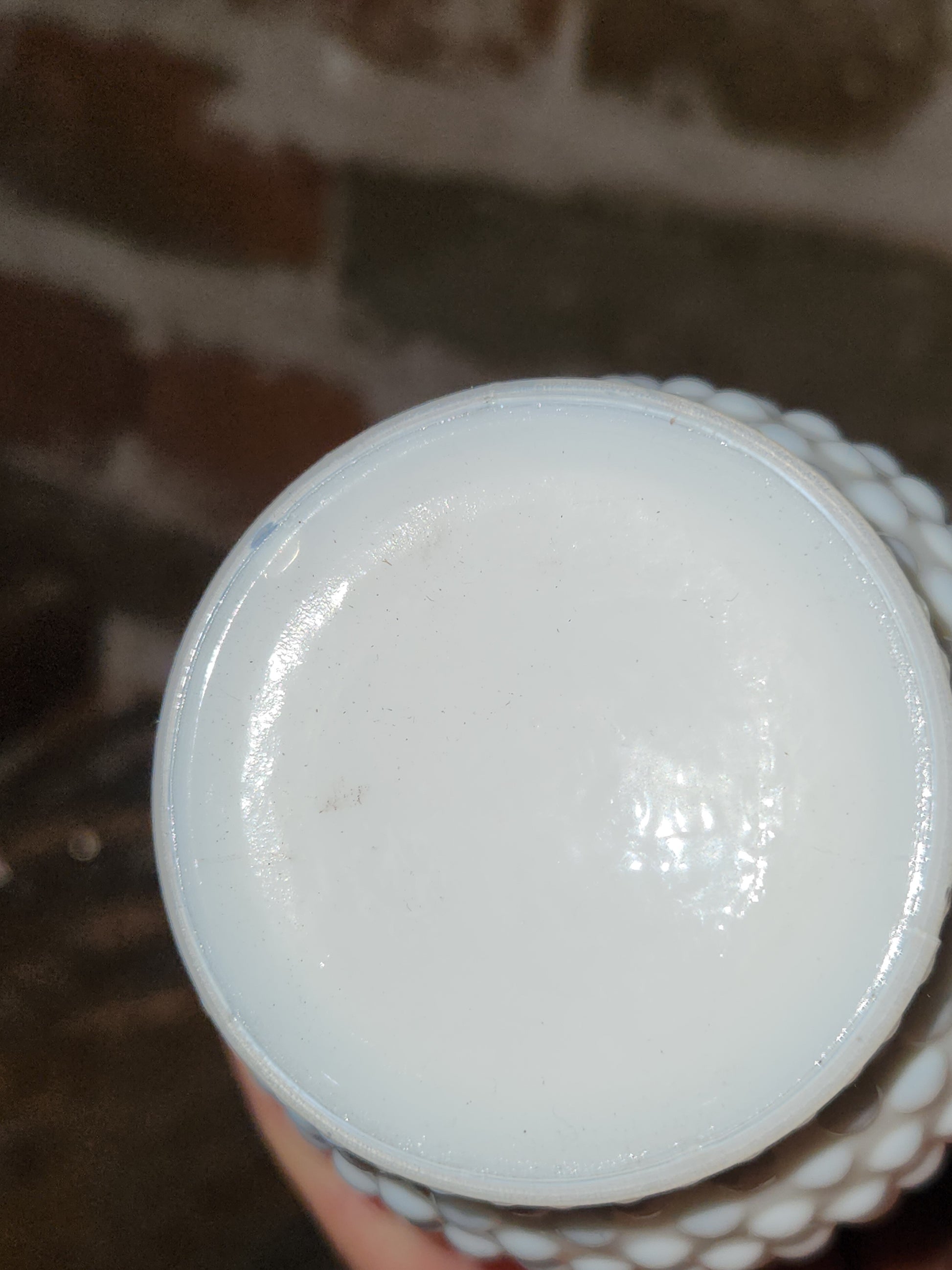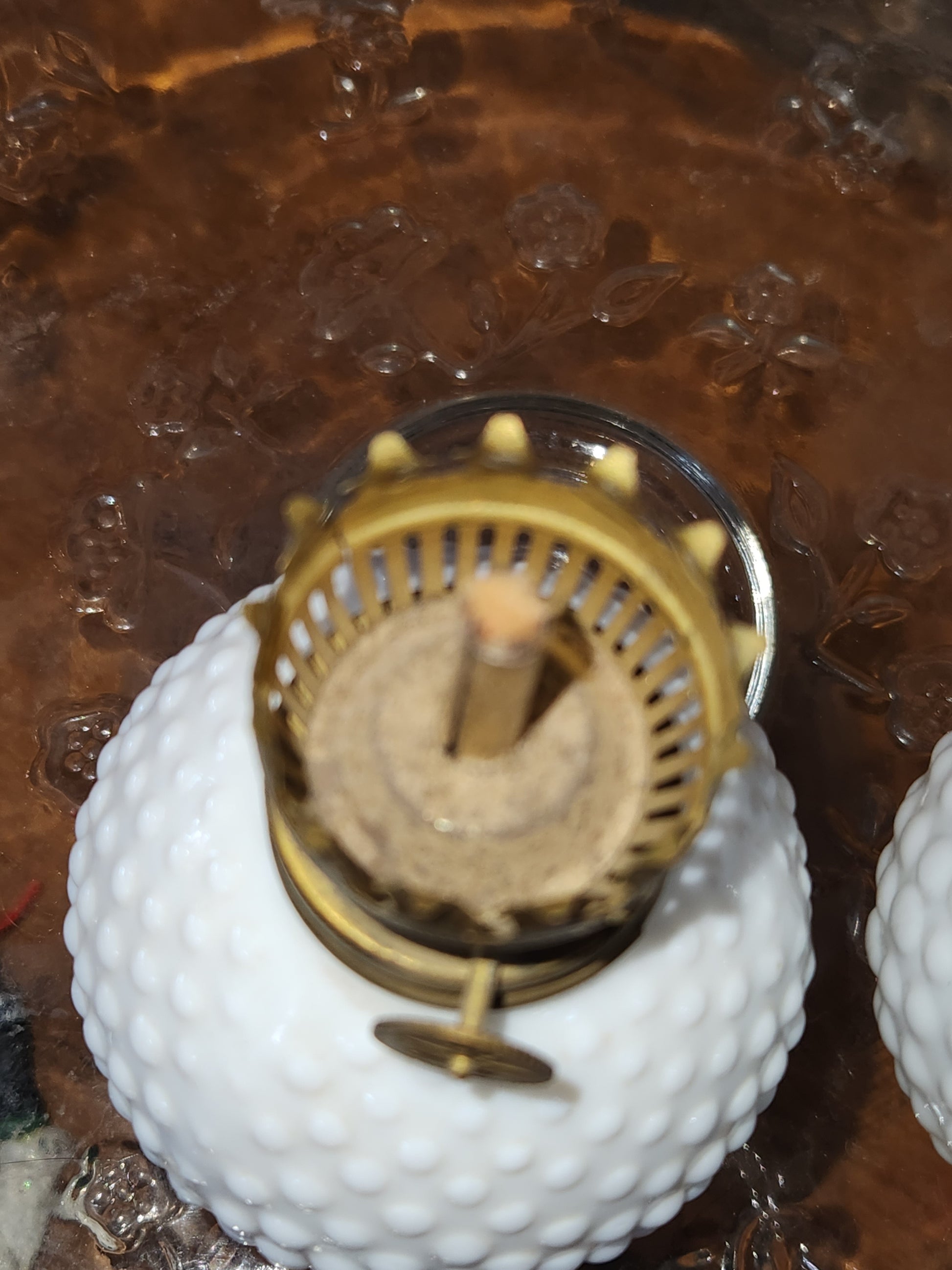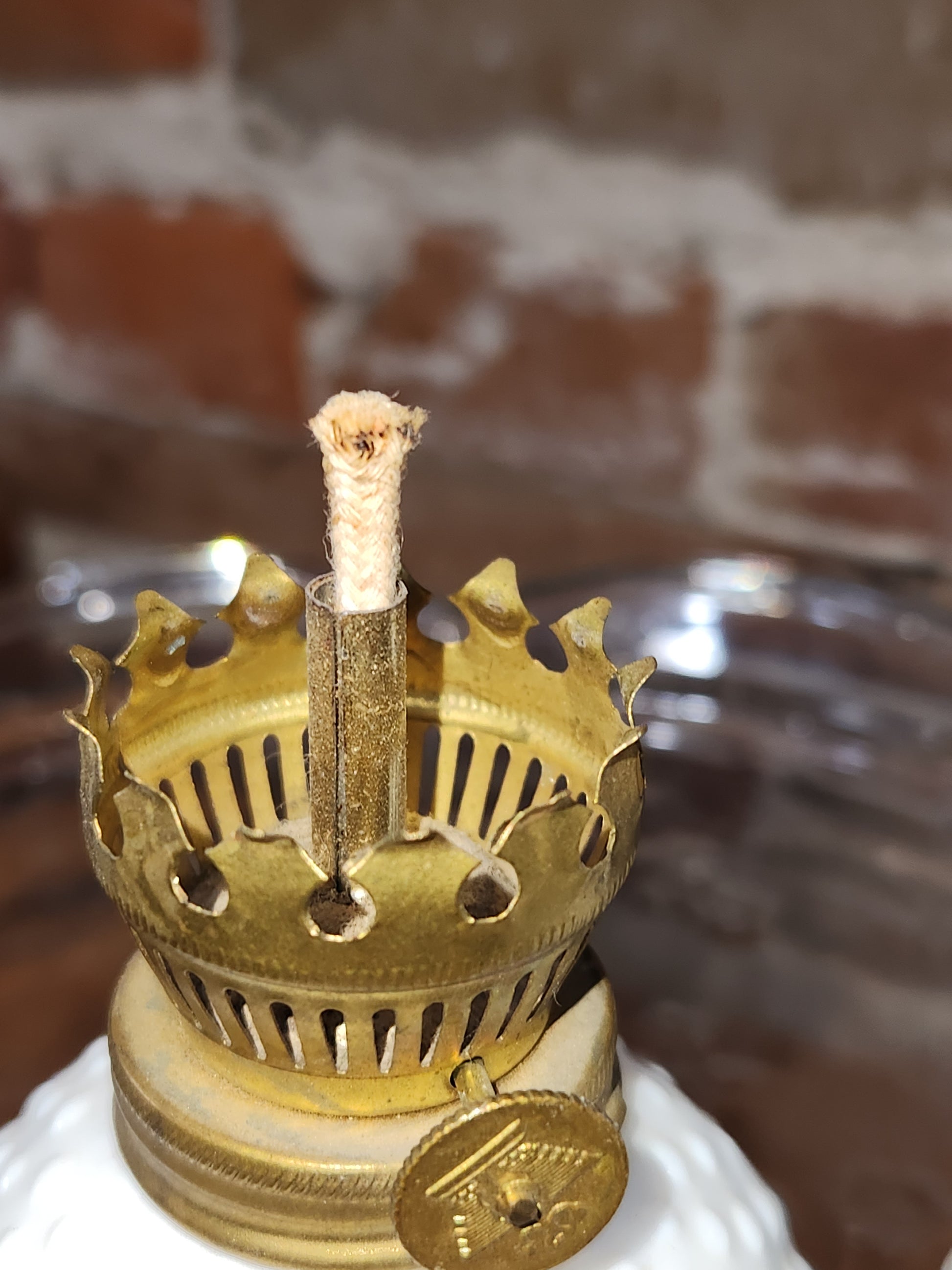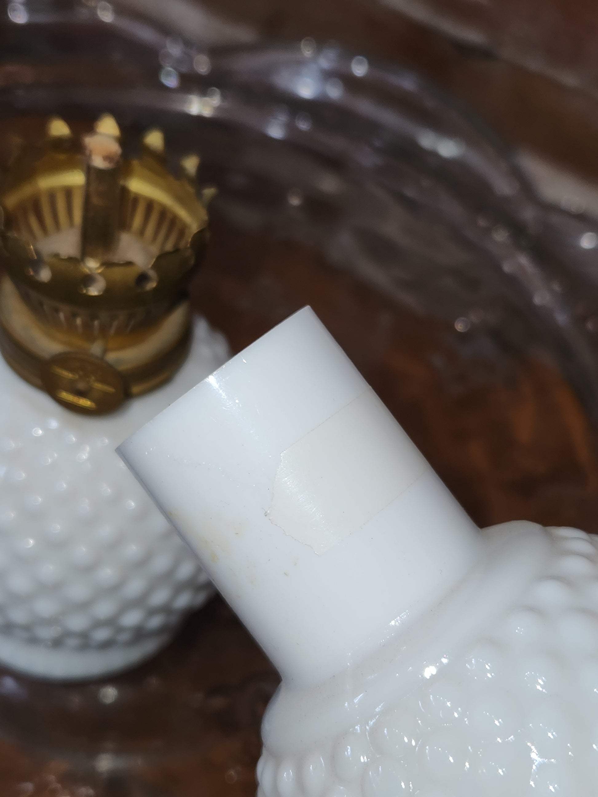 Fenton White Milk Glass Hobnail Minature Kerosene Lamp in in great condition. It is empty, please see the photos as those are part of the description