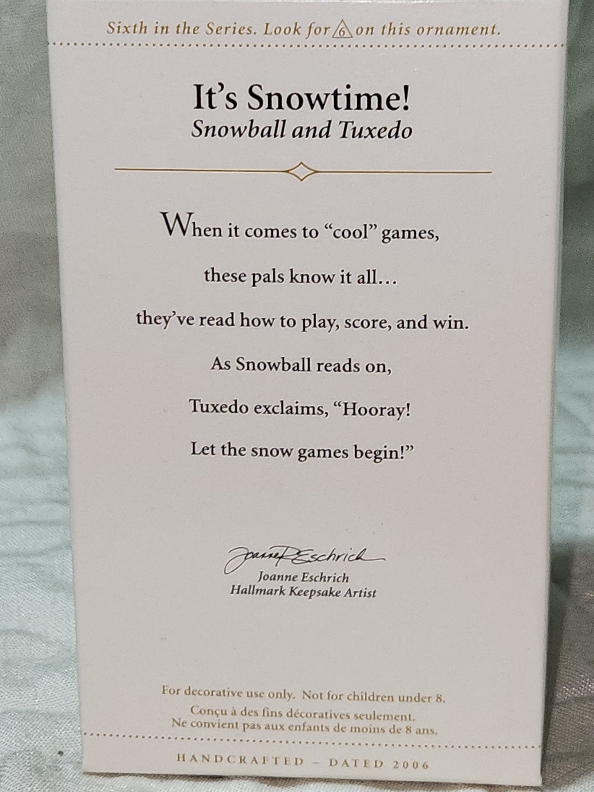 Hallmark Keepsake Ornament 2006 It's Snowtime! 6th in Snowball and Tuxedo Series