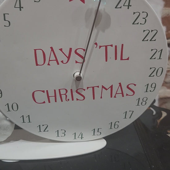 Hallmark metal musical Christmas countdown calendar with box. Requires 2 AA batteries, not included. It has been tested and works, when moving each day you do have to make certain it clicks into the day or it will not ppay music. When you move the habd each day it plays Jingle Bells Insturmental only. It has foam pads underneath to protect firmiture. I believe it is used but in. ery good condition. It has original box and syrofiam to hold it safe. Please see all photos as they are part of the deaceiption.