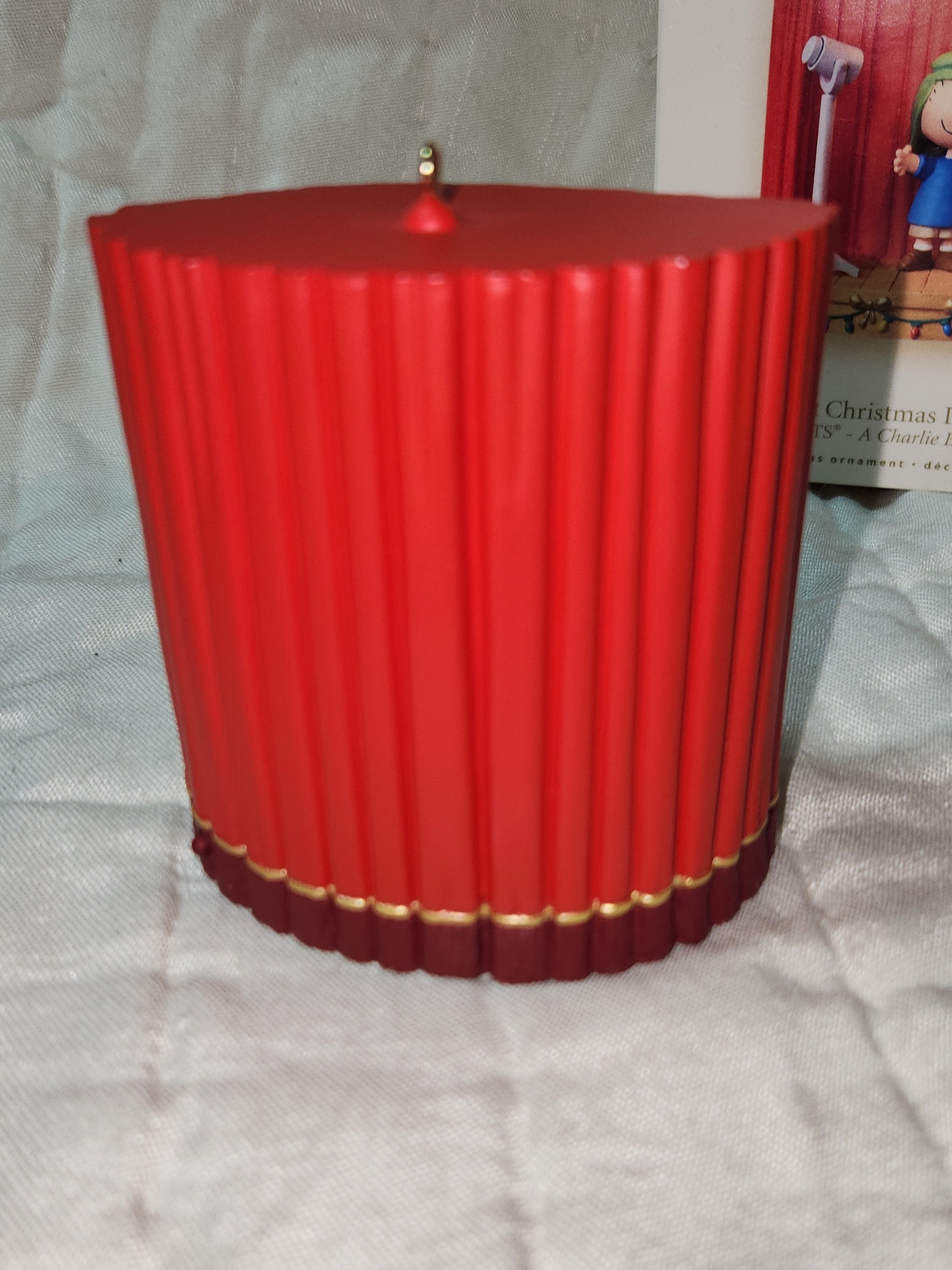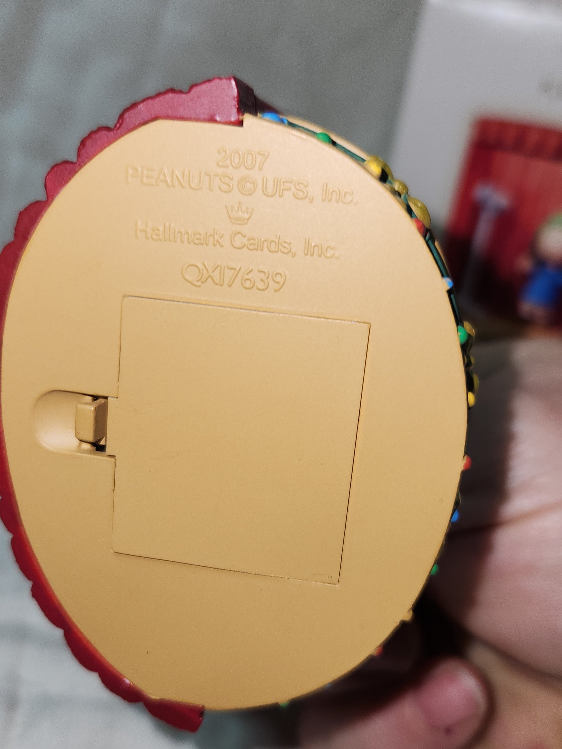 Press the button on the right side of the ornament to activate light and hear an audio clip from the original program. The light will automatically fade off. It is battery operated and has been tested with both lights and sound working. It is a hard to find ornament selling very quickly in 2007. It is 3" tall. It is in good condition with no cracks, chips or broken pieces. Please see the photos as they are part of the description