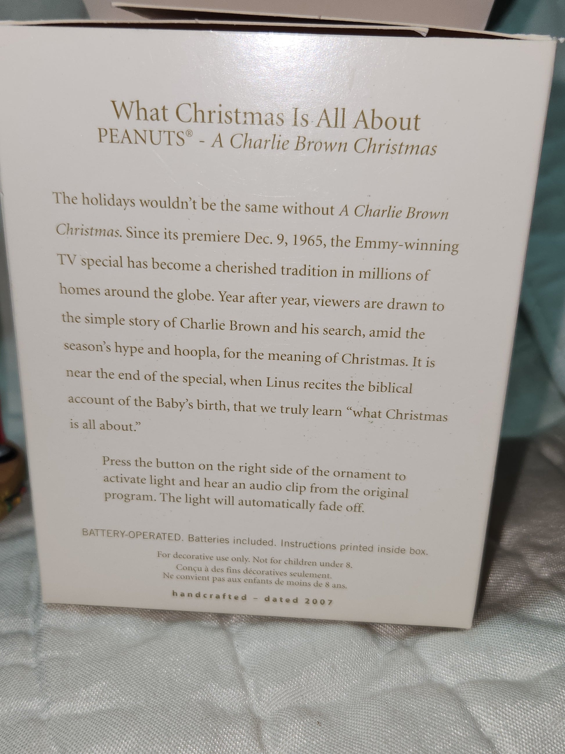 Hallmark Keepsake Ornament 2007 What Christmas Is All About Peanuts - A Charlie Brown Christmas magic sound light