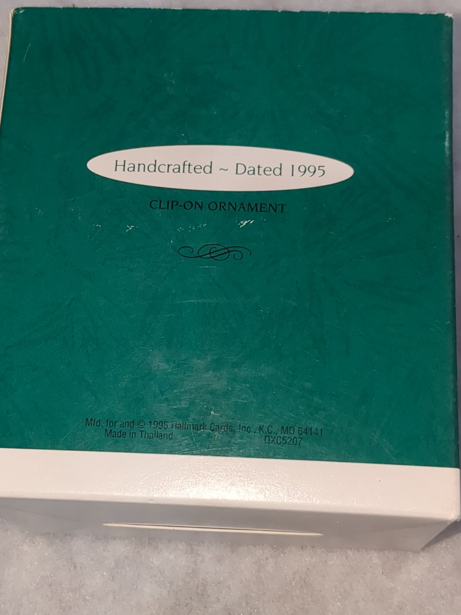 This ornament comes in original box with bubble wrap. The ornament has a clip on the bottom to clip onto a tree branch. It is in good condition, no issues seen. The box has shelf wear. Please see photos as they are part of the description.