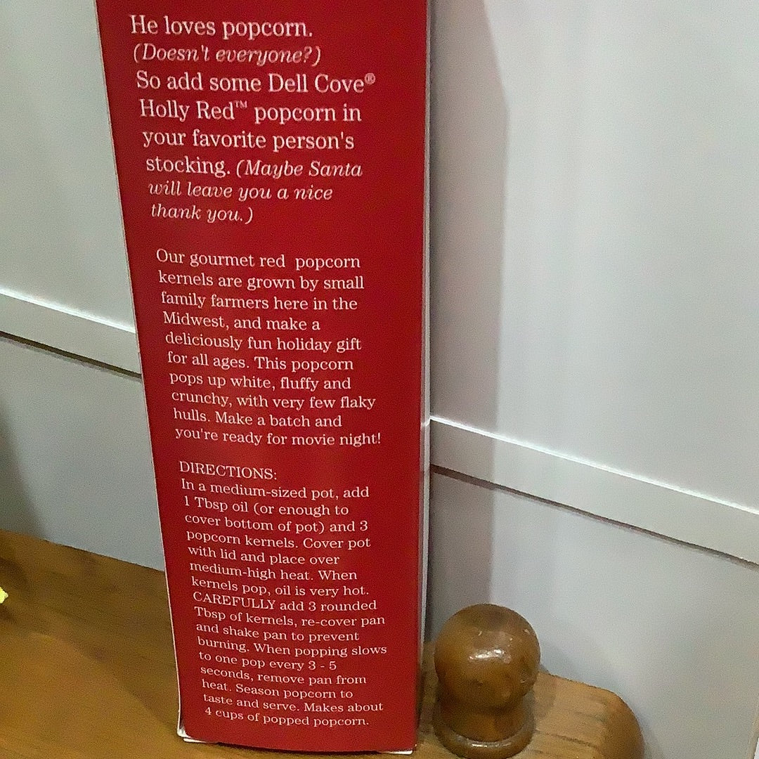 Gourmet popcorn kernels. Pops up white, fluffy, crunchy