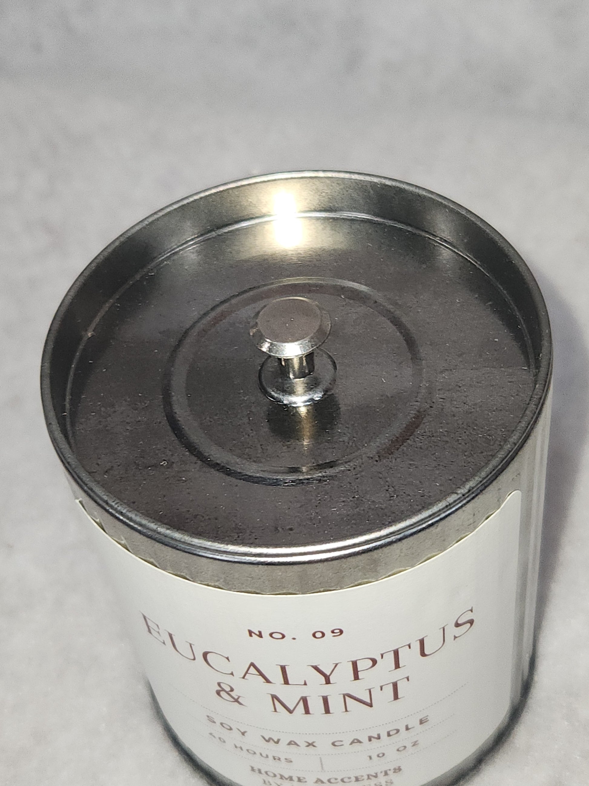 Eucalyptus & Mint 10 oz. Burn Time: 40+ Hours Wax: Soy Wax Container: Tin Container With Tin Lid CANDLE CARE INSTRUCTIONS: • Trim Your Wick to 1/4" Before Candle is Lit Every Time • Burn Candle so Wax Pool Reaches the Jar Edge Each Time to Prevent Wax Tunneling • Burn Candle No More Than 4 Hours at a Time and Do Not Burn Candle with Less Than a 1/2" of Wax Remaining • Keep Candle Away from Fans, Open Windows, Hot Surfaces, Children, Pets • Never Leave a Burning Candle Unattended Keywords - Soy Wax, Candle, Home Décor, Cotton Wick, Holiday Candle, Summer Decor, Spring Decor, Summer Candles, Spring Candles, Wholesale Candles, Holiday candle