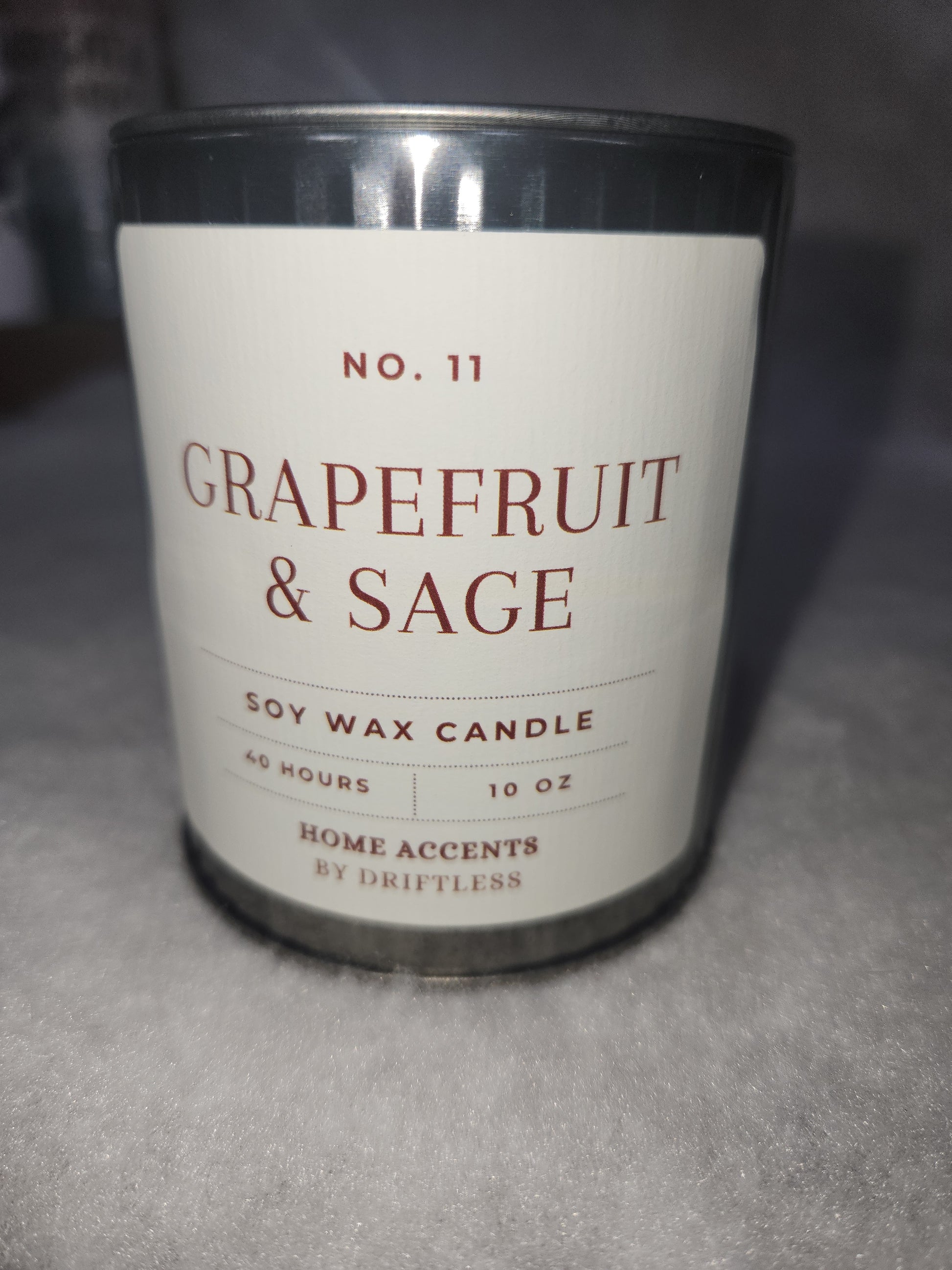 Grapefruit & Sage. 10 oz. Burn Time: 40+ Hours Wax: Soy Wax Container: Tin Container With Tin Lid CANDLE CARE INSTRUCTIONS: • Trim Your Wick to 1/4" Before Candle is Lit Every Time • Burn Candle so Wax Pool Reaches the Jar Edge Each Time to Prevent Wax Tunneling • Burn Candle No More Than 4 Hours at a Time and Do Not Burn Candle with Less Than a 1/2" of Wax Remaining • Keep Candle Away from Fans, Open Windows, Hot Surfaces, Children, Pets • Never Leave a Burning Candle Unattended Keywords - Soy Wax, Candle, Home Décor, Cotton Wick, Holiday Candle, Summer Decor, Spring Decor, Summer Candles, Spring Candles, Wholesale Candles, Holiday candle