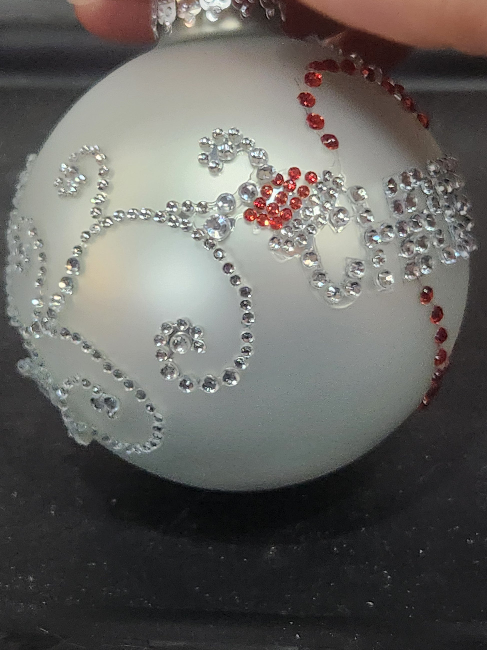 At a bit over 3" this beautiful ornament has faux jewels making the swords I Santa, the heart and the decorative swirls. Please see the photos as they are part of the description.