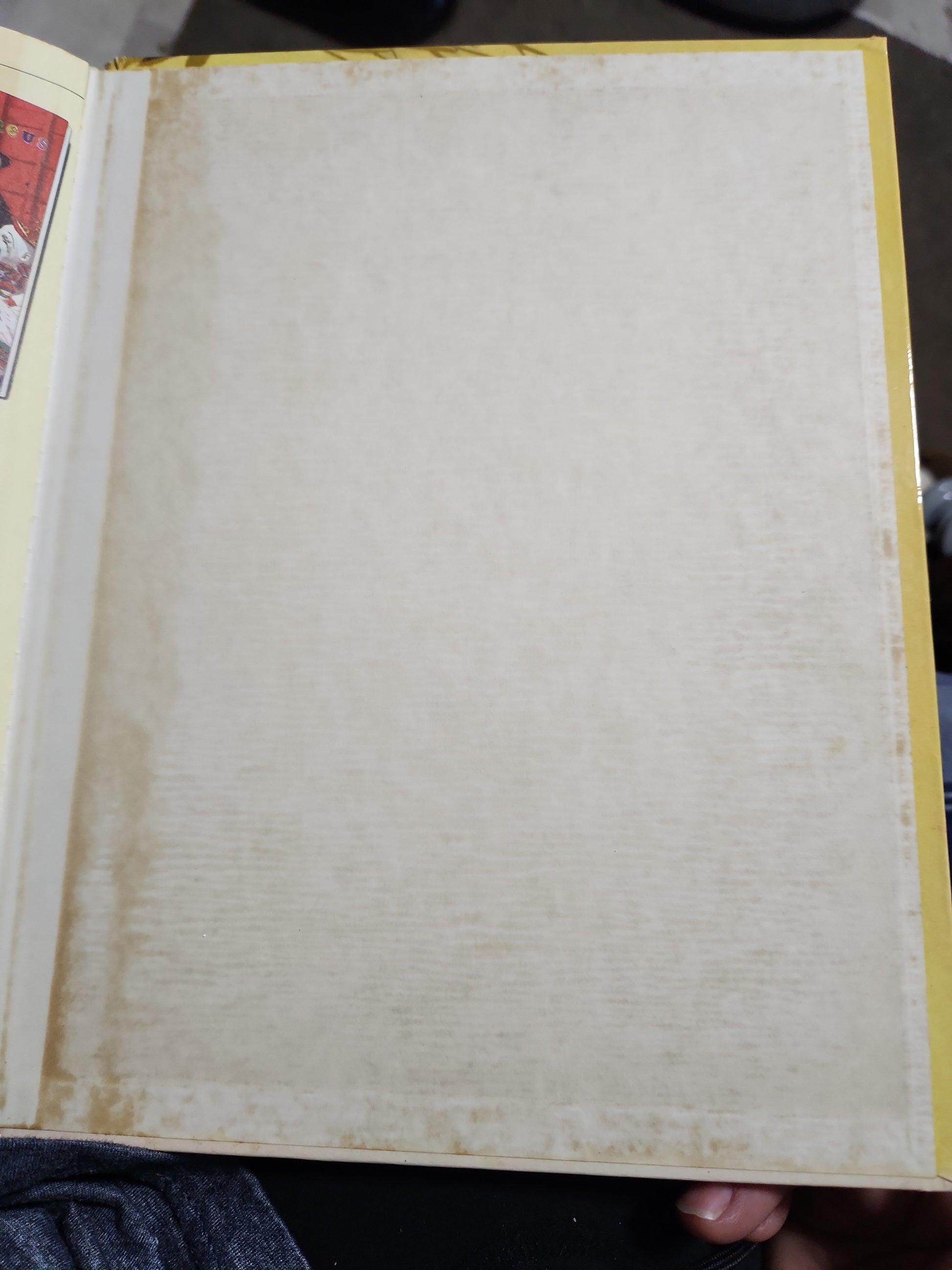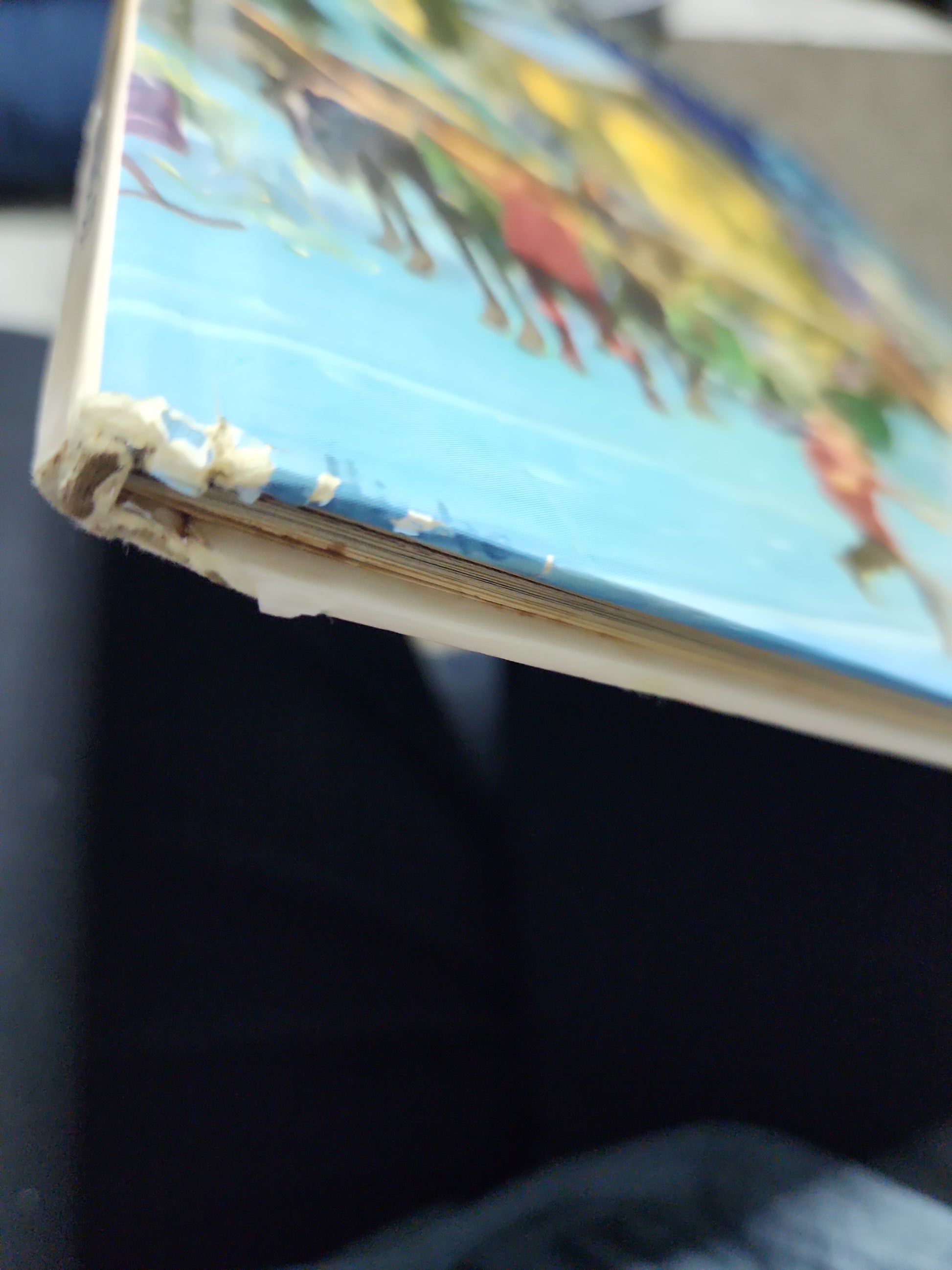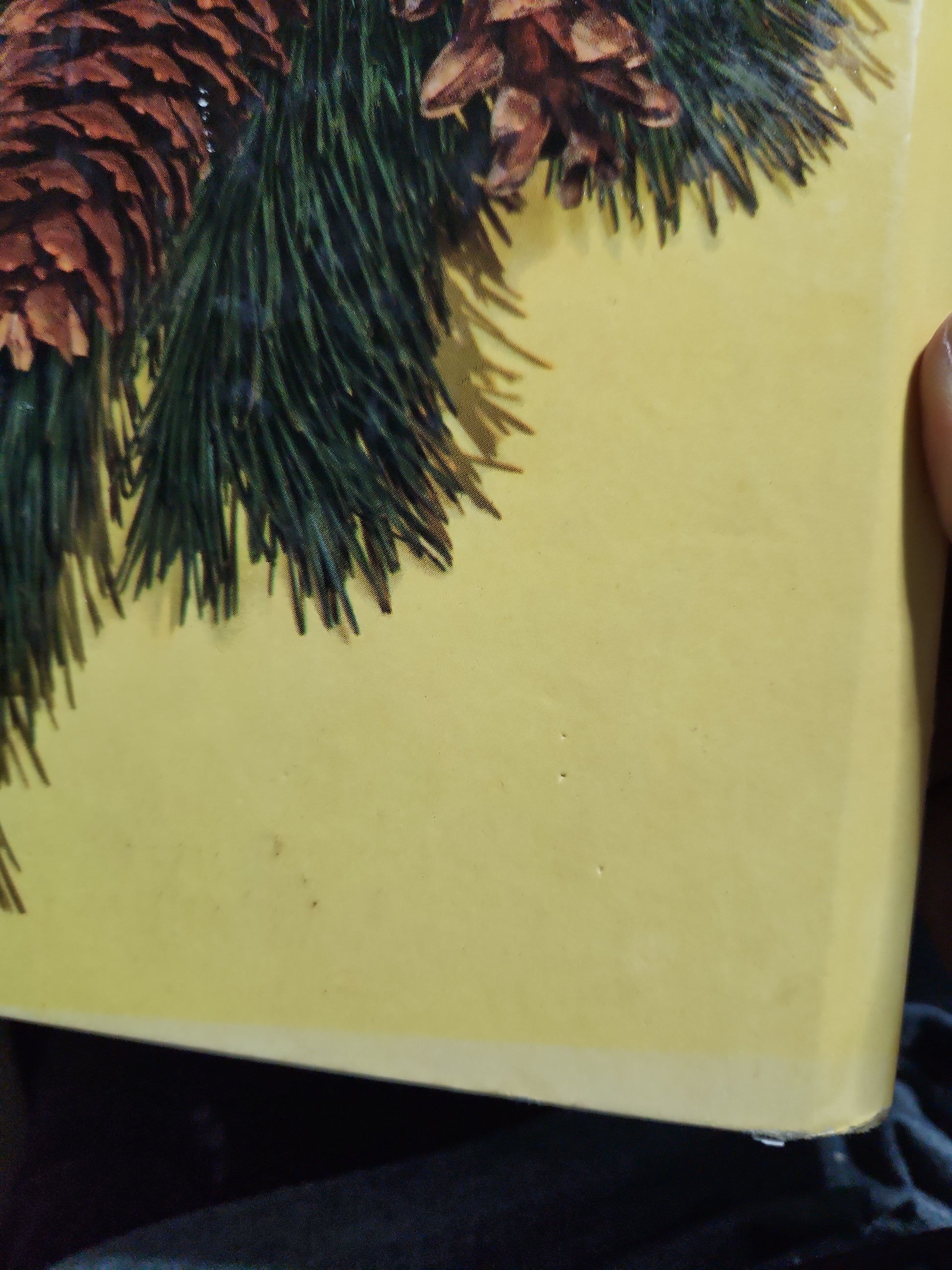 The inside pages of this book are in good condition, I don't see any major rips, stains or wear. The front and back cover have a lot of shelf wear with tears to the corners and edges. There is some staining inside cover and some on back cover. It is a neat book worth reading with your loved ones at Christmas. Please see photos.