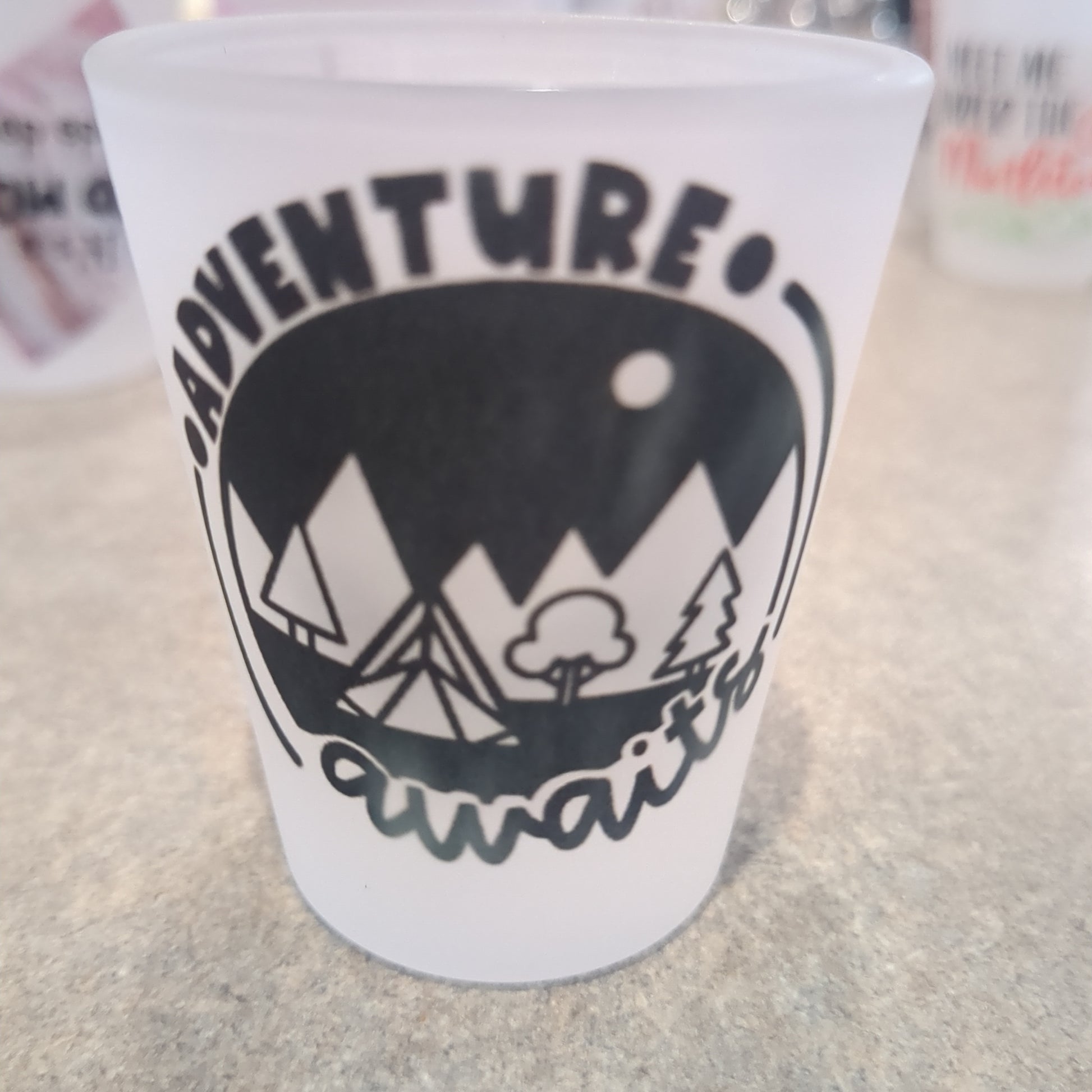 Imperfect Frosted glass shot glass. Adventure awaits