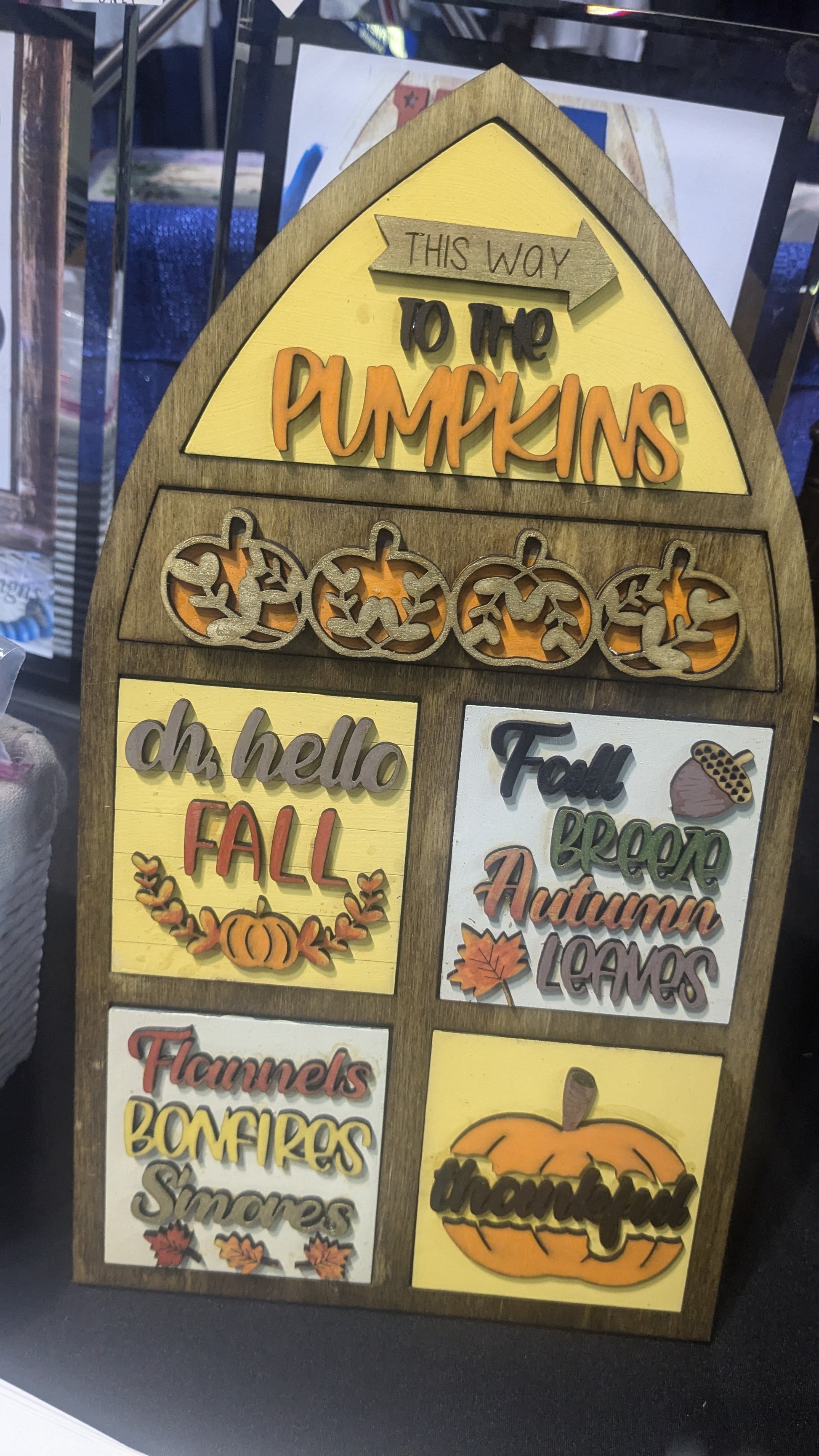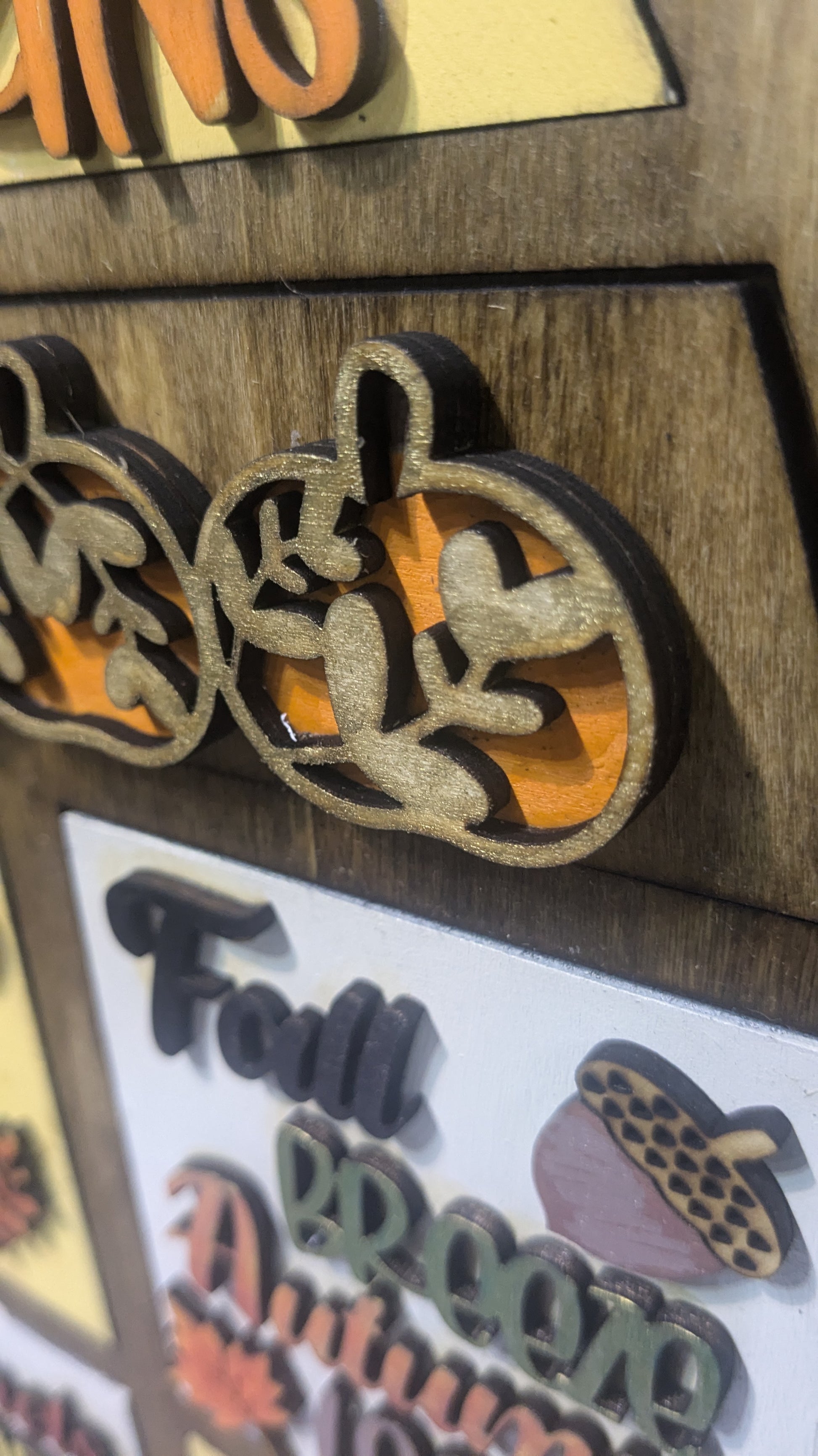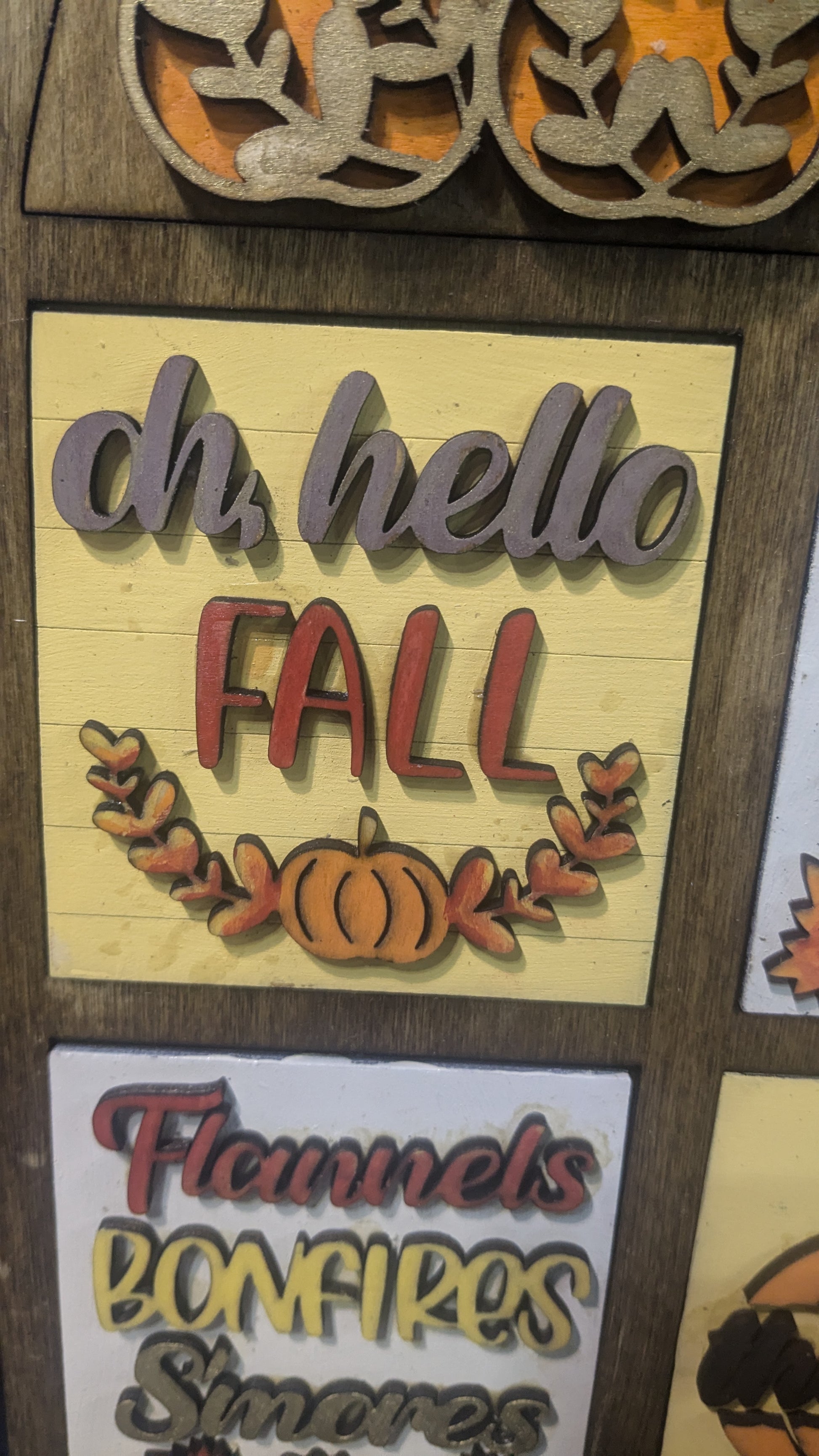 Each frame is made from balsa wood has 6 squares. It is 14.5 inches tall and includes a wall hanger and a frame stand, but it can easily lean on the wall. If hanging in the wall we recommend adding a small piece of double sided sticky tape to each square to help it hold.