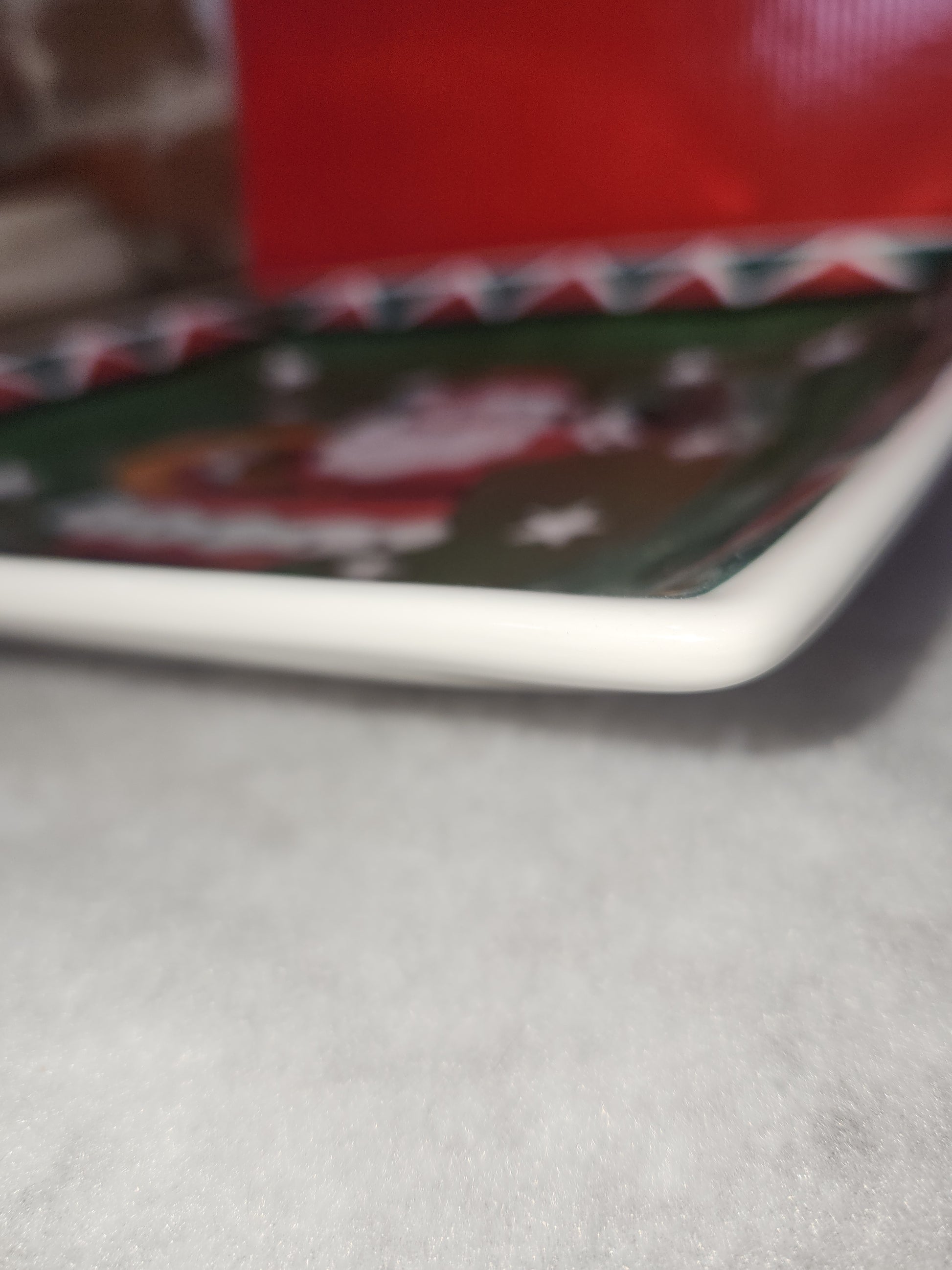 This is a beautiful plate or platter. It stands 1 1/2" tall and 10 1/4 Square. It has its original box, with syrofoam at the bottom, but missing at the top. Please see photos as they are part of the description.
