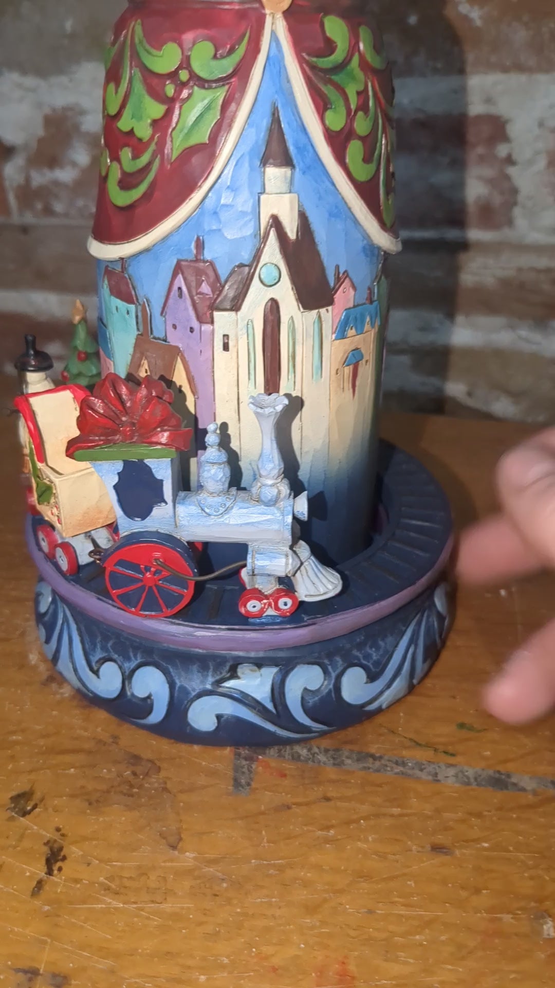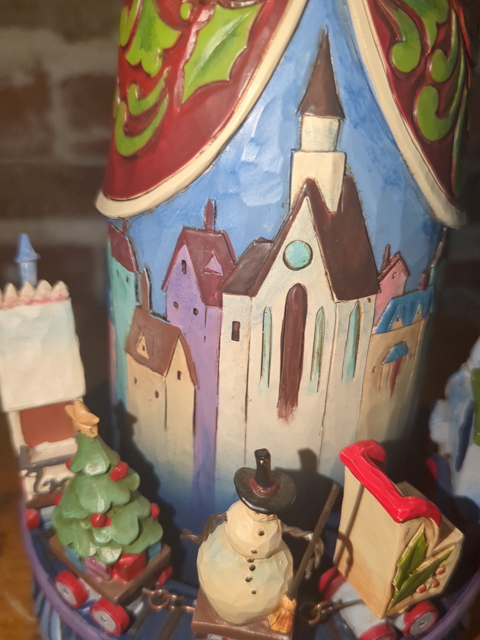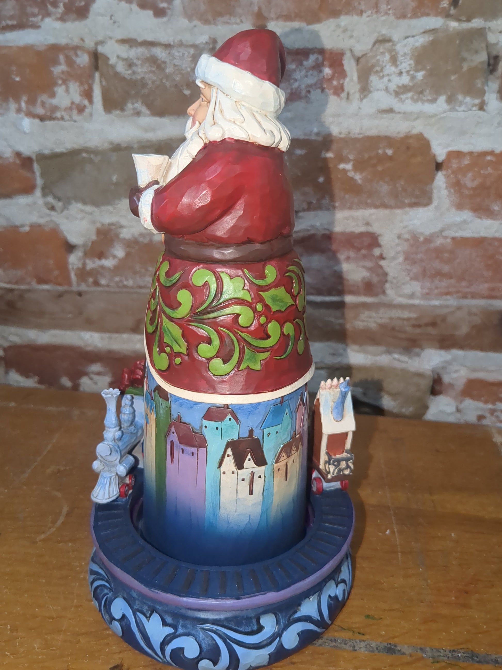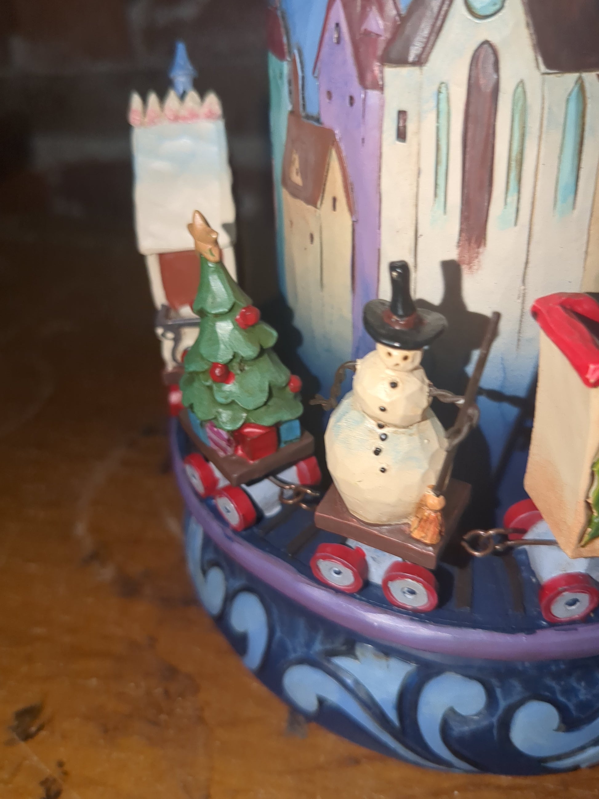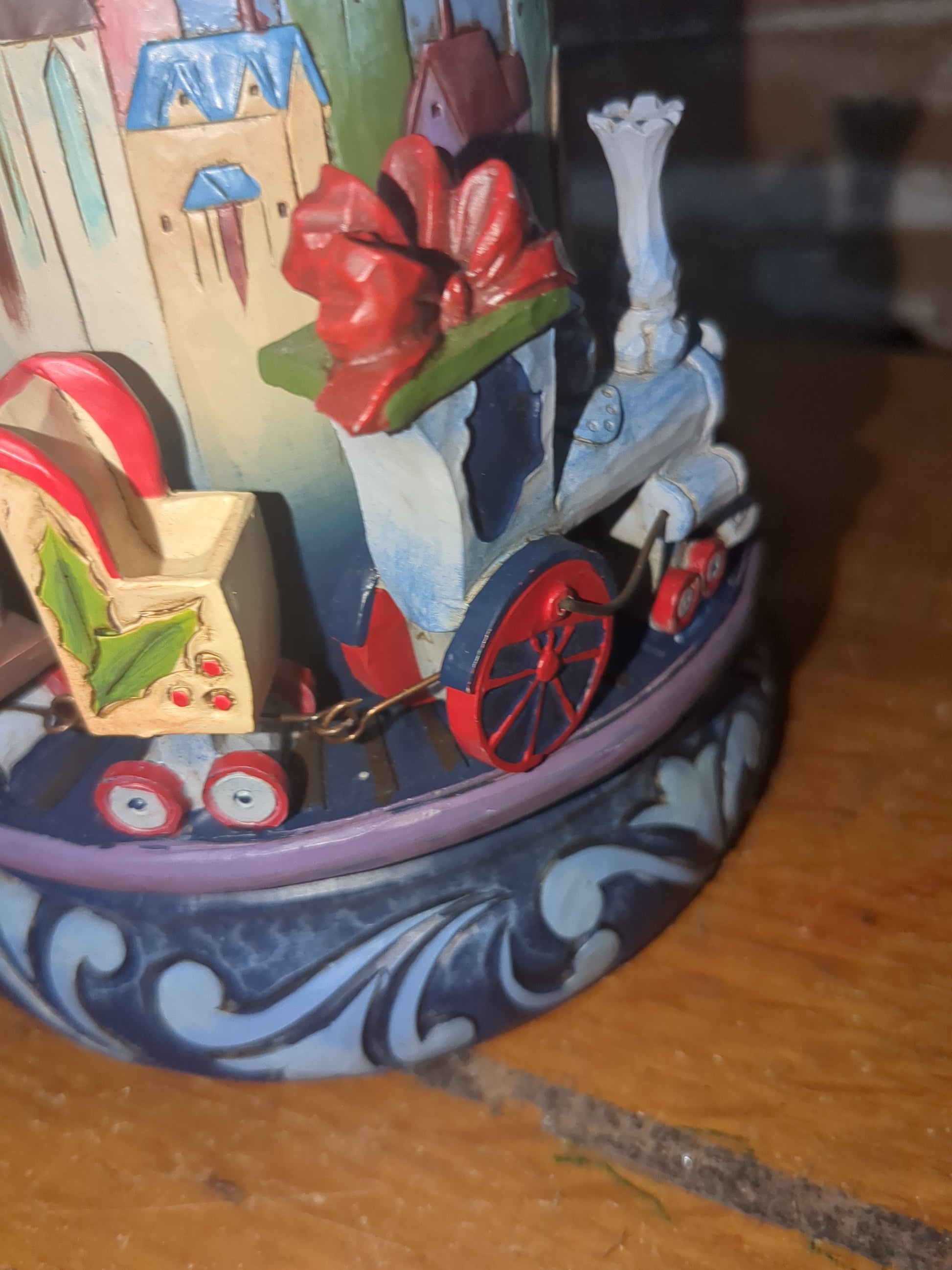 This item by Jim Shore is a Santa figure with a train that circles around the base. Opened box and removed from packing for inspection. It is pre-owned but is like new. Box is in good condition also. Please see photos as they are part of the description