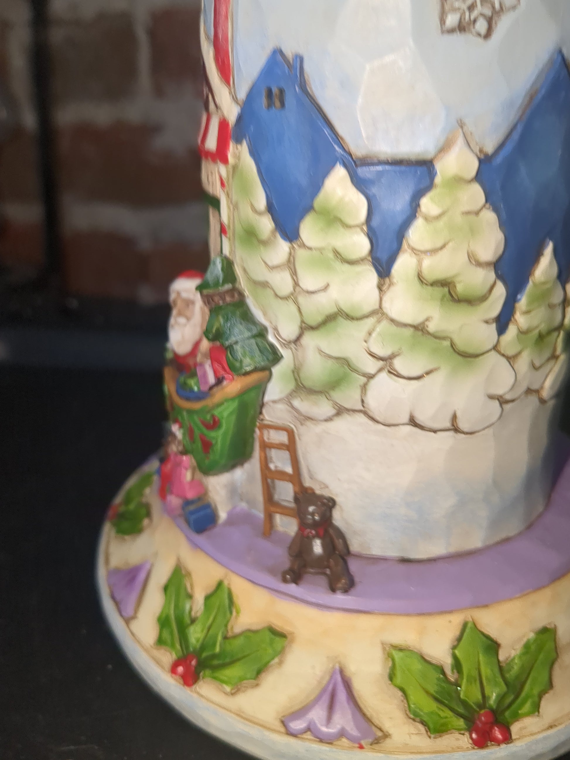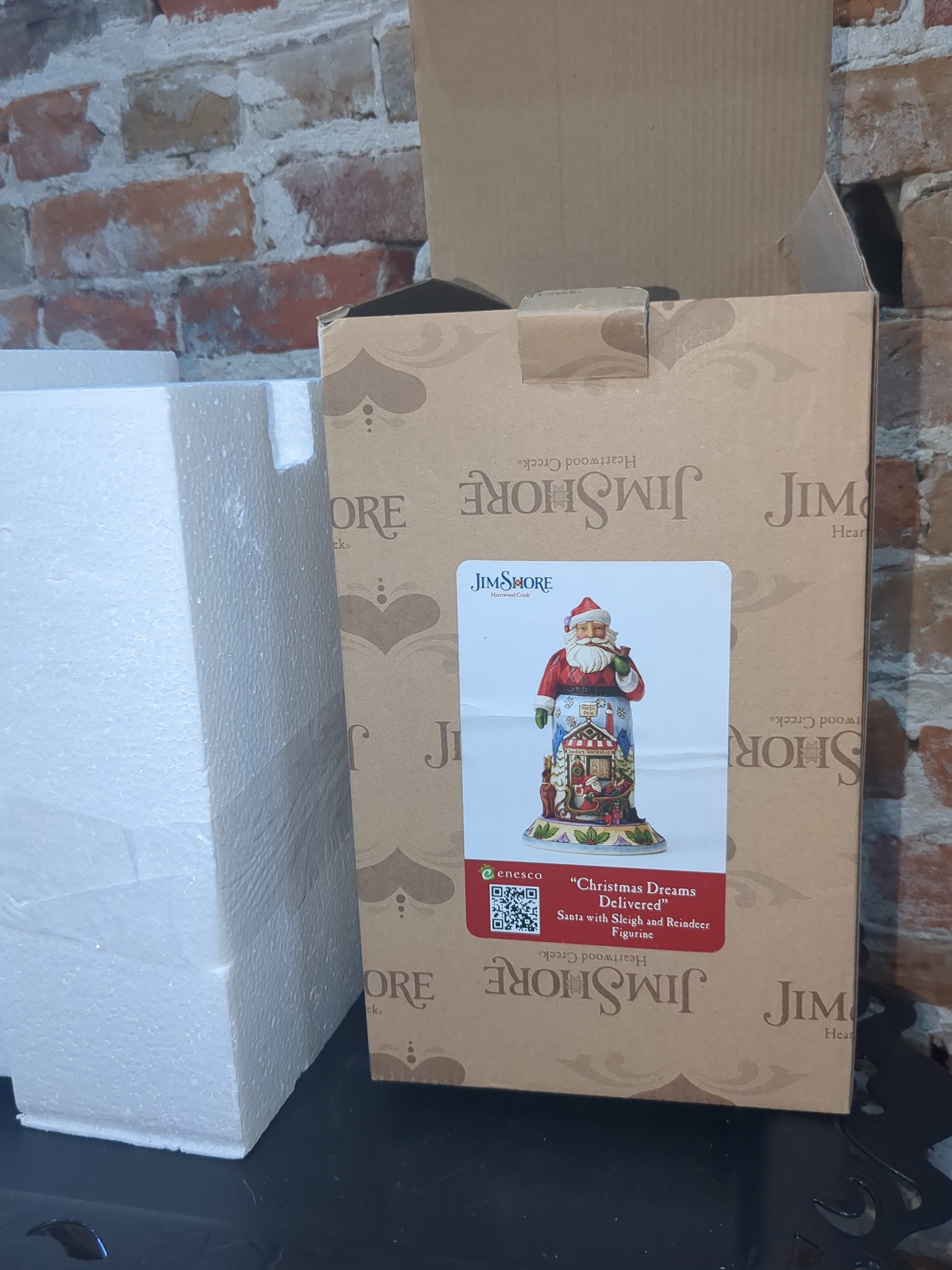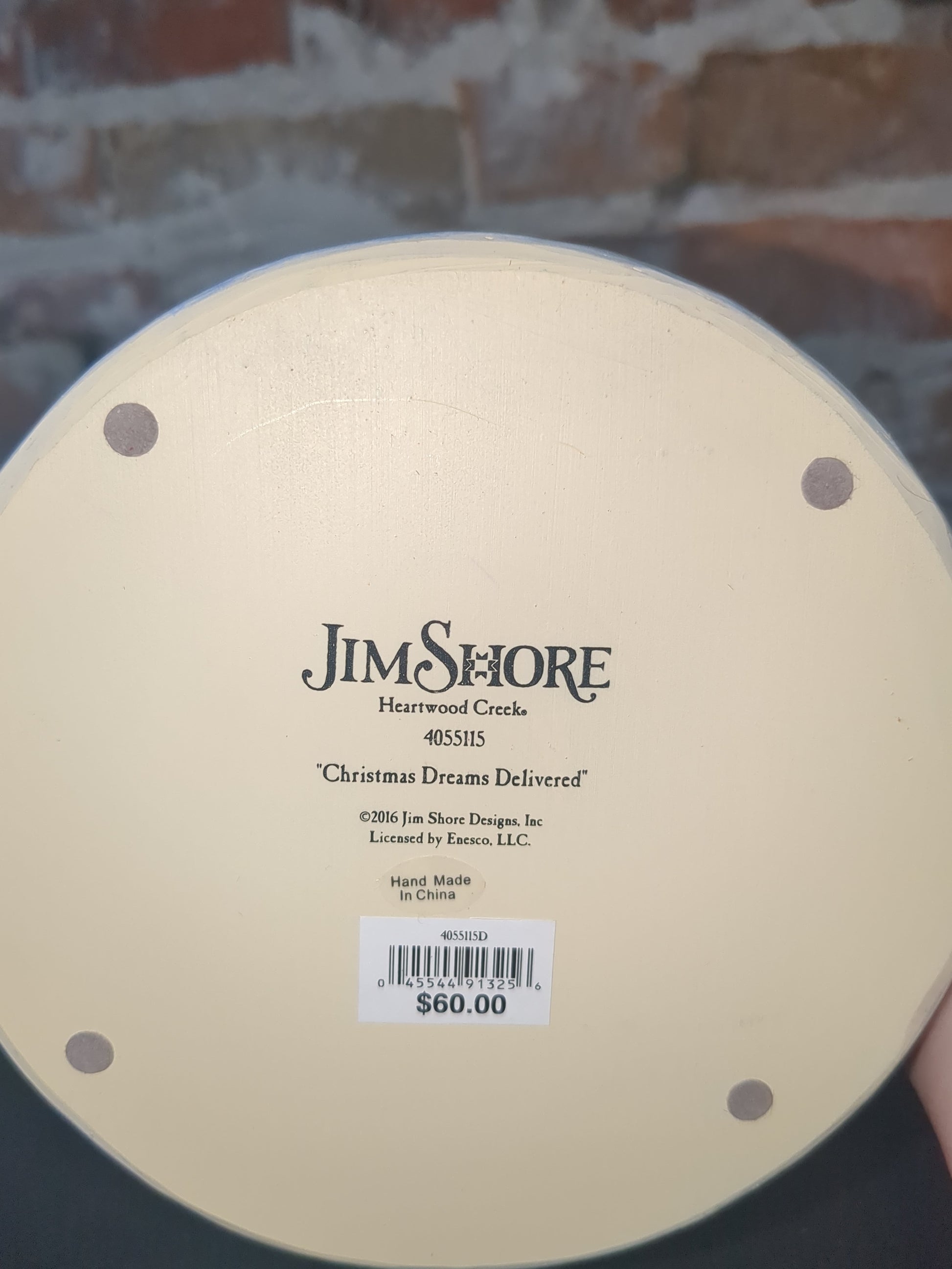 This is Jim Shore piece Christmas Dreams Delivered #4055115. It is in really really good condition I see nothing wrong with it no chips no cracks no scratches it comes with its original box which is in very good condition as well. Please see the photos as they are part of the description