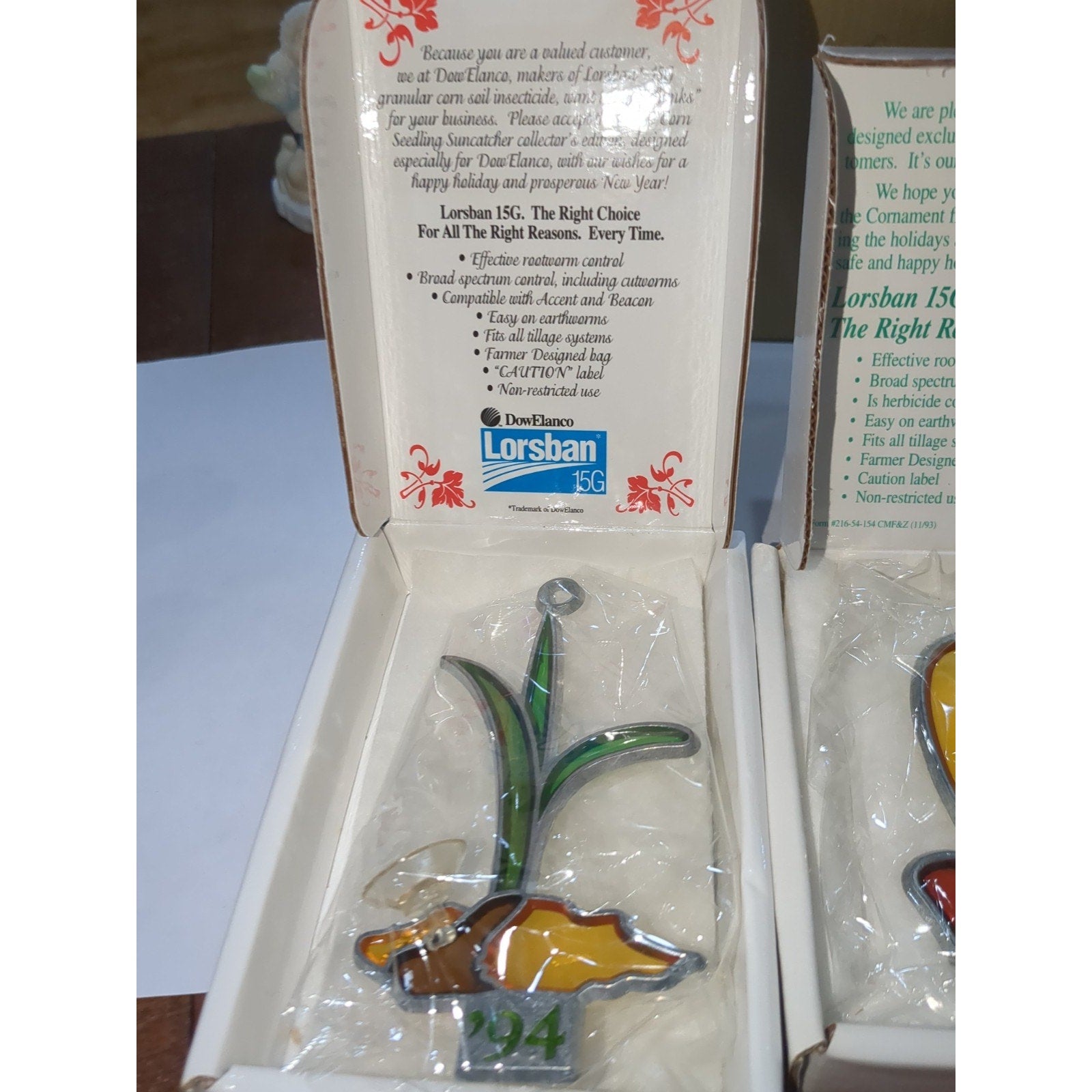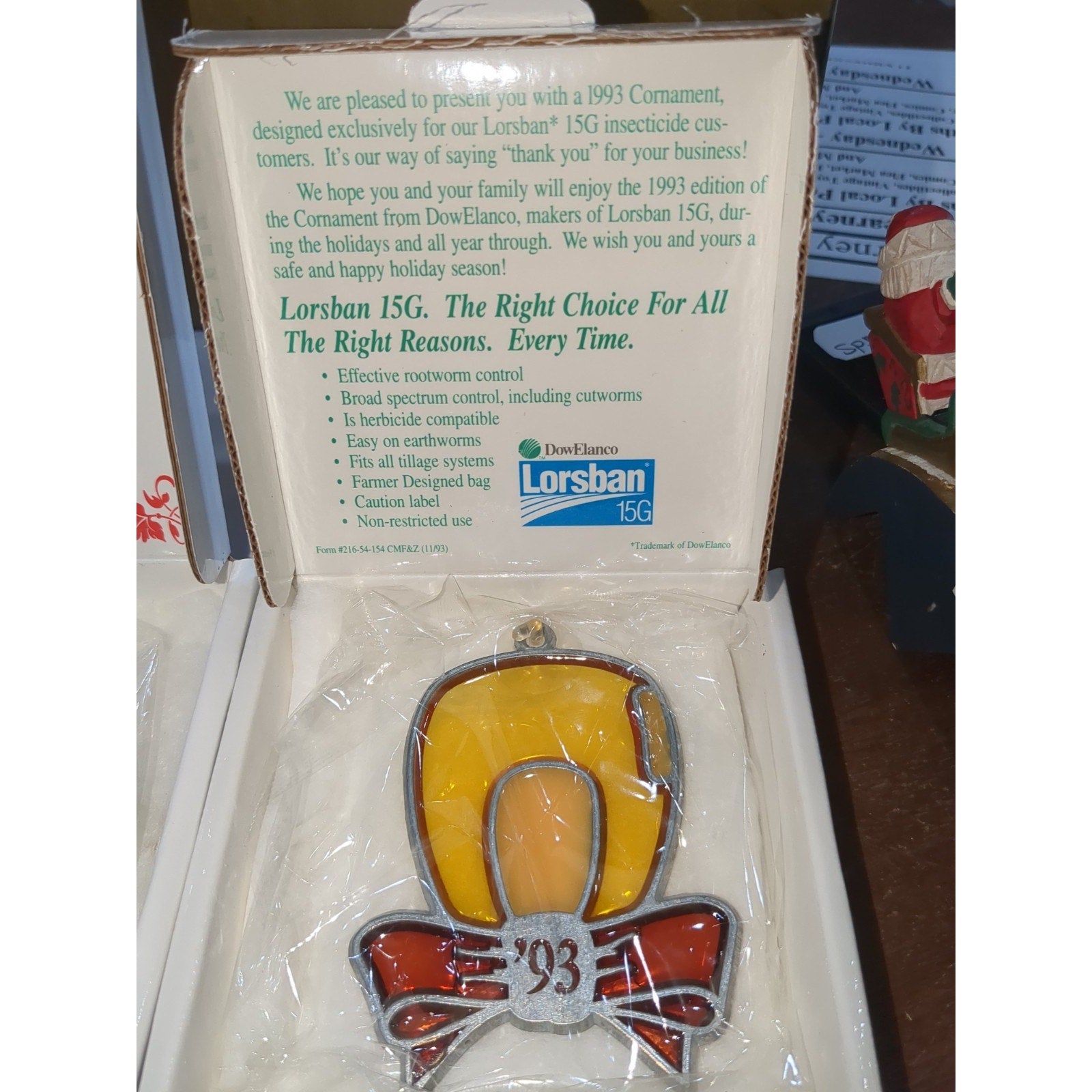 Lorsban 15G stained Glass Look Ornaments, Corn Kernel And Stalk 1990's. Lorsban