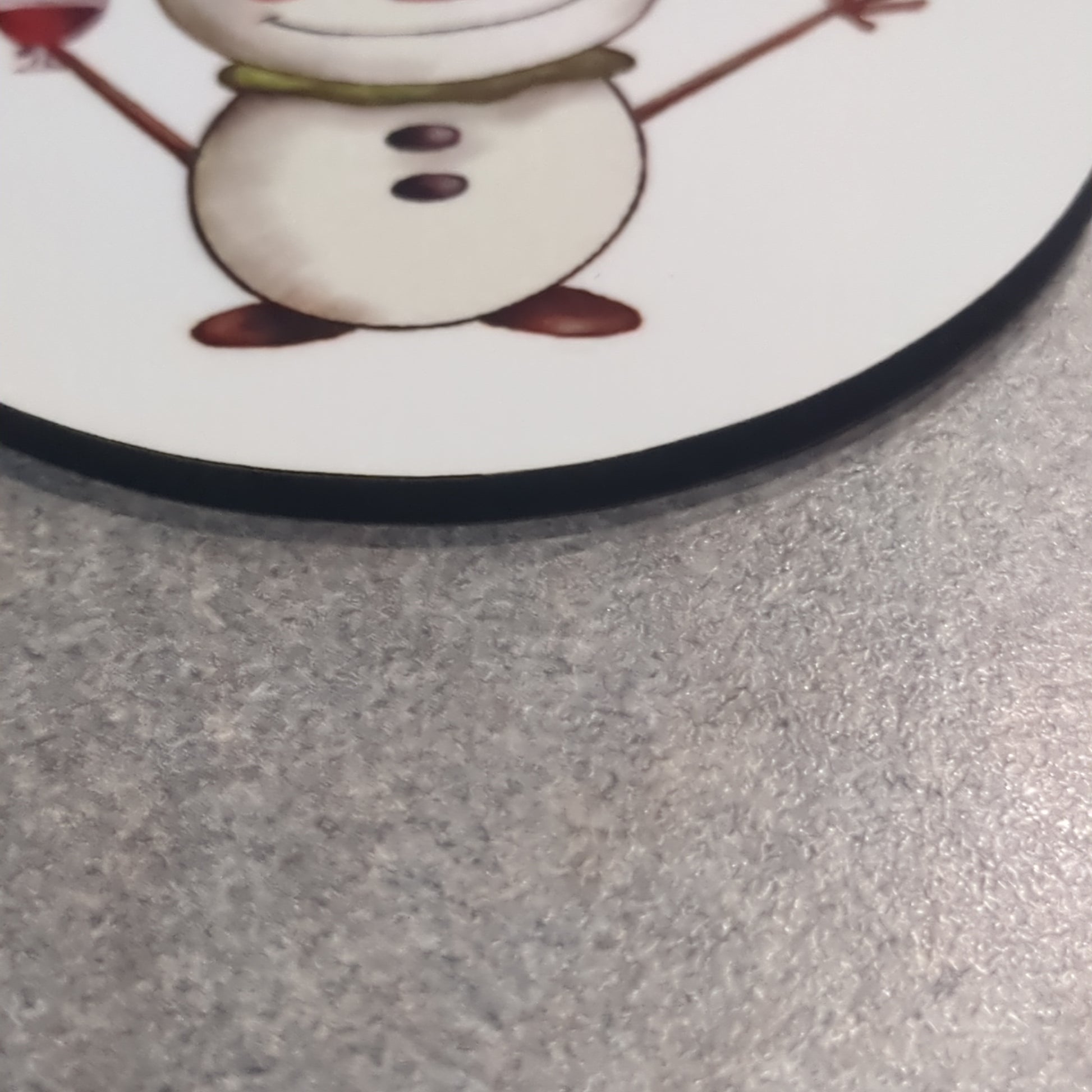 Mdf ornament is two and three quarters in diameter. Occasionally some of the print will transfer to the back side where there is no design