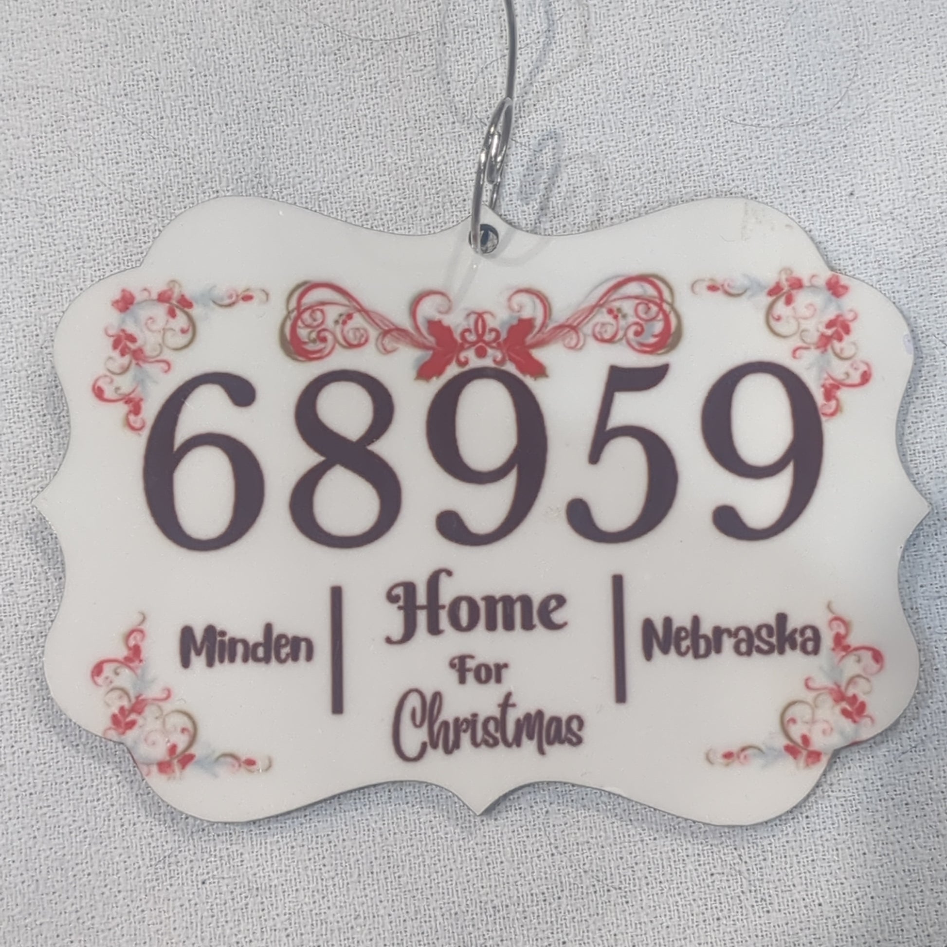 This is a wooden ornament with Minden zip code on it. We can personalize for you with your zipcode for $5 per ornament. Just send us a message. Minden Nebraska. Nebraska Christmas City.