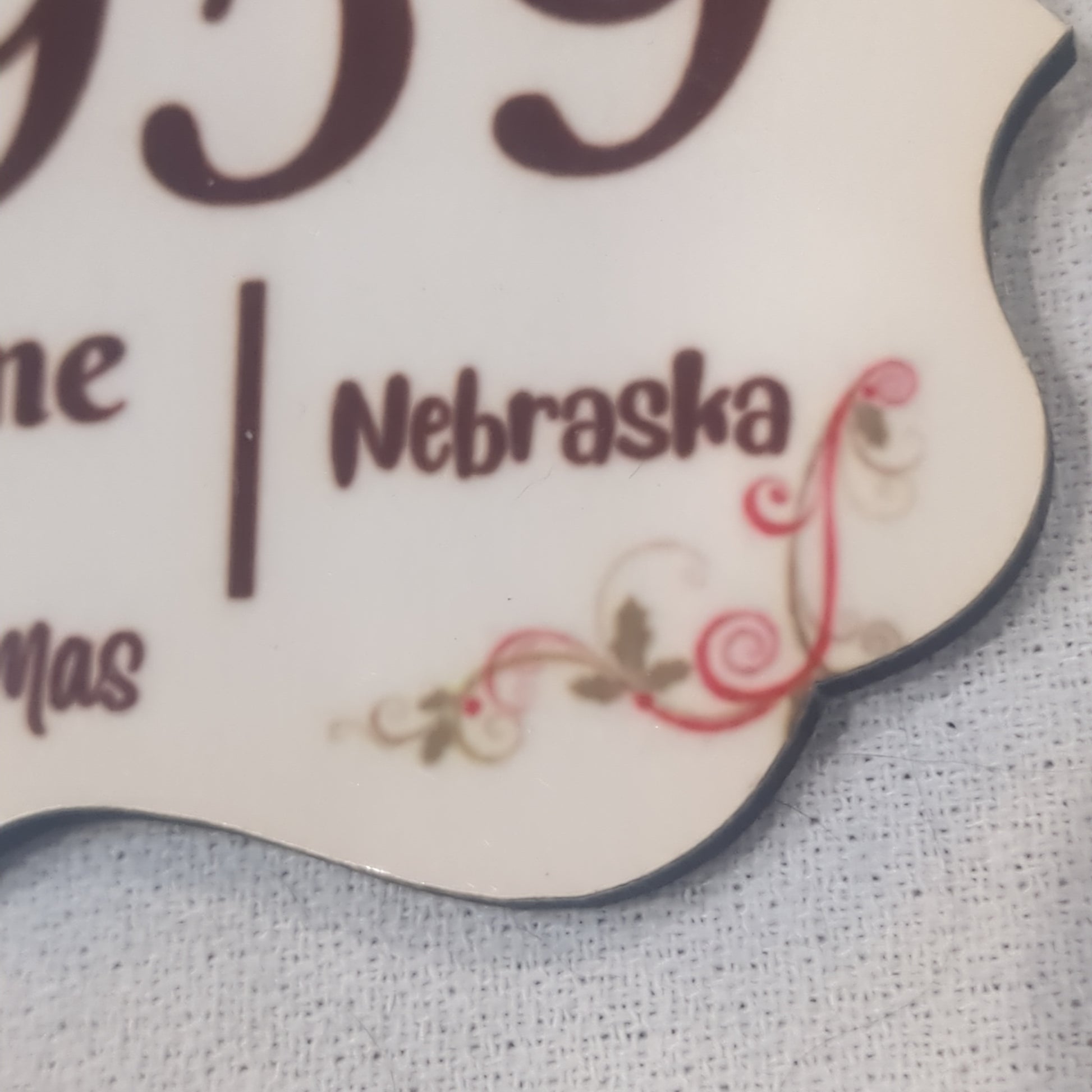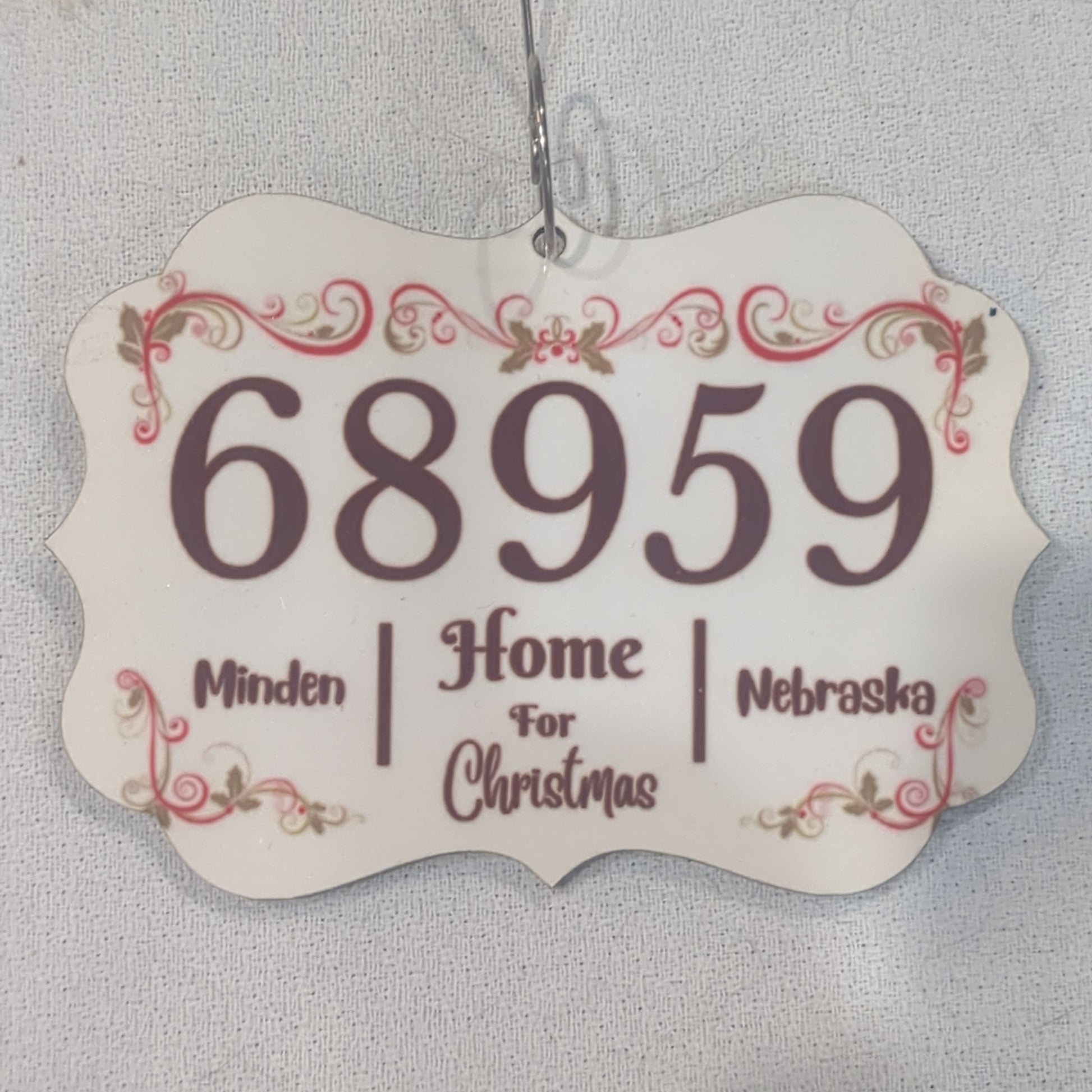 This is a wooden ornament with Minden zip code on it. We can personalize for you with your zipcode for $5 per ornament. Just send us a message. Minden Nebraska. Nebraska Christmas City.