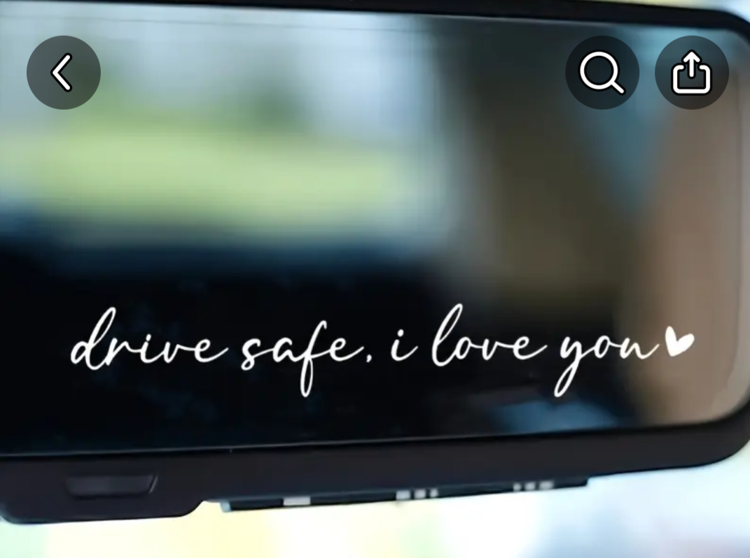 This mirror decal is small enough to put on your rear view mirror without obstructing your vision it's a little reminder to drive safe. It can also be put on a mirror in your house it can be put on your side mirrors when your car anywhere you want someone to look at it see it and know that you put it there because you care
