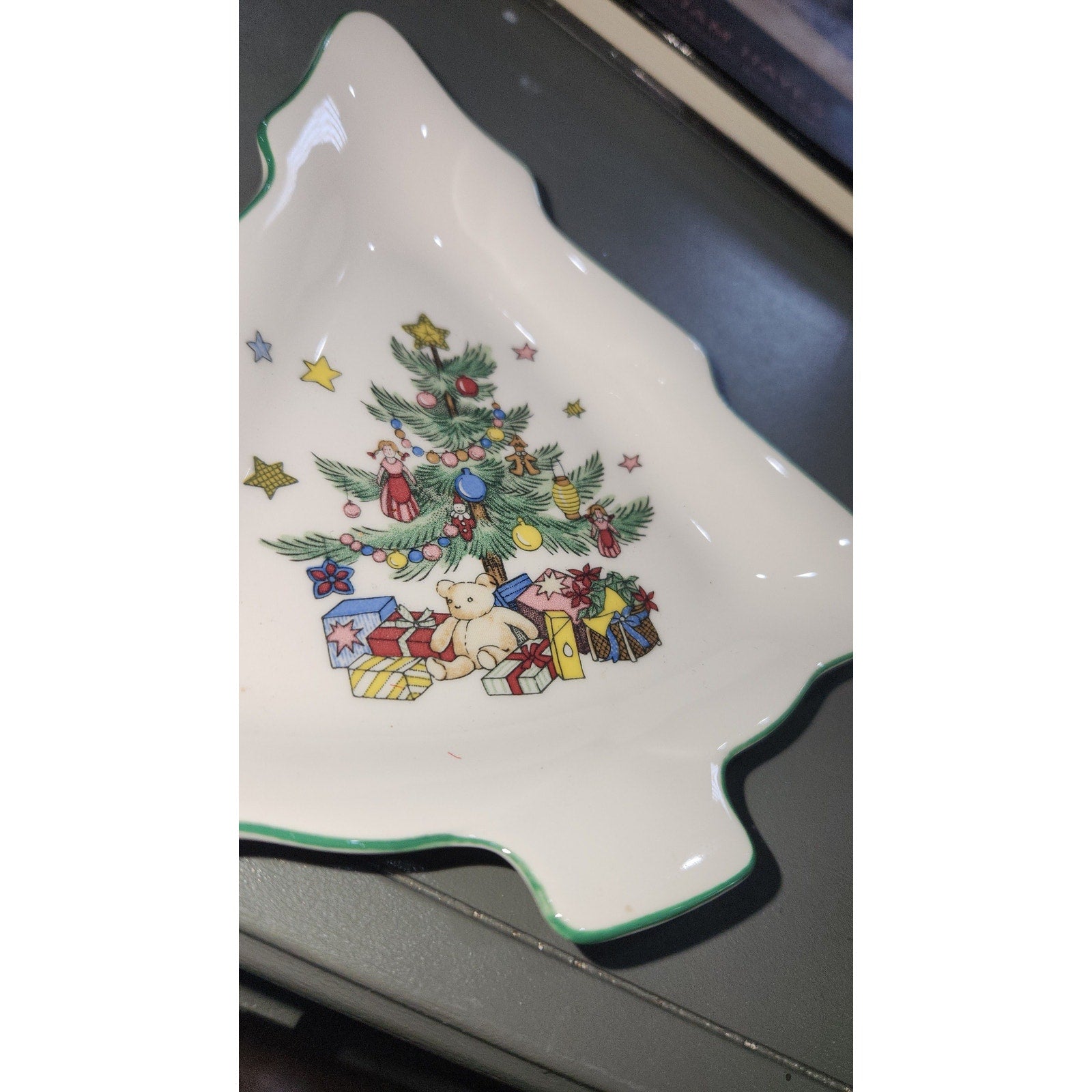 Nikko Japan Christmas 6-1/2" Tree Shaped Plate vintage Candy Trinket Dish