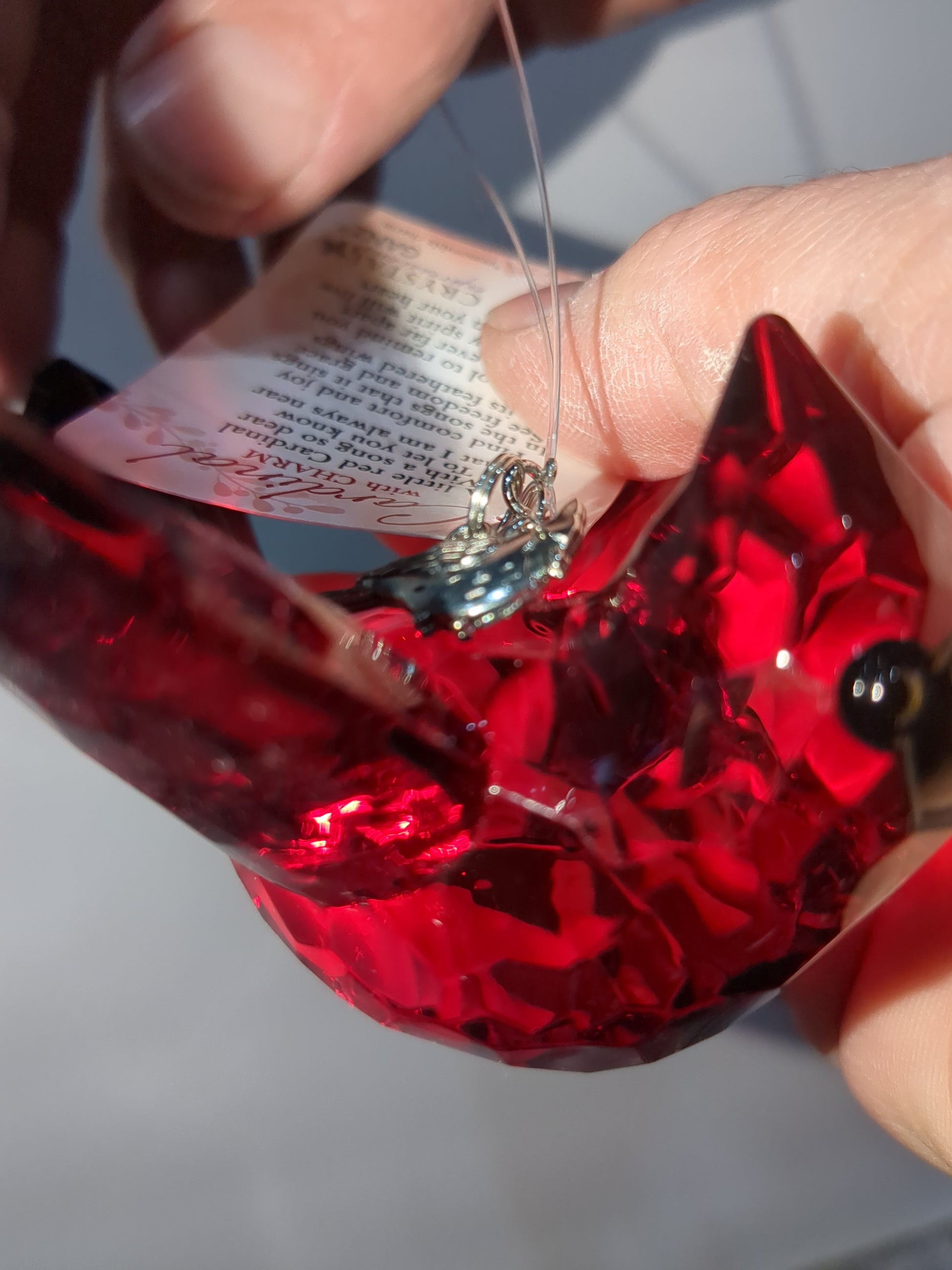 O77 Crystal Expressions Cardinal ornament with a charm.