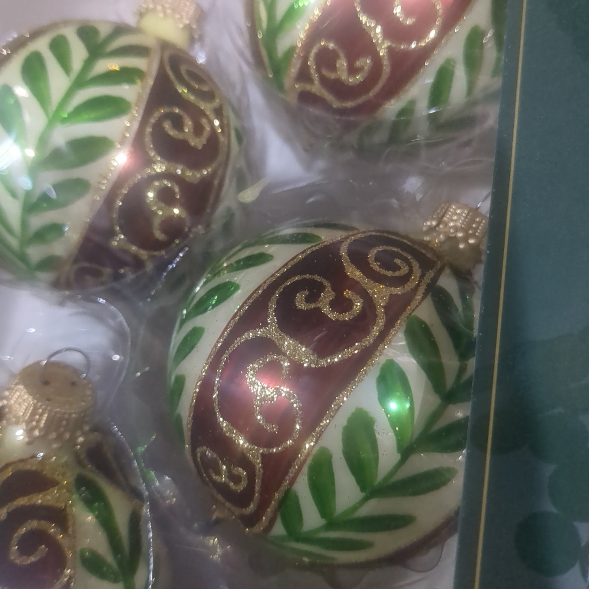 Christmas By Krebs Chablis Gold Shapes Leaves Scrolls Gold Decorated Boxed Glass Designer Seamless Glass Indoor Christmas & Party Decoration