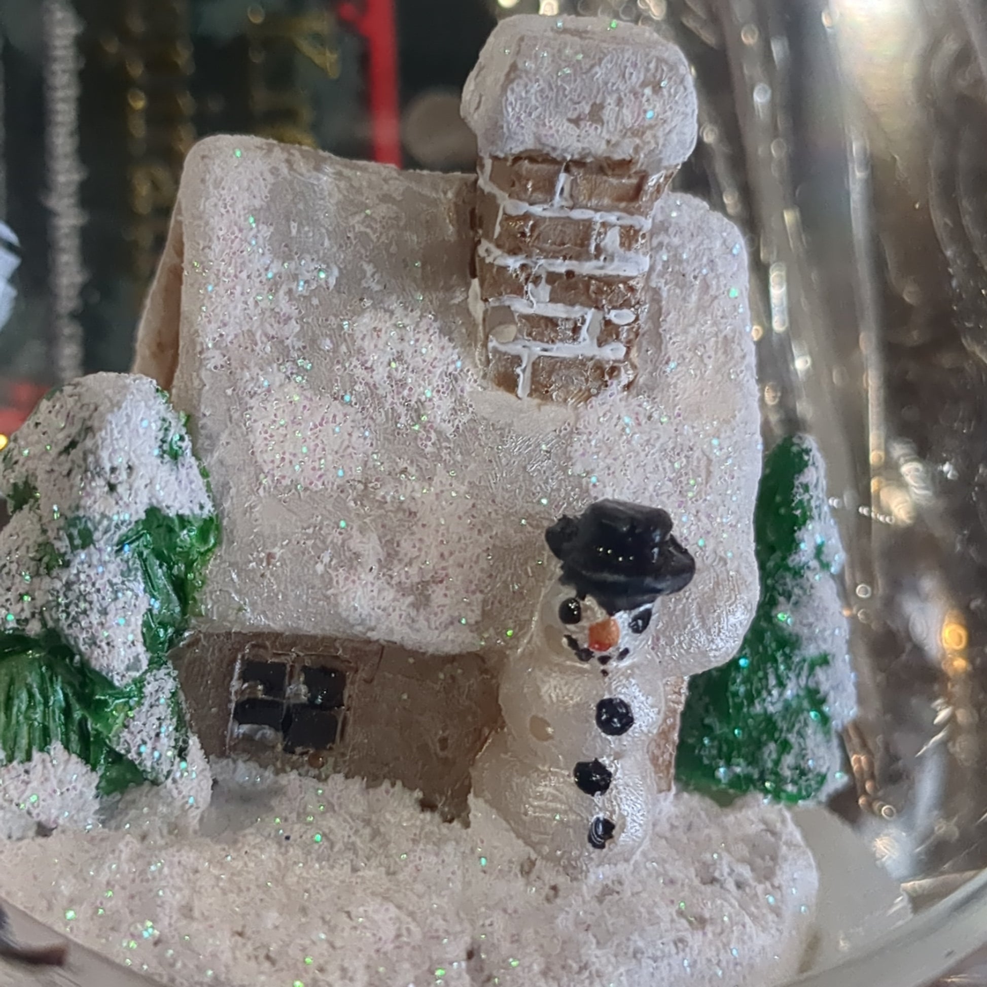 Glass winter house terrarium ornament. Bulk packed hang tag. 6 Pieces per case.