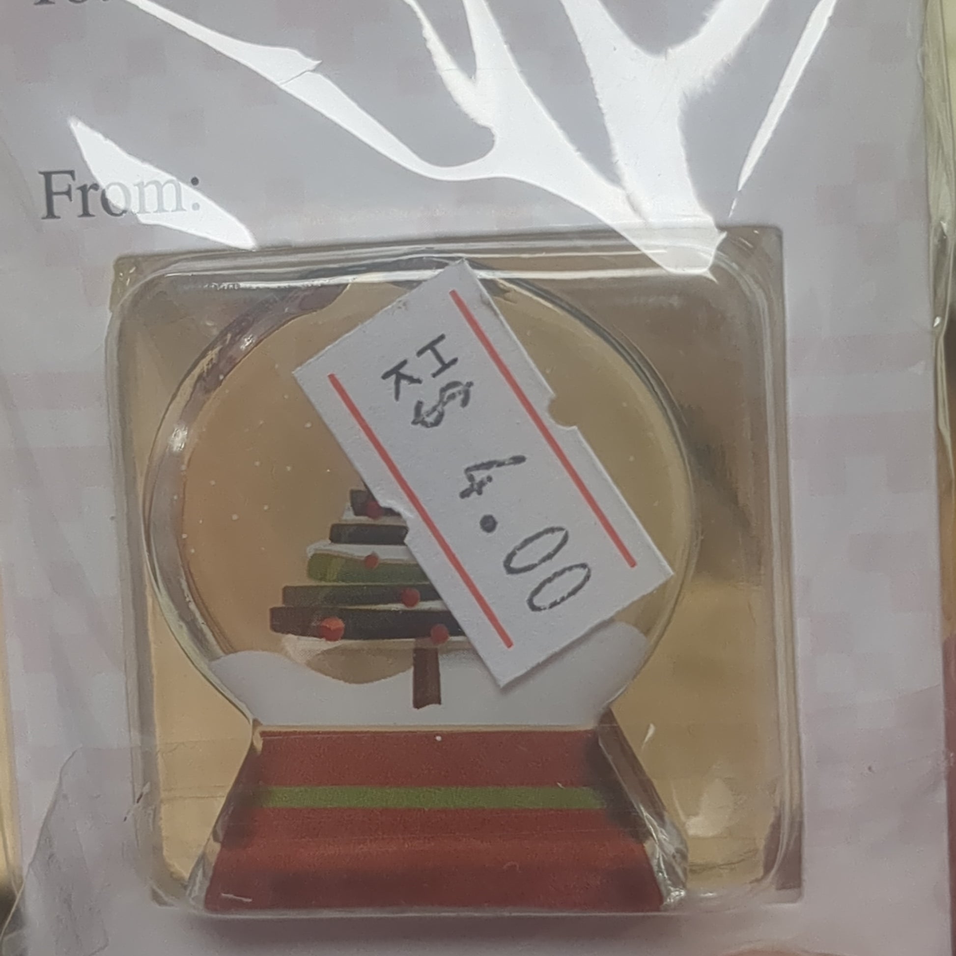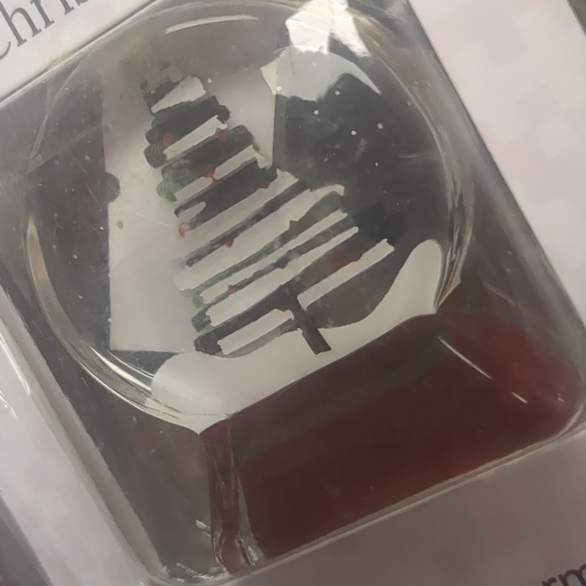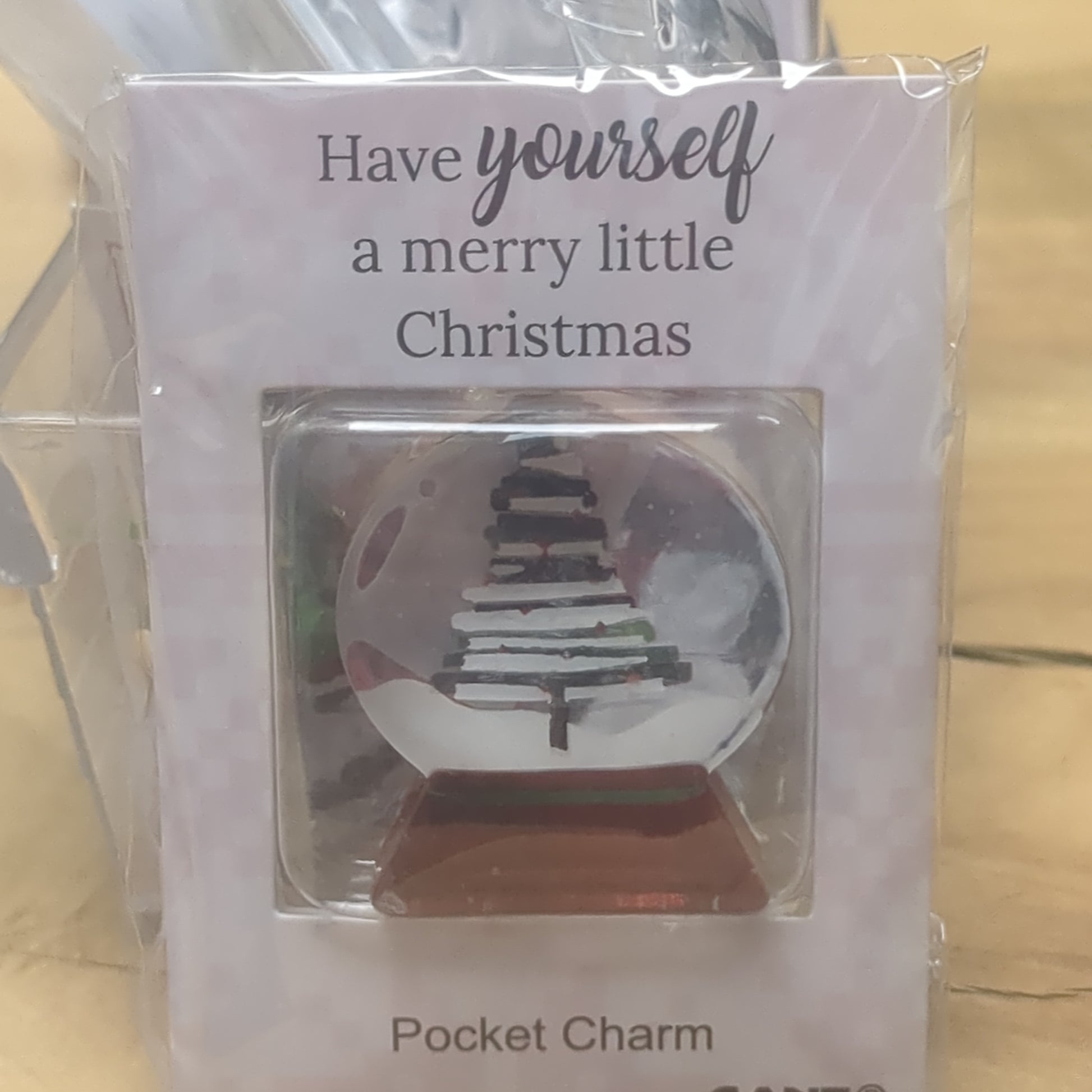 Pocket charm snow globe appearance with tree inside. Have yourself a Merry Little Christmas