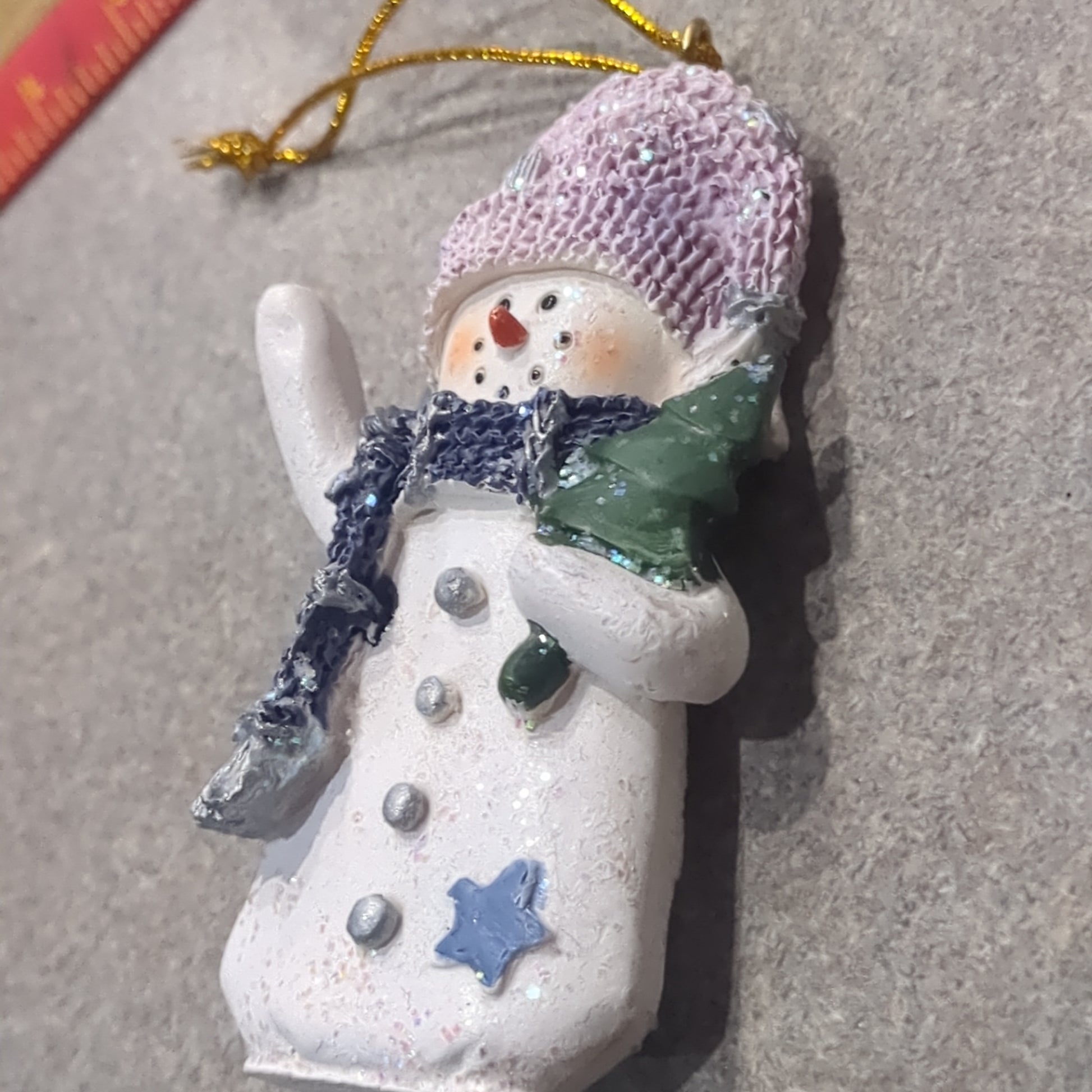 Op3 Polycrylic snowman ornament with a tree lilac and purple