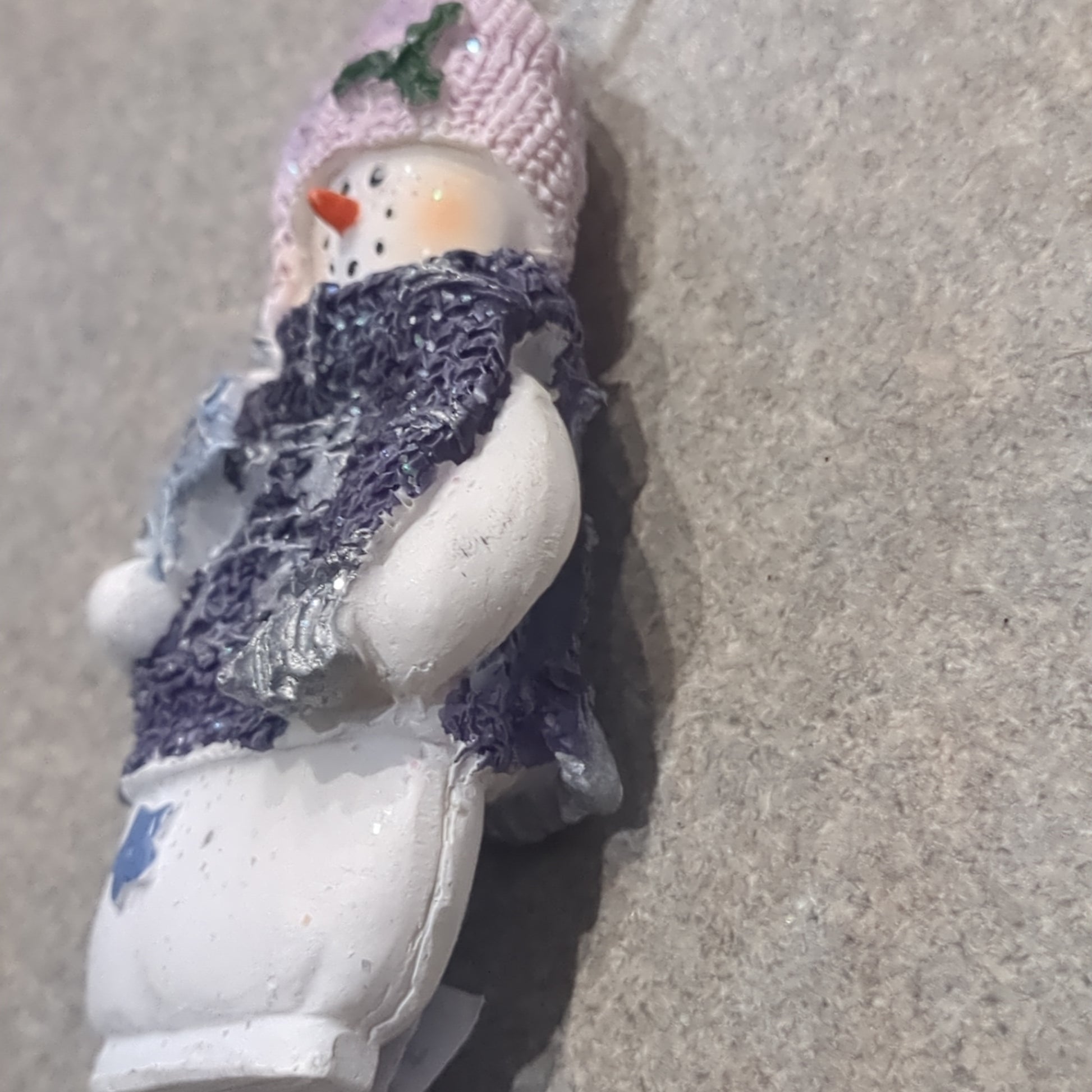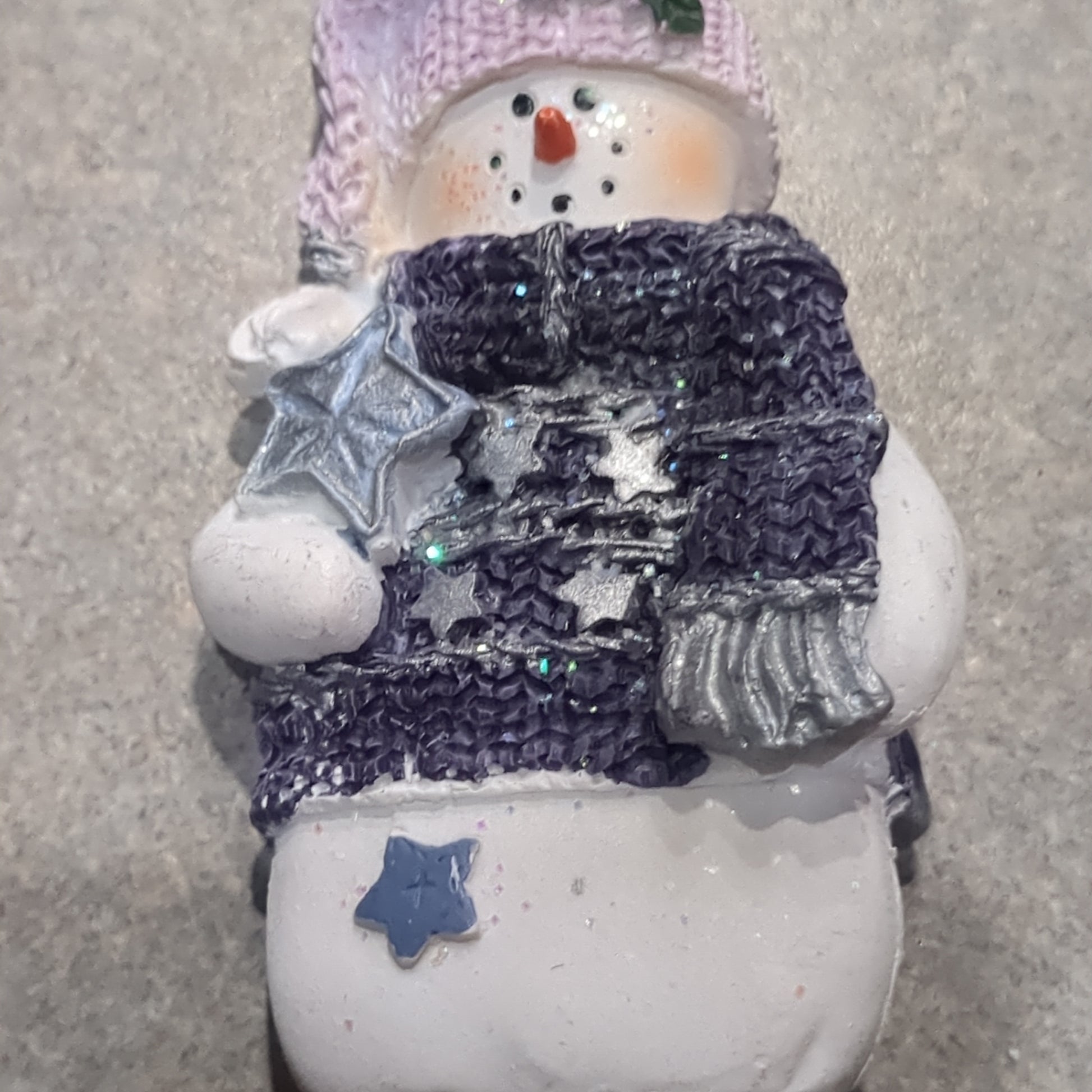 Op1 Polycrylic snowman ornament with a star lilac and purple