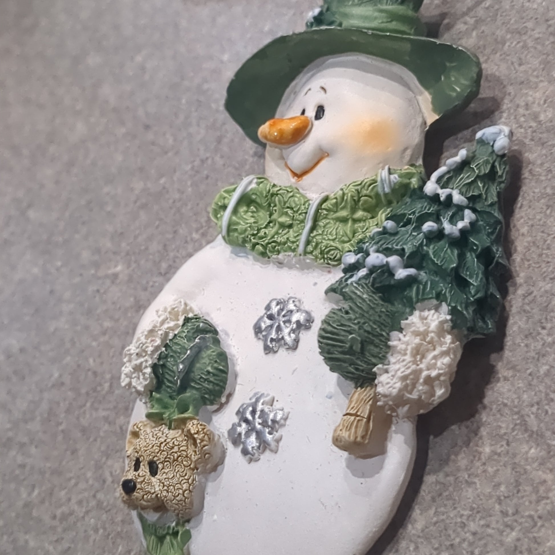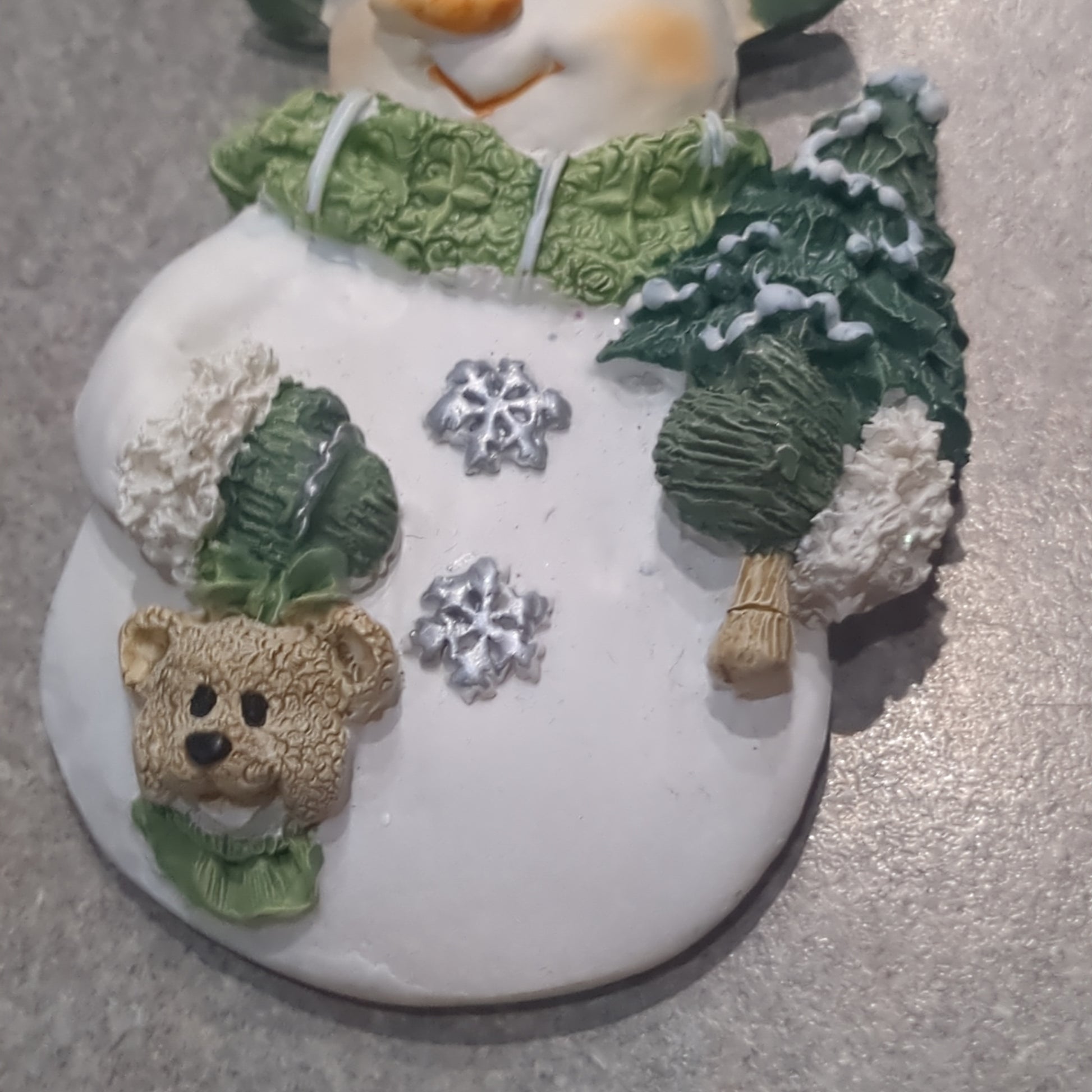 Og3 Polycrylic snowman ornament with tree and teddy bear