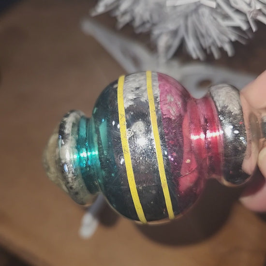 Vintage Premier Glass Christmas Ornament Lantern Silver Pink Teal Yellow vo24