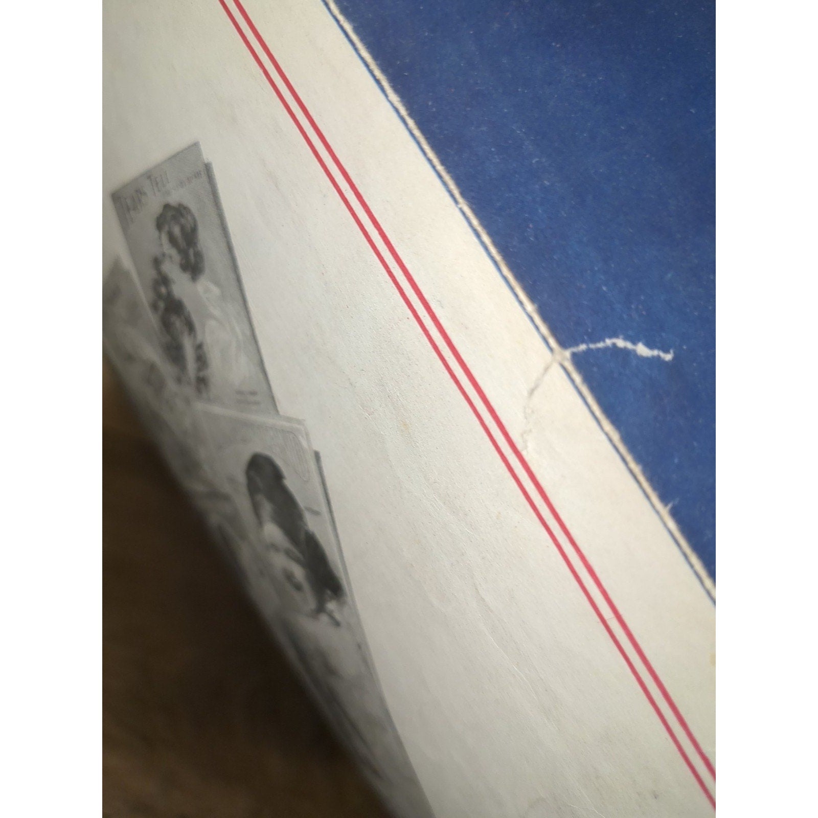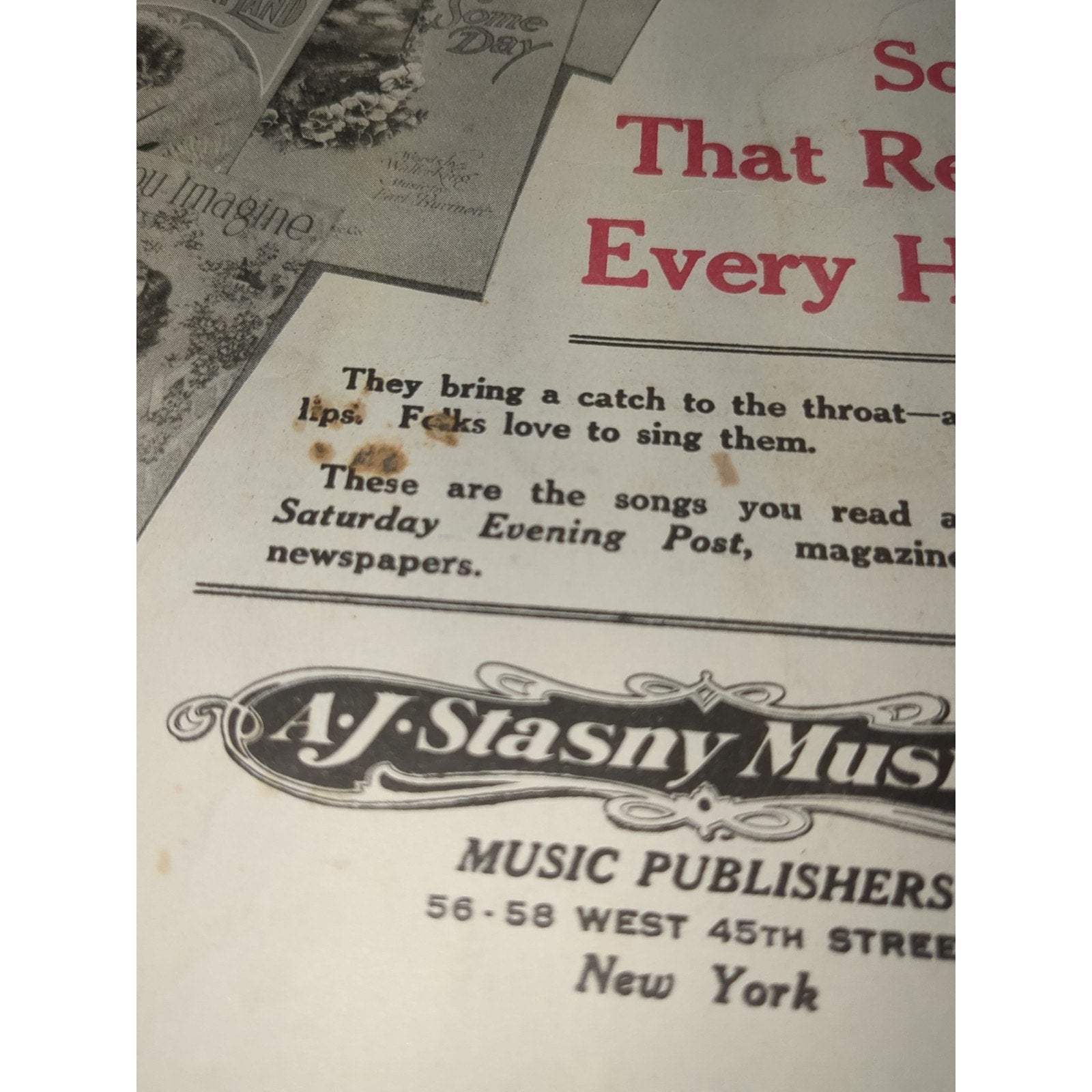 Please see the photos as this is part of the description this is a piece of sheet music that is in pretty good condition for its age it does have a name written across the front there is a rip going across the binding but the binding is intact there is a few stains on the back.